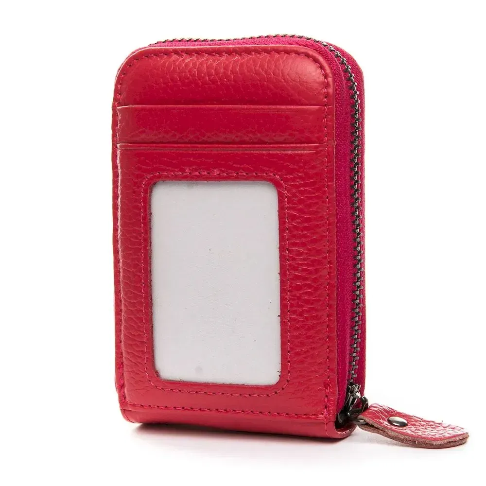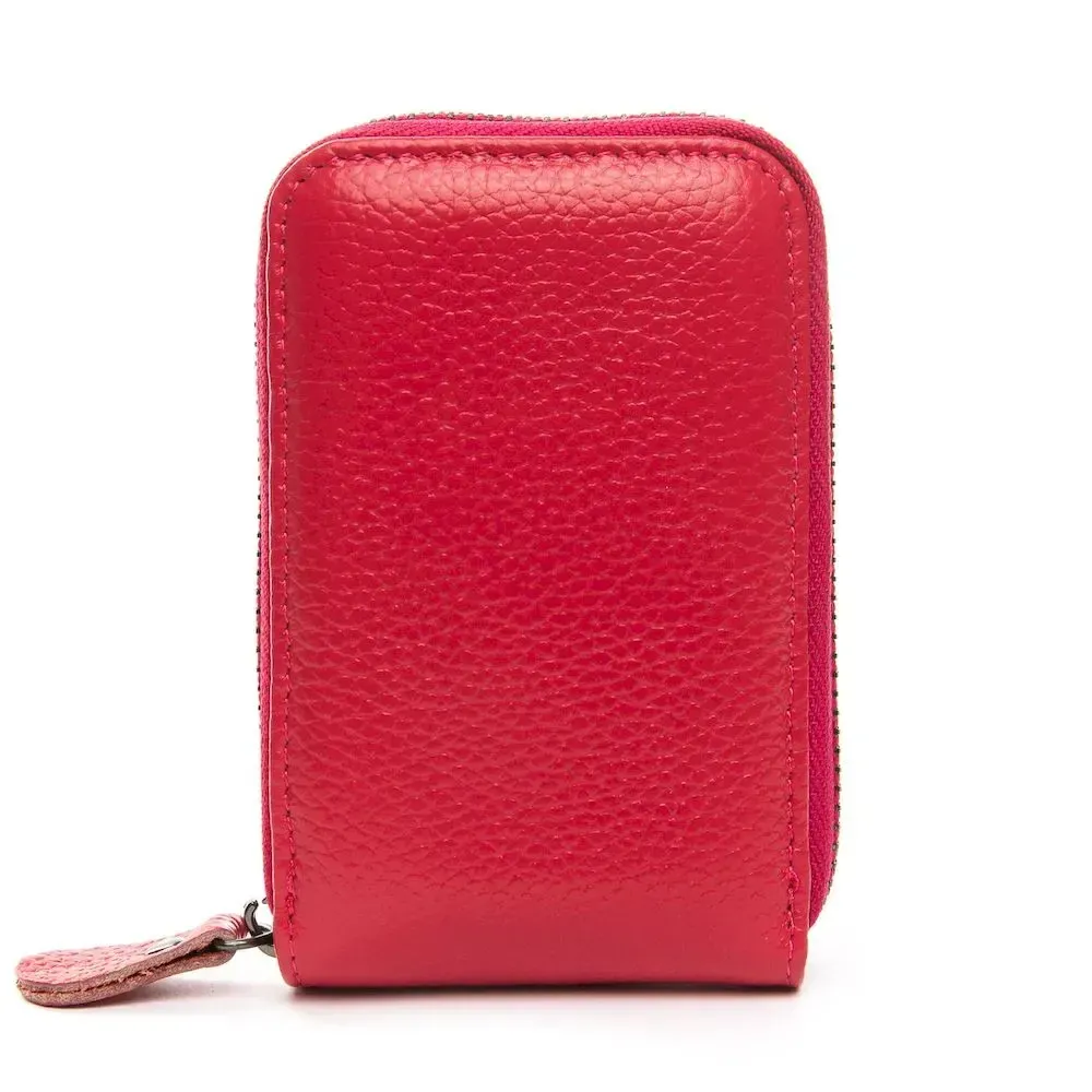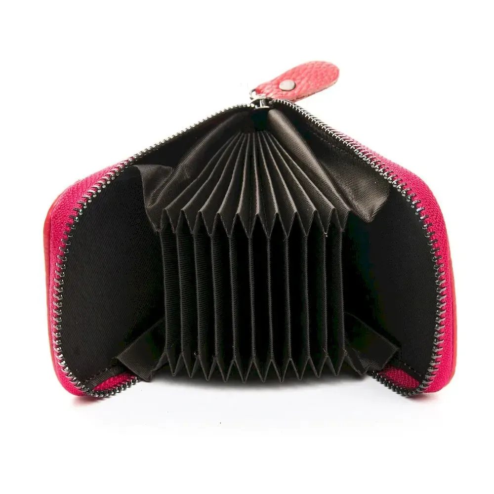 Жіноча візитниця, виготовлена з натуральної шкіри. Закривається на блискавку. Усередині є 12 відділень для візитних карток. Зовні візитниці є дві відкриті кишені, одна з яких виконана прозорою. Розмір (см.) 11,5*7,5*3
