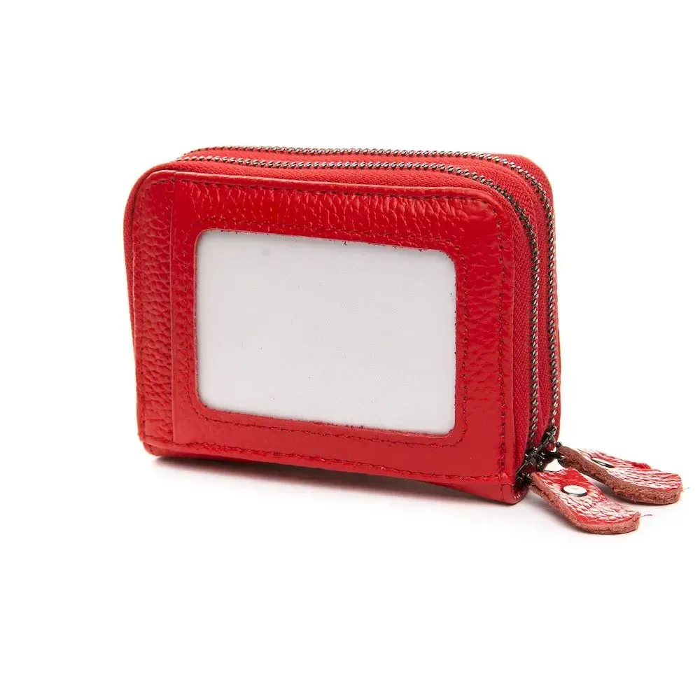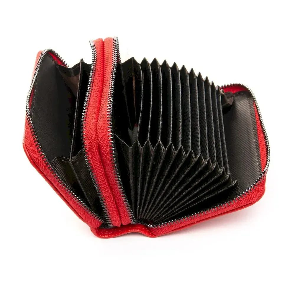 Жіноча візитниця, виготовлена з натуральної шкіри. Два відділення, що закривається на блискавці. Усередині знаходяться 12 відділень для візитних карток і дві великі кишені у другому відділі. Зовні візитниці є прозора відкрита кишеня. Розмір (см.) 10,5*7,5*4