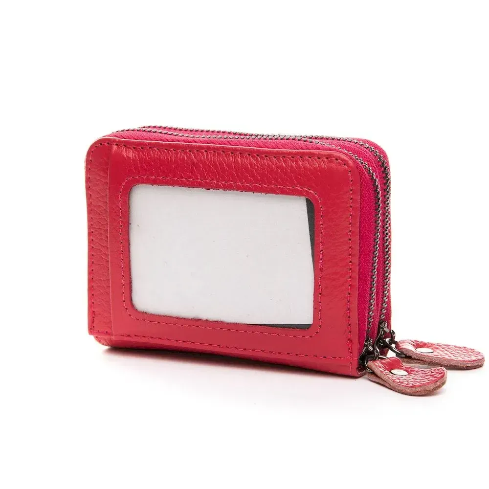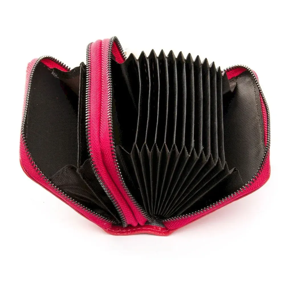 Жіноча візитниця, виготовлена з натуральної шкіри. Два відділення, що закривається на блискавці. Усередині знаходяться 12 відділень для візитних карток і дві великі кишені у другому відділі. Зовні візитниці є прозора відкрита кишеня. Розмір (см.) 10,5*7,5*4