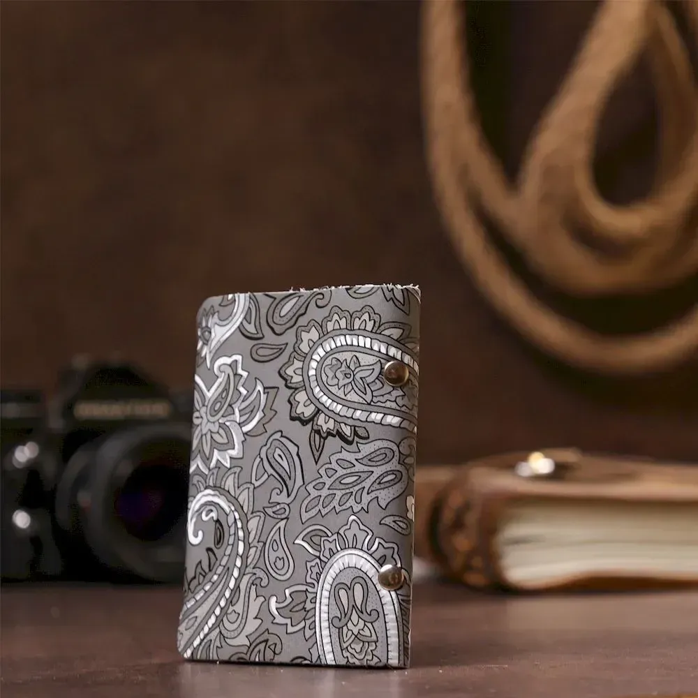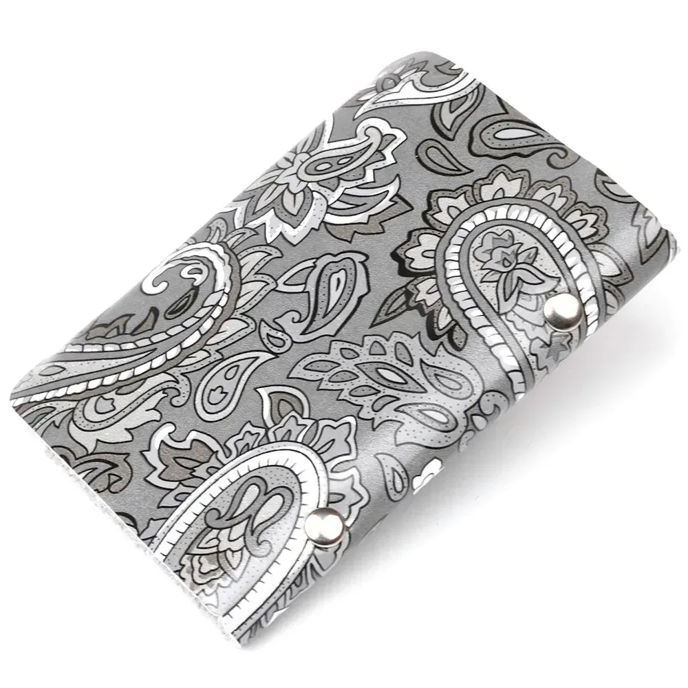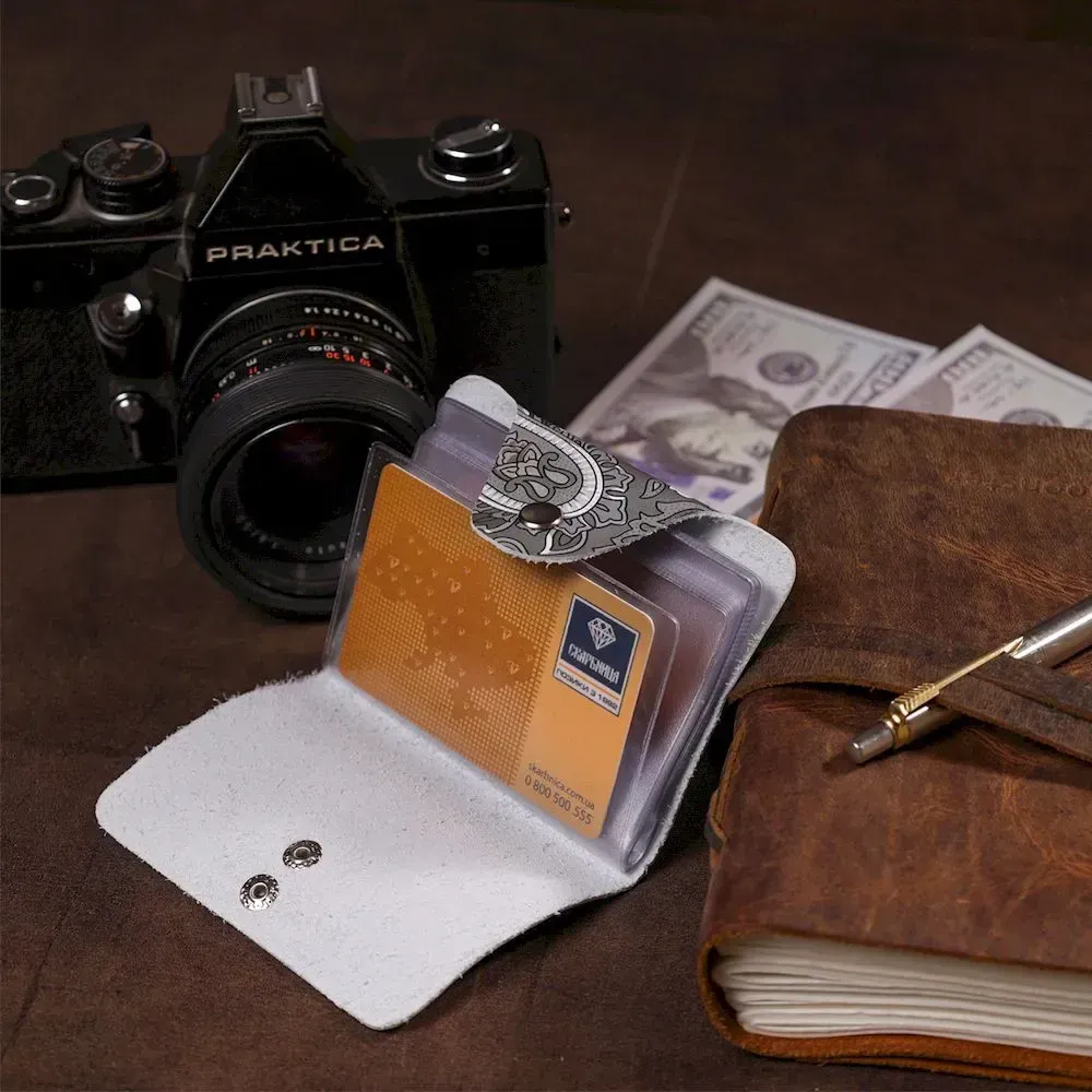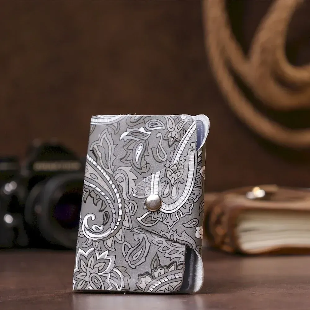 Візитниця шкіряна вертикальна сіра з візерунком Shvigel 19082