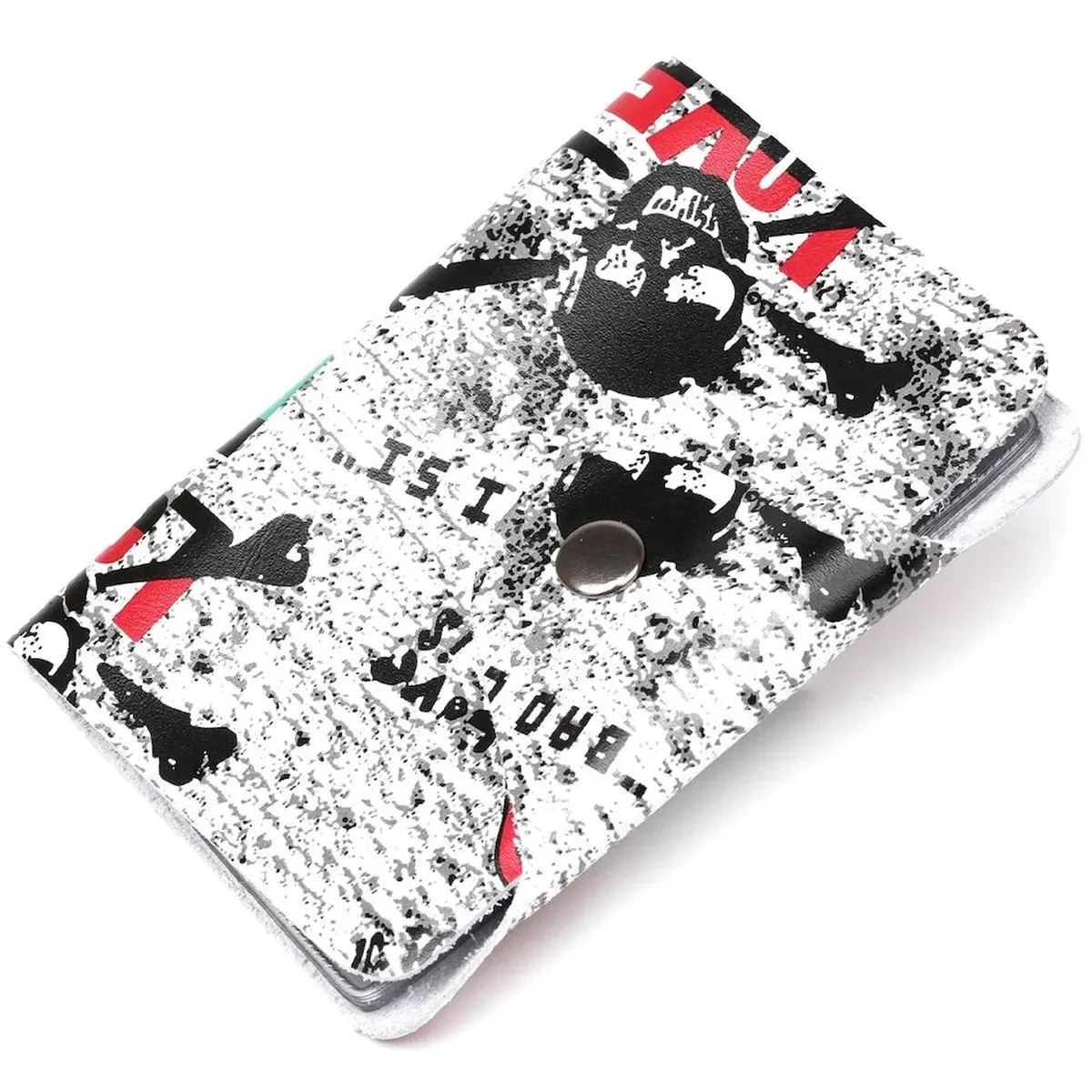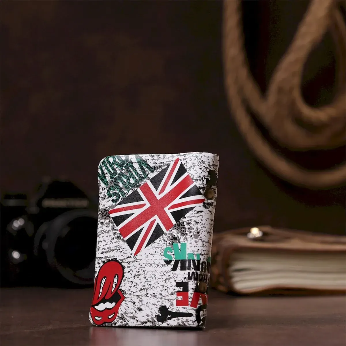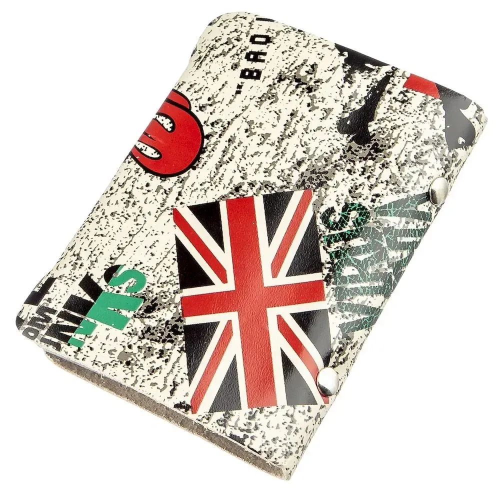 Візитниця з оригінальним принтом Rolling Stones із натуральної шкіри. Аксесуар просто необхідний для тих, хто носить багато карток і хоче їх утримувати в повному порядку. Визиниця закривається на хлястик з кнопкою і стане потрібним аксесуаром для будь-якої людини.