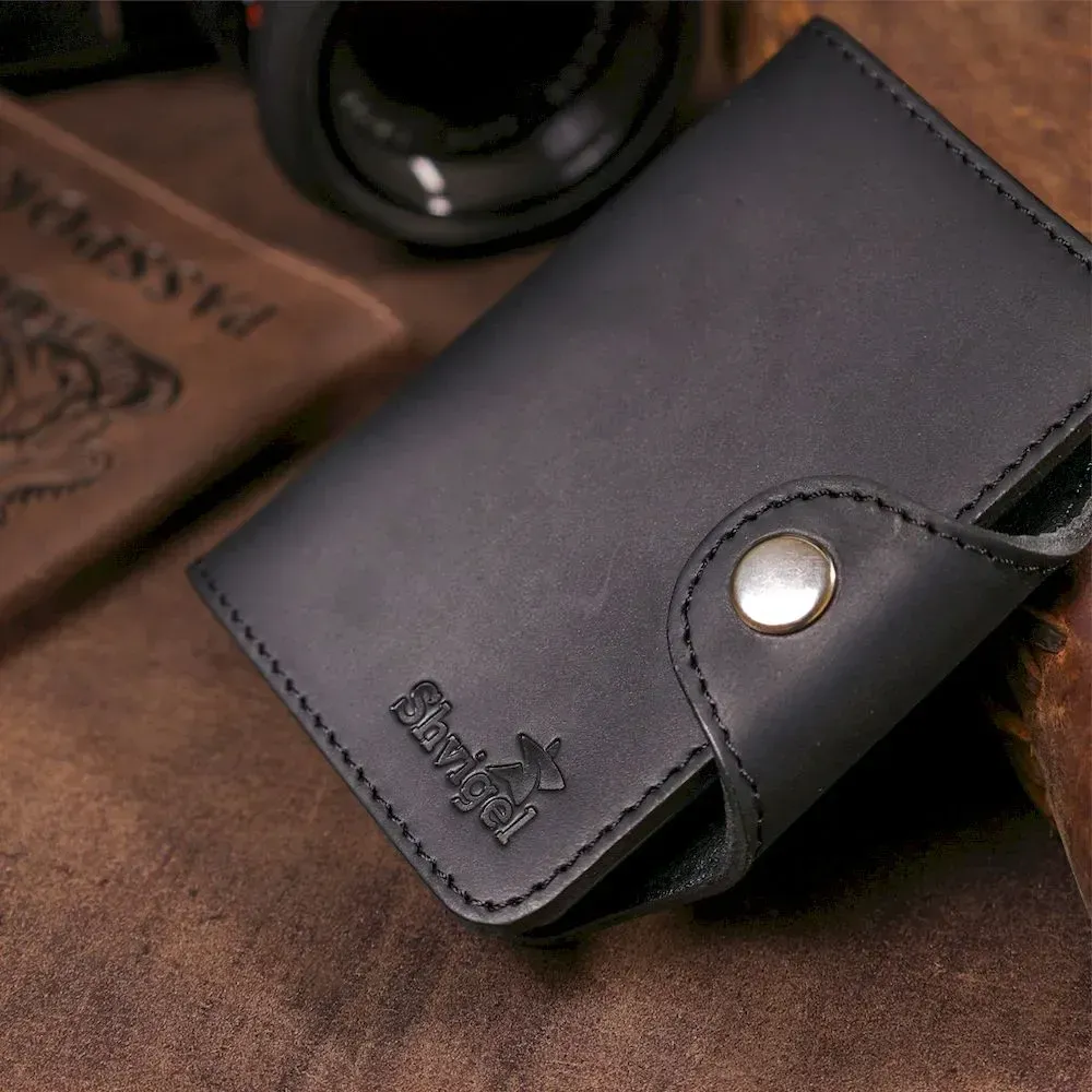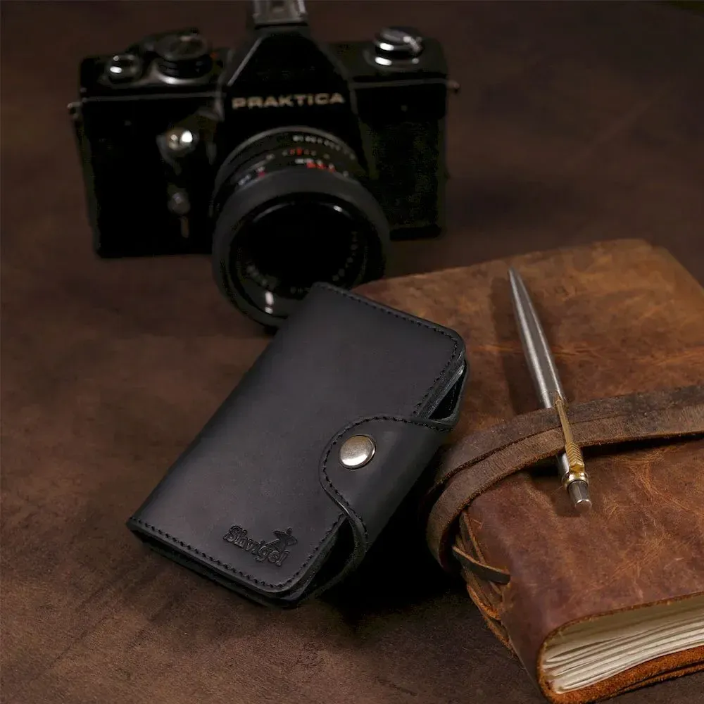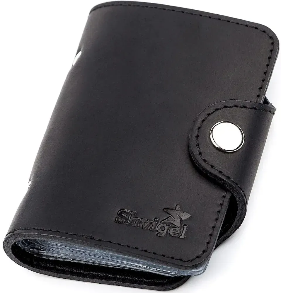 Візитниця вертикальна Shvigel 13909 шкіряна Чорна