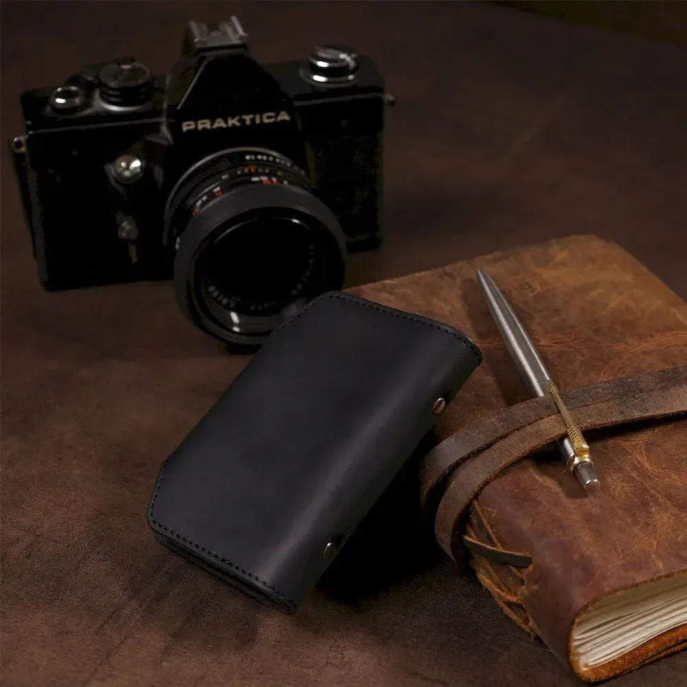 Добротна візитниця з натуральної вінтажної шкіри особливістю, якою є потертості та неоднорідність забарвлення. Згодом шкіра затирається і шліфується, тому деякі сліди зникнуть самі собою. Аксесуар прошитий міцною чорною ниткою, що чудово вписується в дизайн та продовжує термін служби виробу.