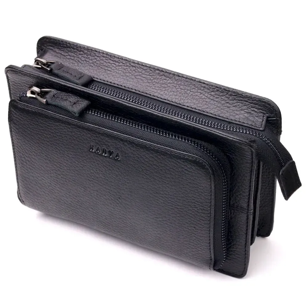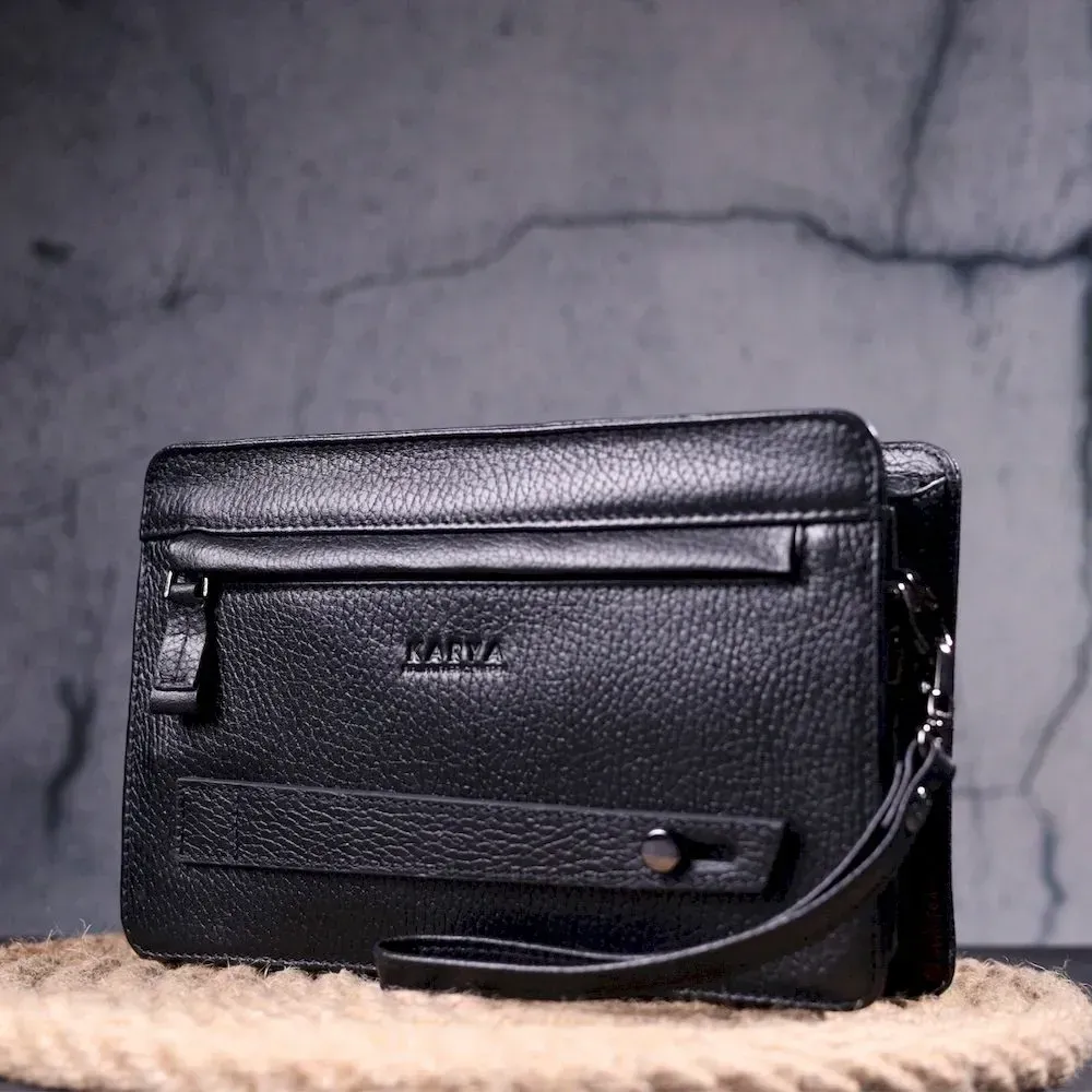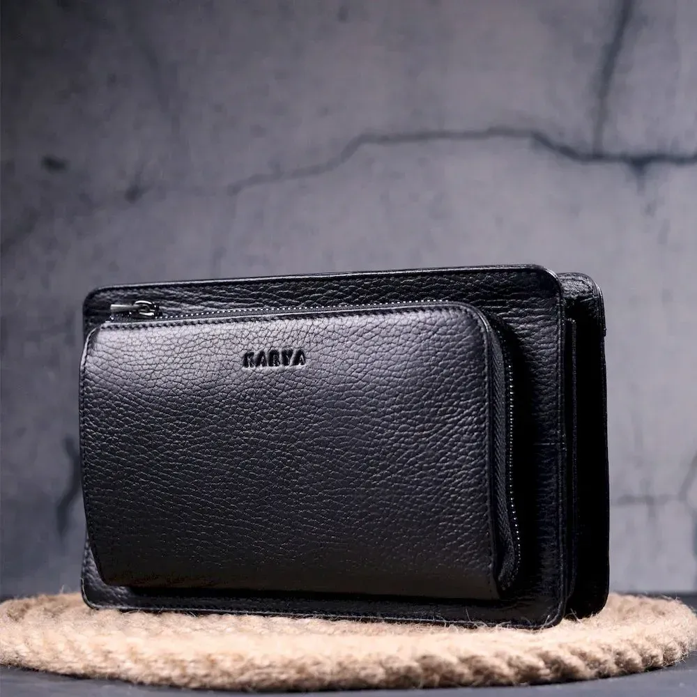 Містка чоловіча барсетка з натуральної шкіри KARYA 21309 Чорний