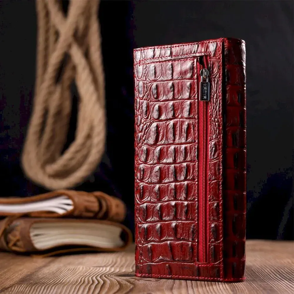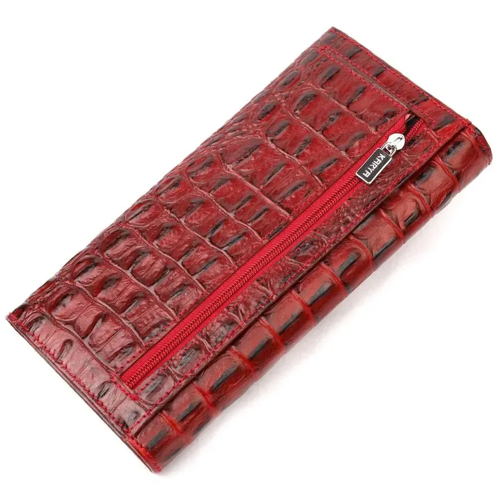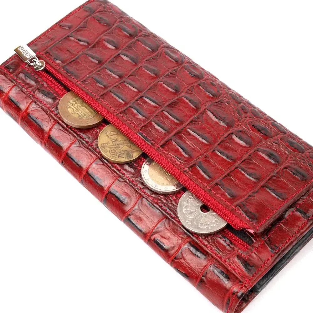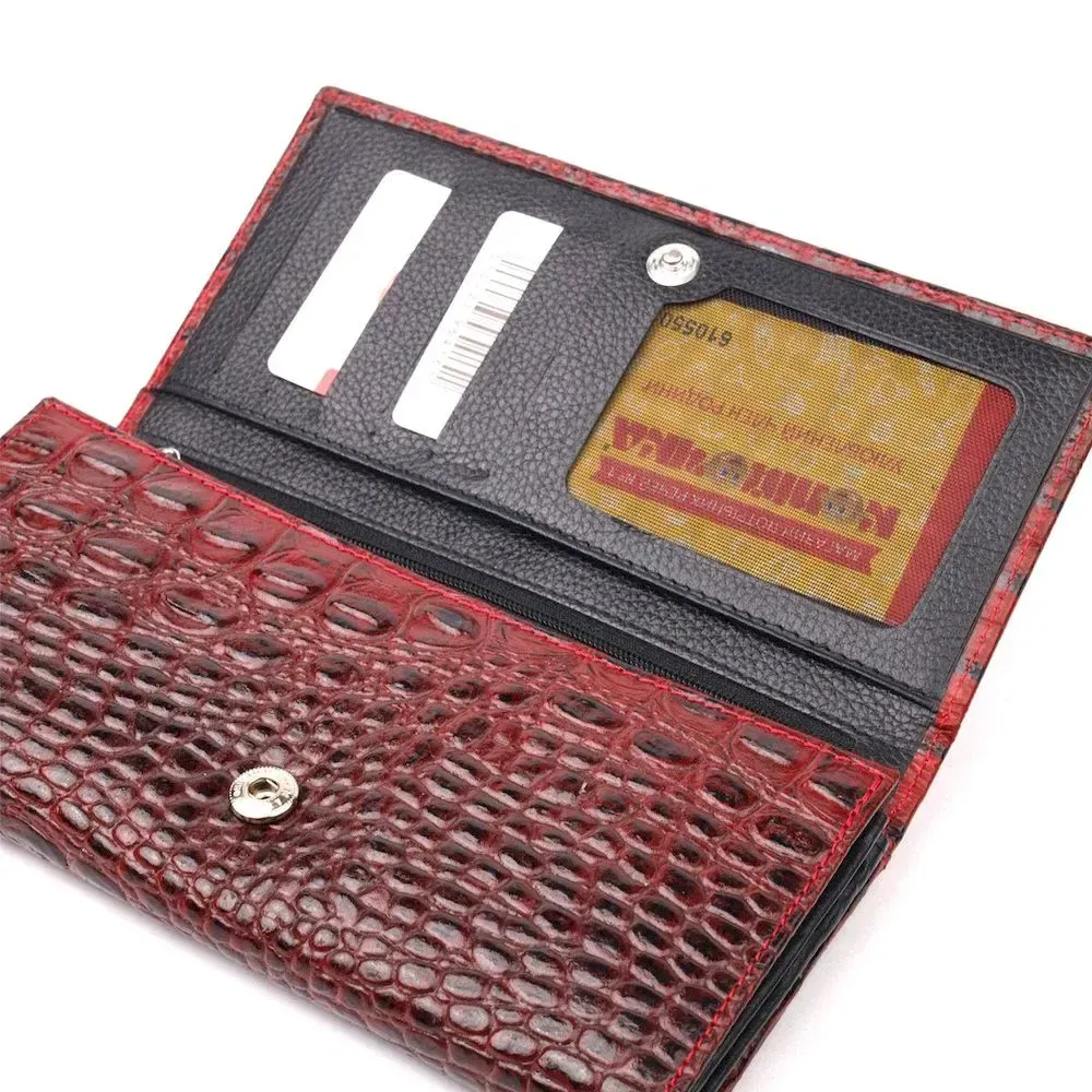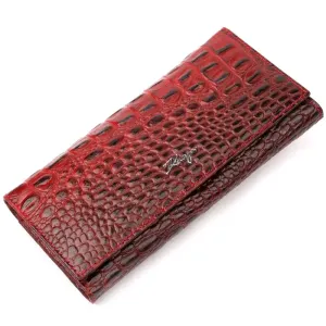Місткий горизонтальний гаманець з натуральної шкіри з тисненням під крокодила KARYA 21168 Червоний
