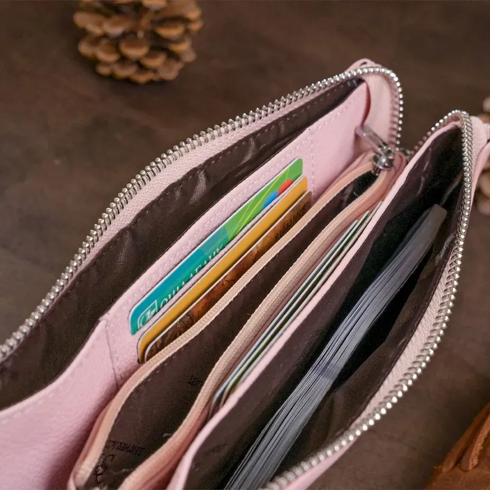 Елегантний жіночий клатч із натуральної шкіри. Модель надає легкості та ніжності вашому образу. Виріб має дві місткі кишені на блискавці та кишеньку перегородку на блискавці. Модель досить універсальна і вмістить навіть мобільний телефон та паспорт. На дотик м'яка та приємна. Має слабко виражений запах натуральної шкіри. Внутрішнє оздоблення - текстиль та натуральна шкіра. Клатч не займе багато місця у вашій сумочці або ви можете носити його на зап'ястя. Виріб упакований у фірмову коробку з логотипом білого кольору.