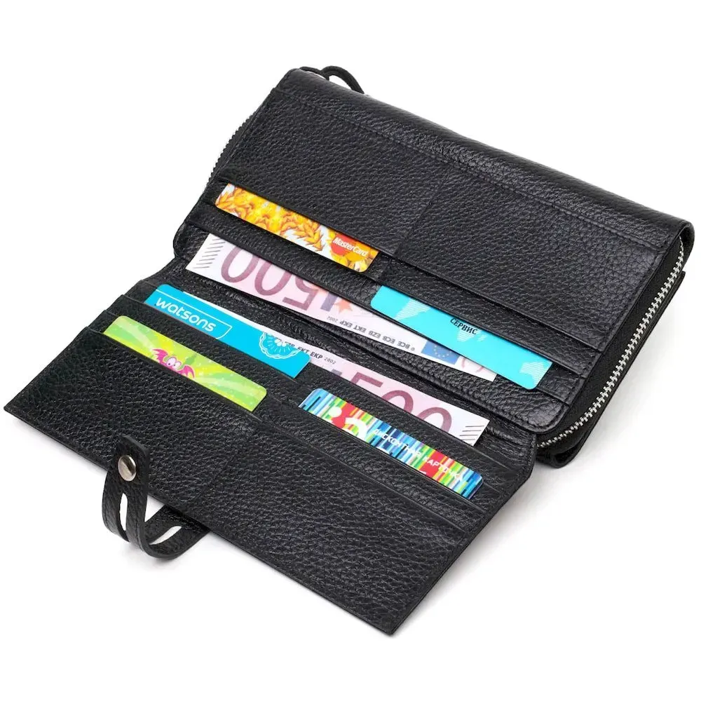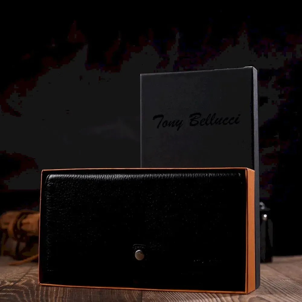 Місткий клатч з двома блоками для кредитних карток з натуральної шкіри Tony Bellucci 21984 Чорний