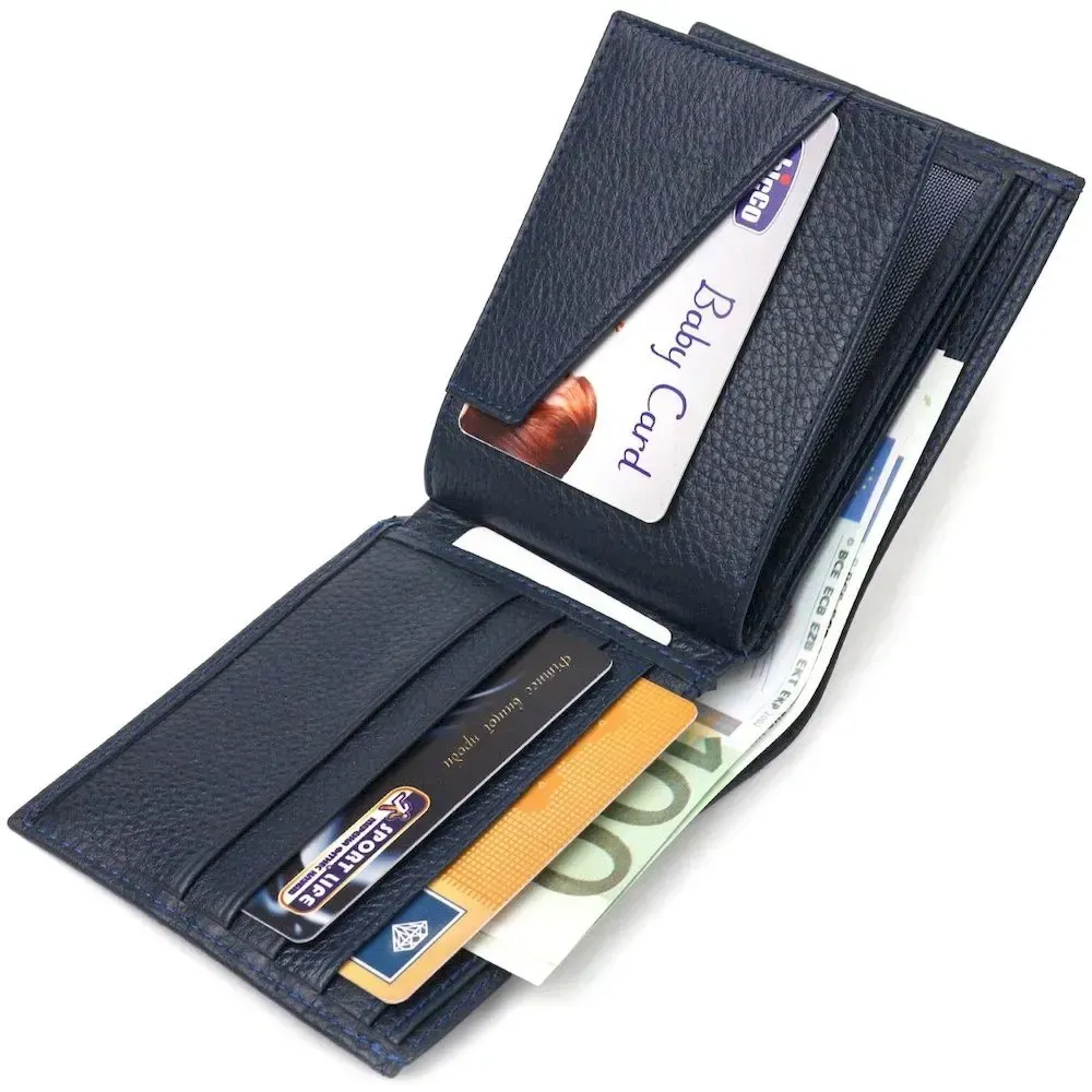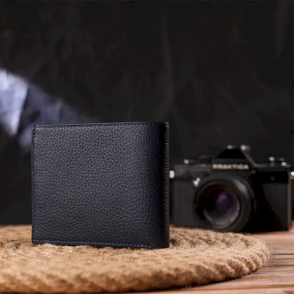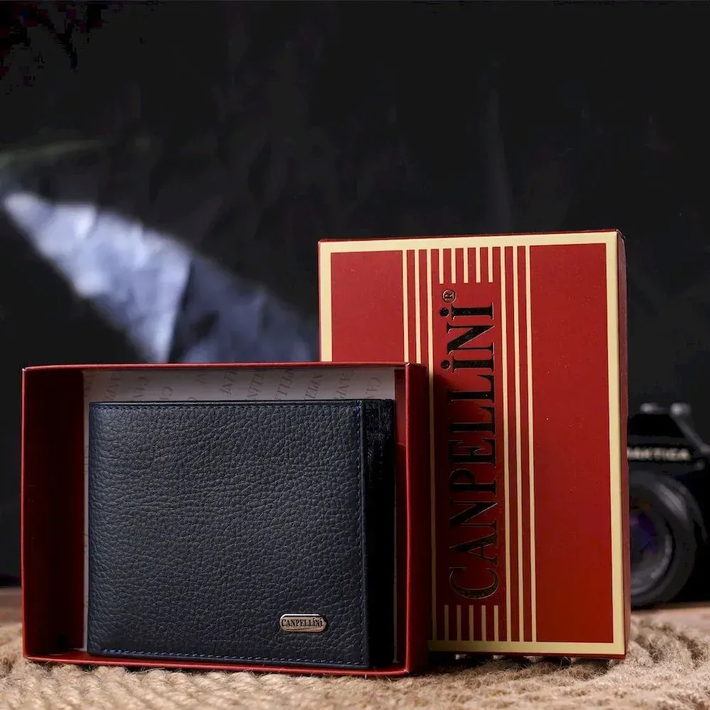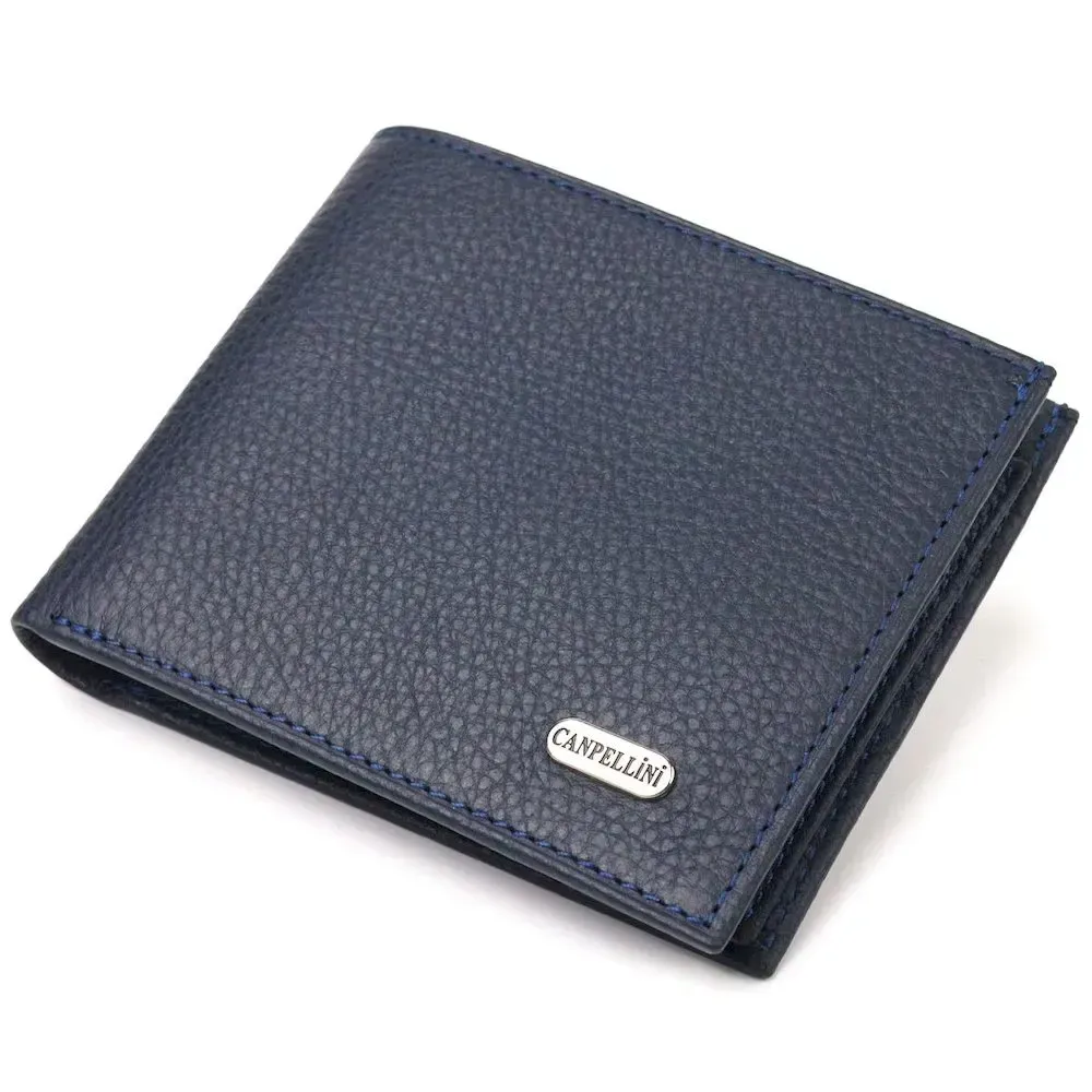 Місткий гаманець для чоловіків у дві складення з натуральної шкіри флотар CANPELLINI 21581 Синій
