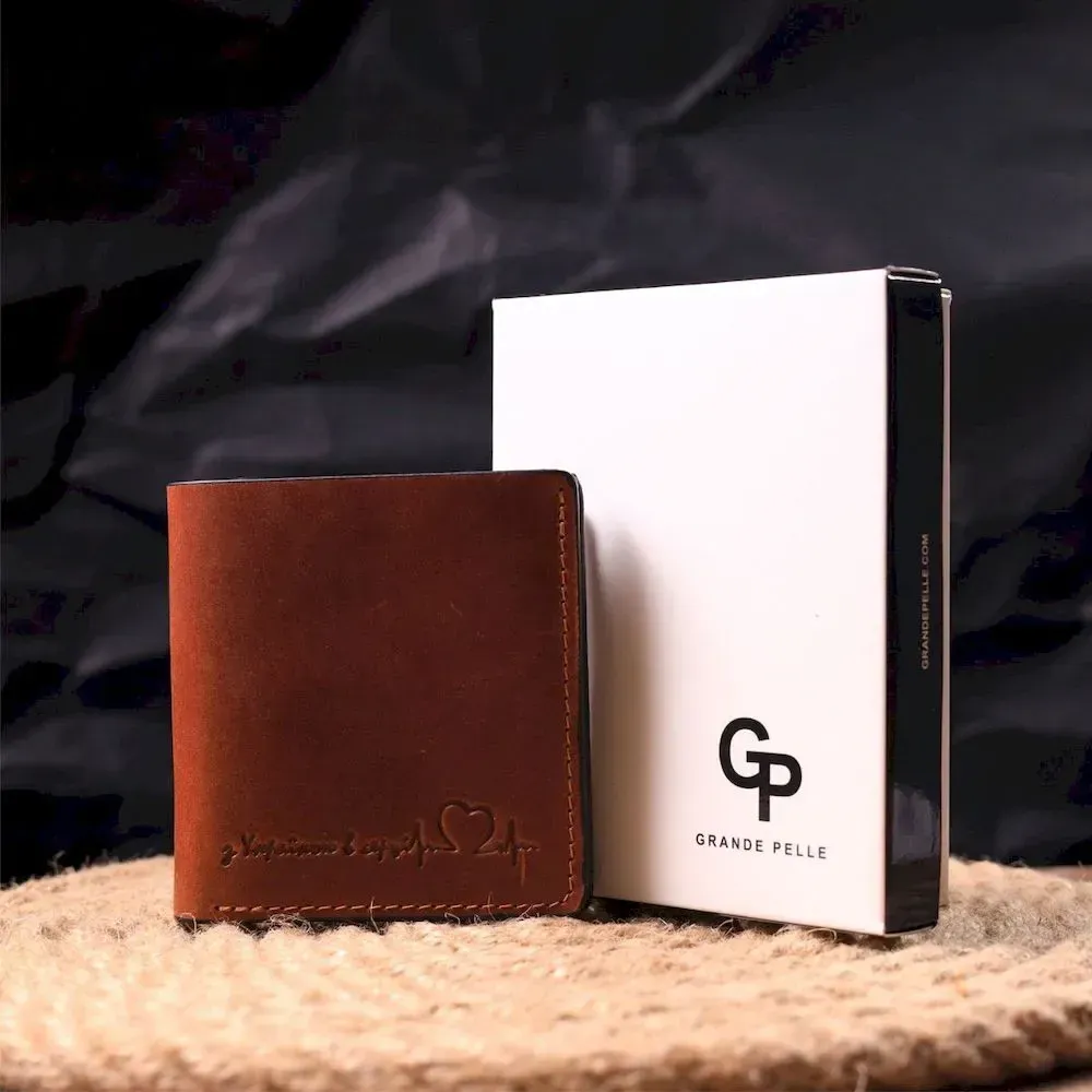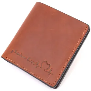 Місткий шкіряний чоловічий гаманець із монетницею Серце GRANDE PELLE 16743 Світло-коричневий