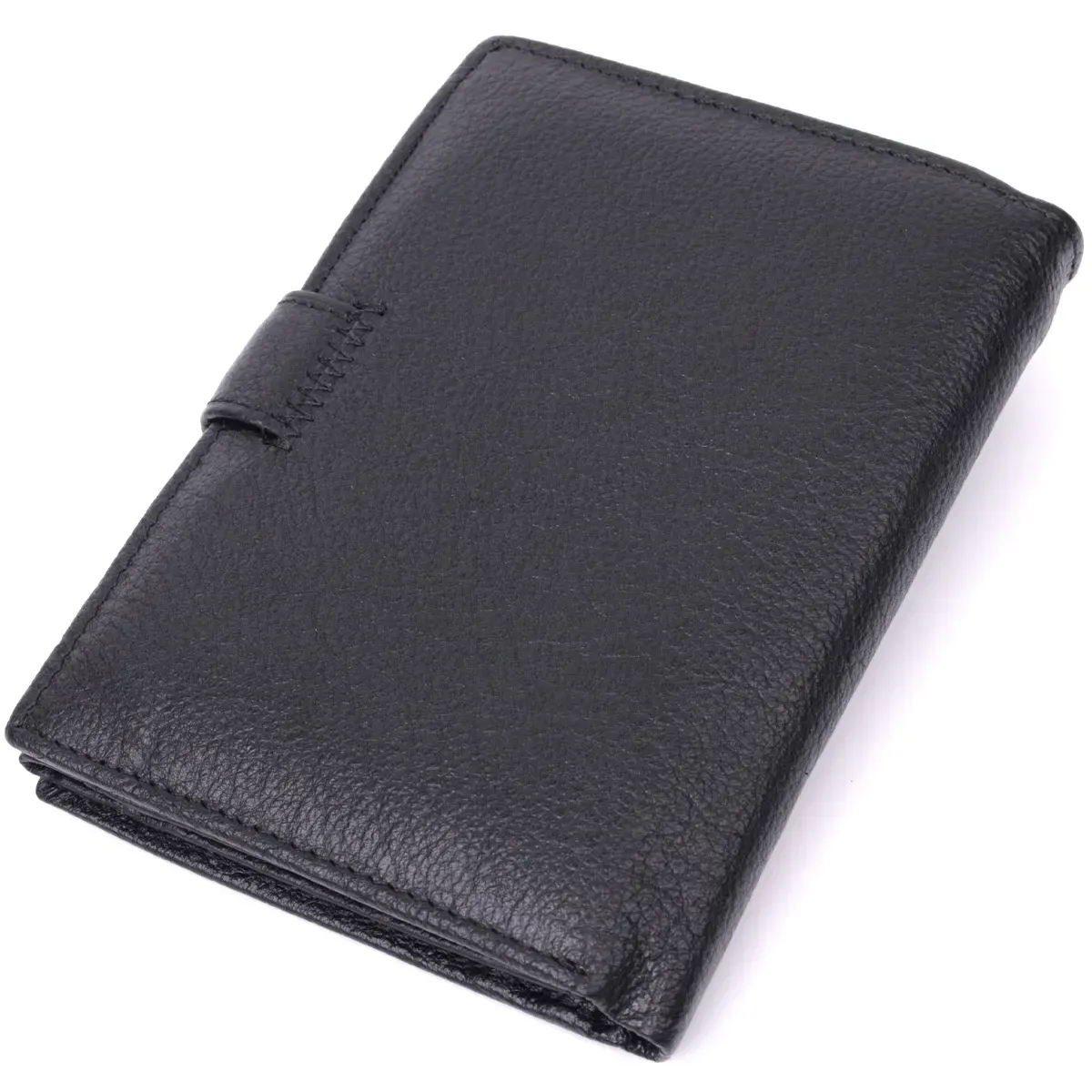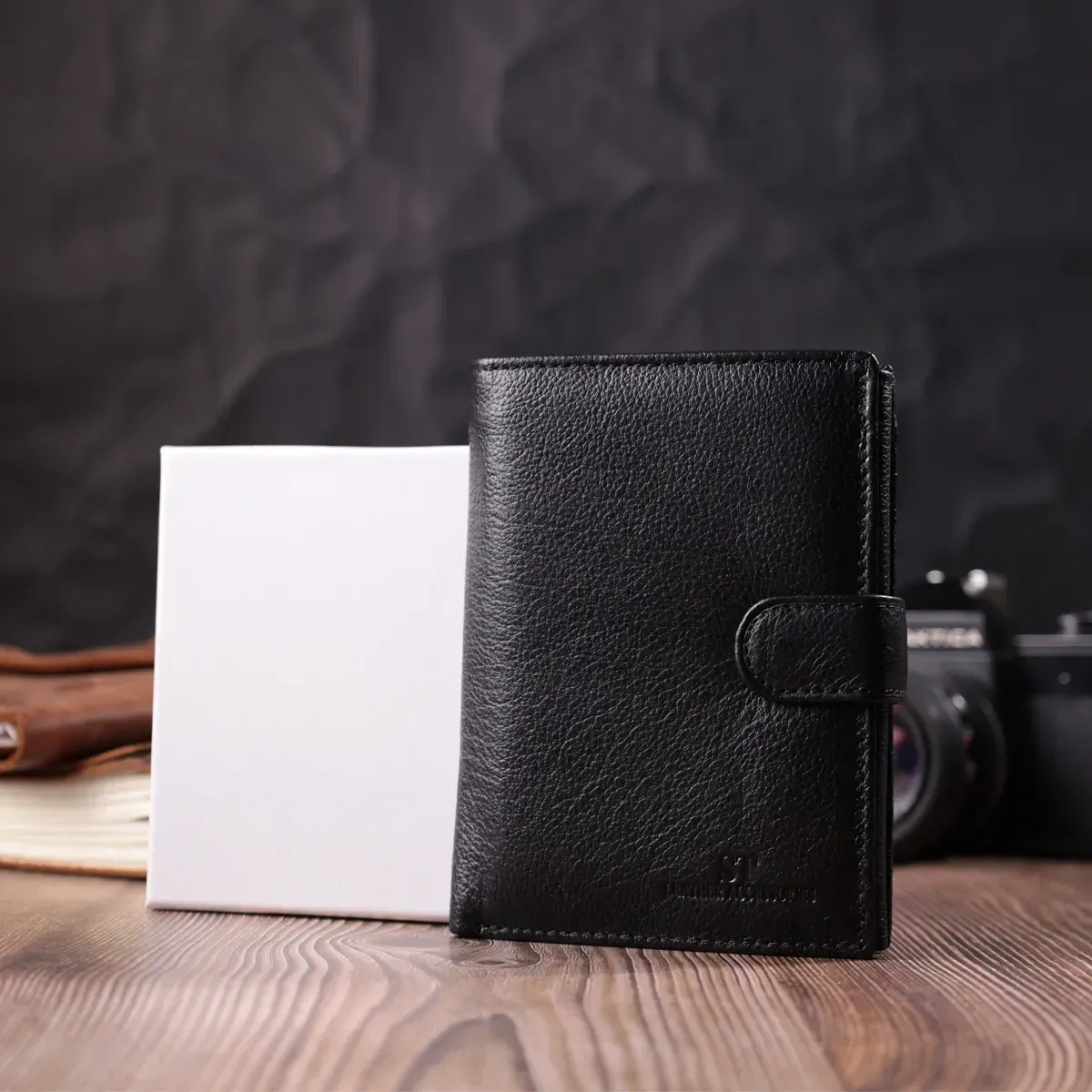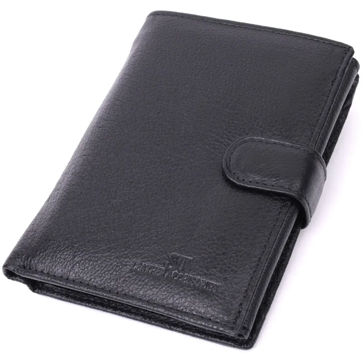 Місткий гаманець чоловічий з блоком під документи з натуральної шкіри ST Leather 22491 Чорний