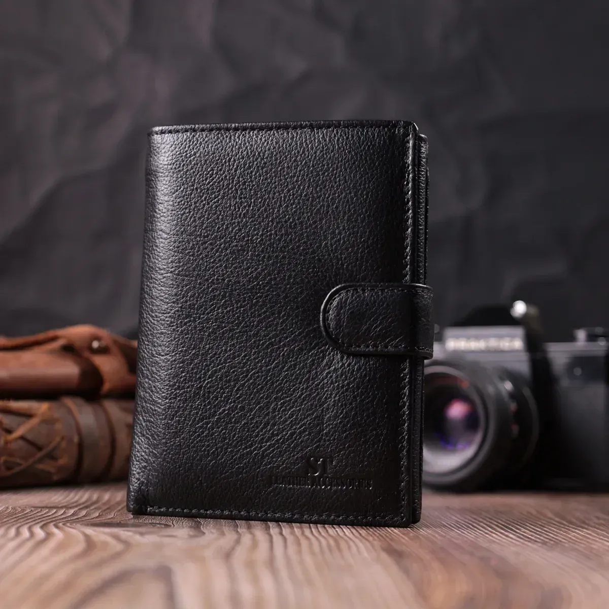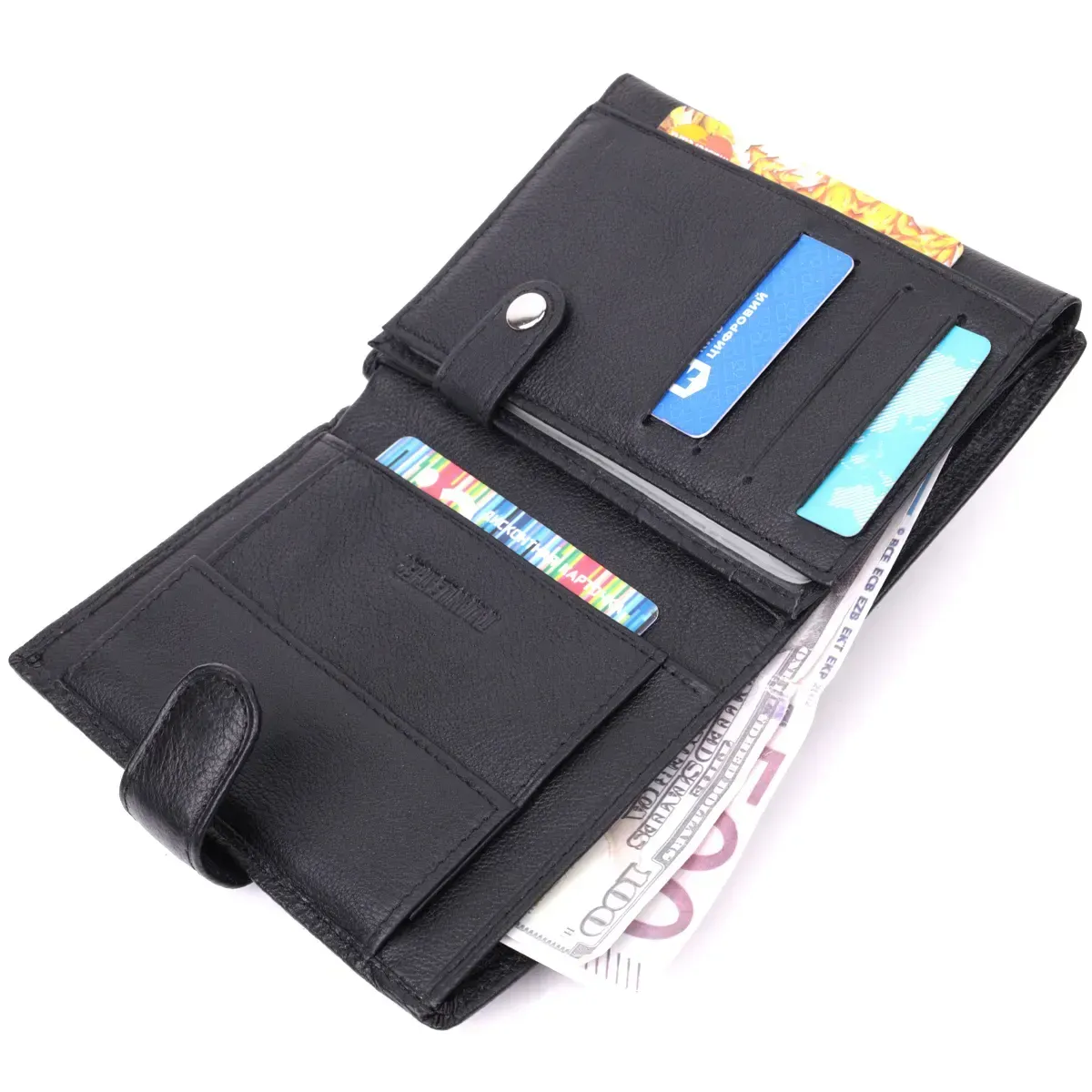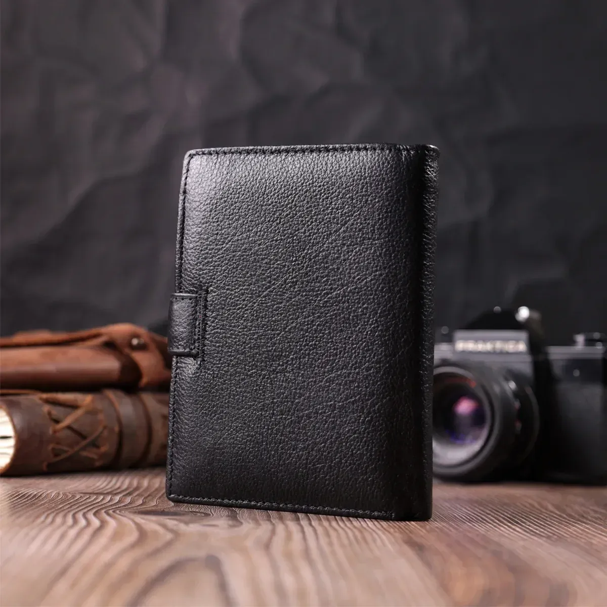 Місткий гаманець чоловічий з блоком під документи з натуральної шкіри ST Leather 22491 Чорний