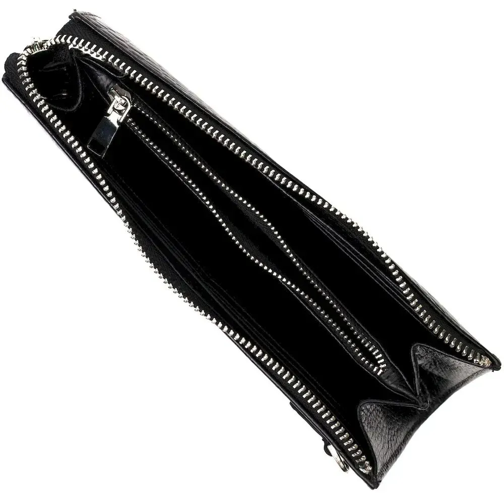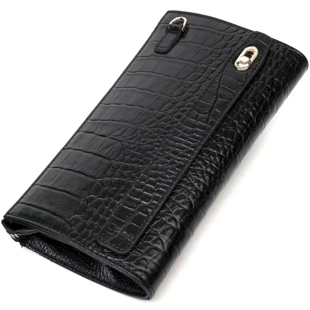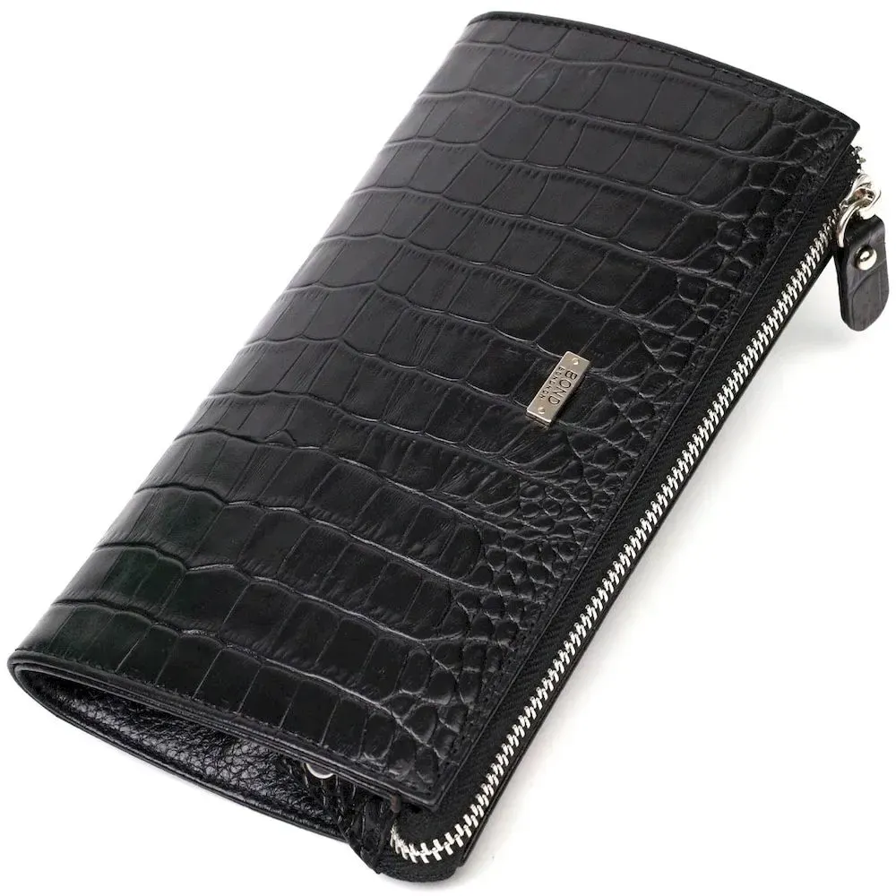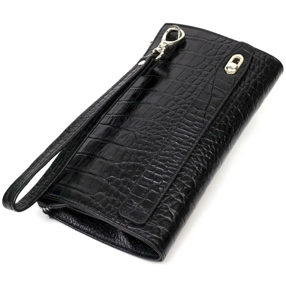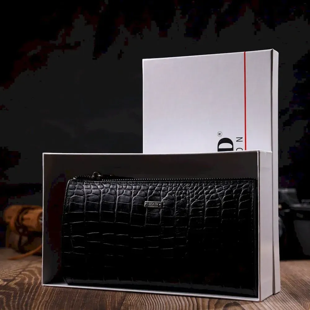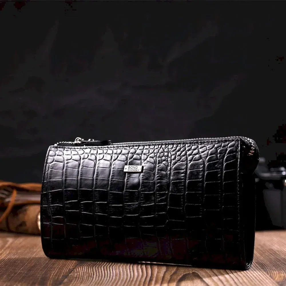 Місткий чоловічий клатч з натуральної шкіри з тисненням під крокодила BOND 22049 Чорний