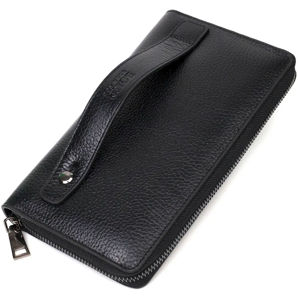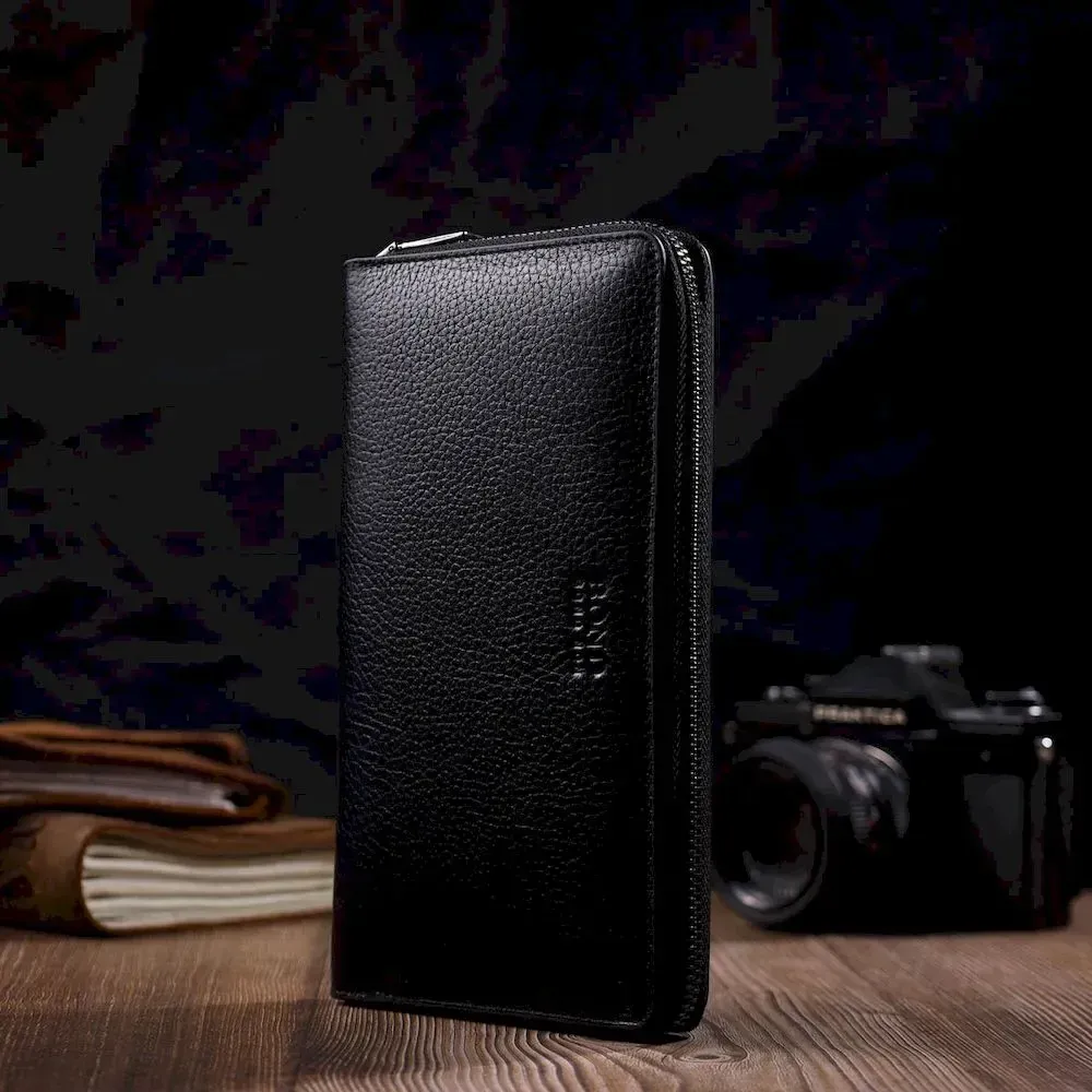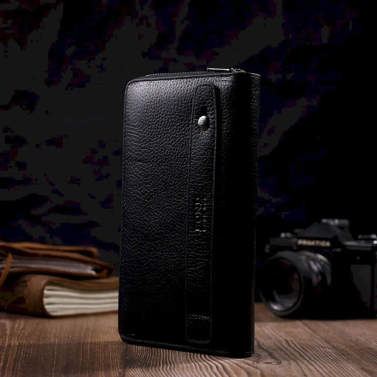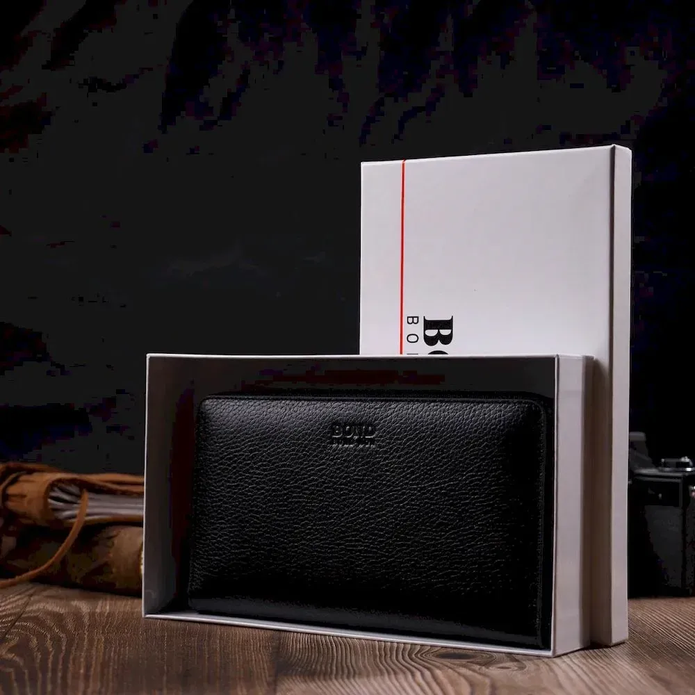 Місткий чоловічий клатч з одним відділенням з натуральної шкіри BOND 22029 Чорний