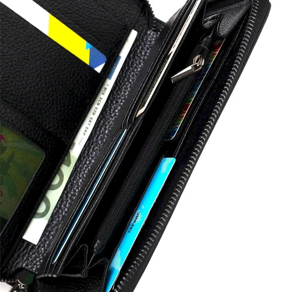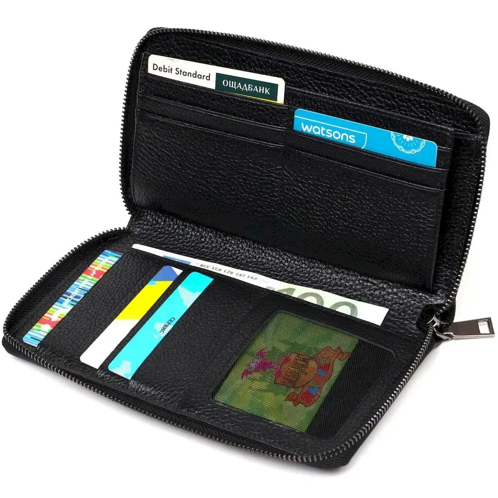 Практичний чоловічий клатч з натуральної м'якої шкіри, гаманець закривається на блискавку, всередині можна без проблем розміщувати паперові банкноти, банківські картки та навіть смартфон. Аксесуар складається з двох відділень для купюр, двох прилеглих кишень, сімнадцяти слотів для кредиток та монетниці на блискавці. Є також ручка долоні на тильній стороні клатчу. Продається гаманець у гарній коробці від виробника. Якісний і надійний клатч - саме такий аксесуар повинен бути у кожної людини, що поважає себе.