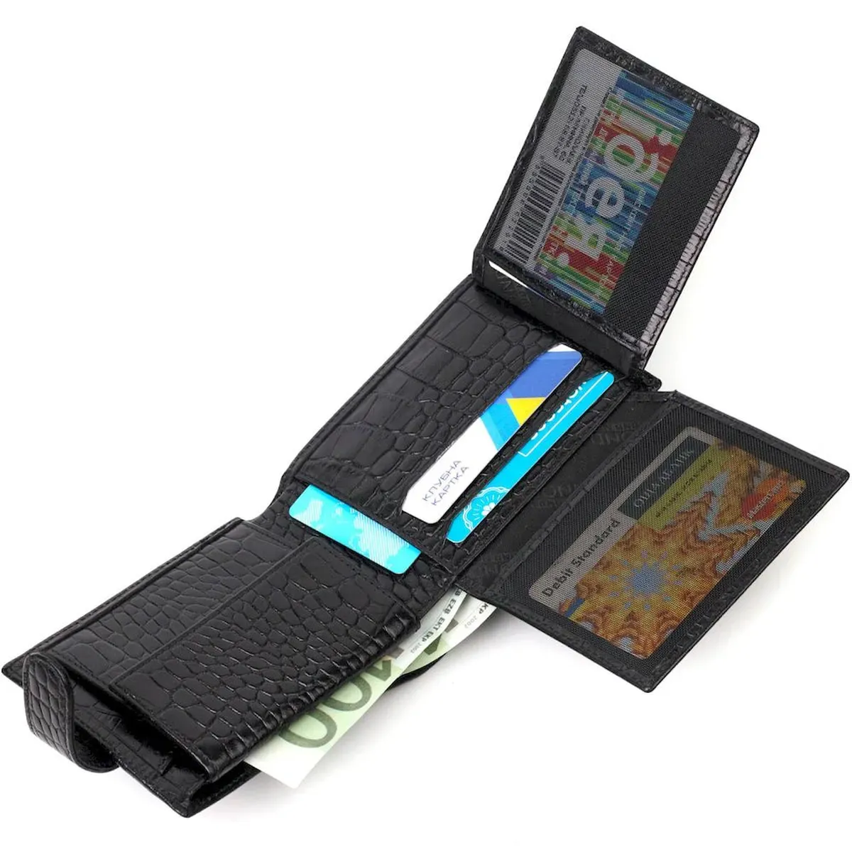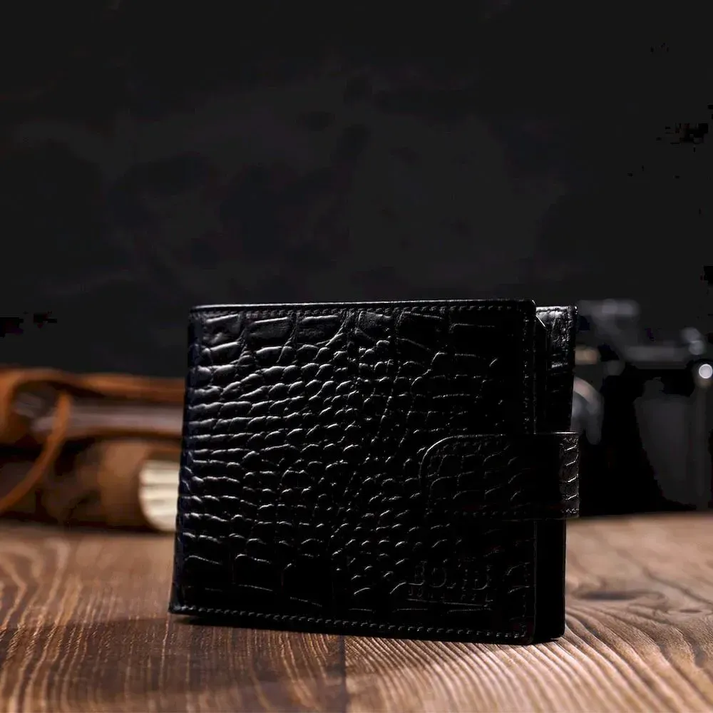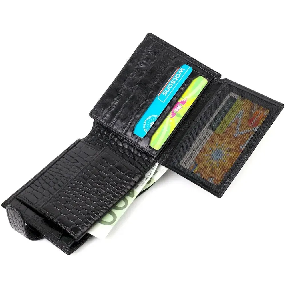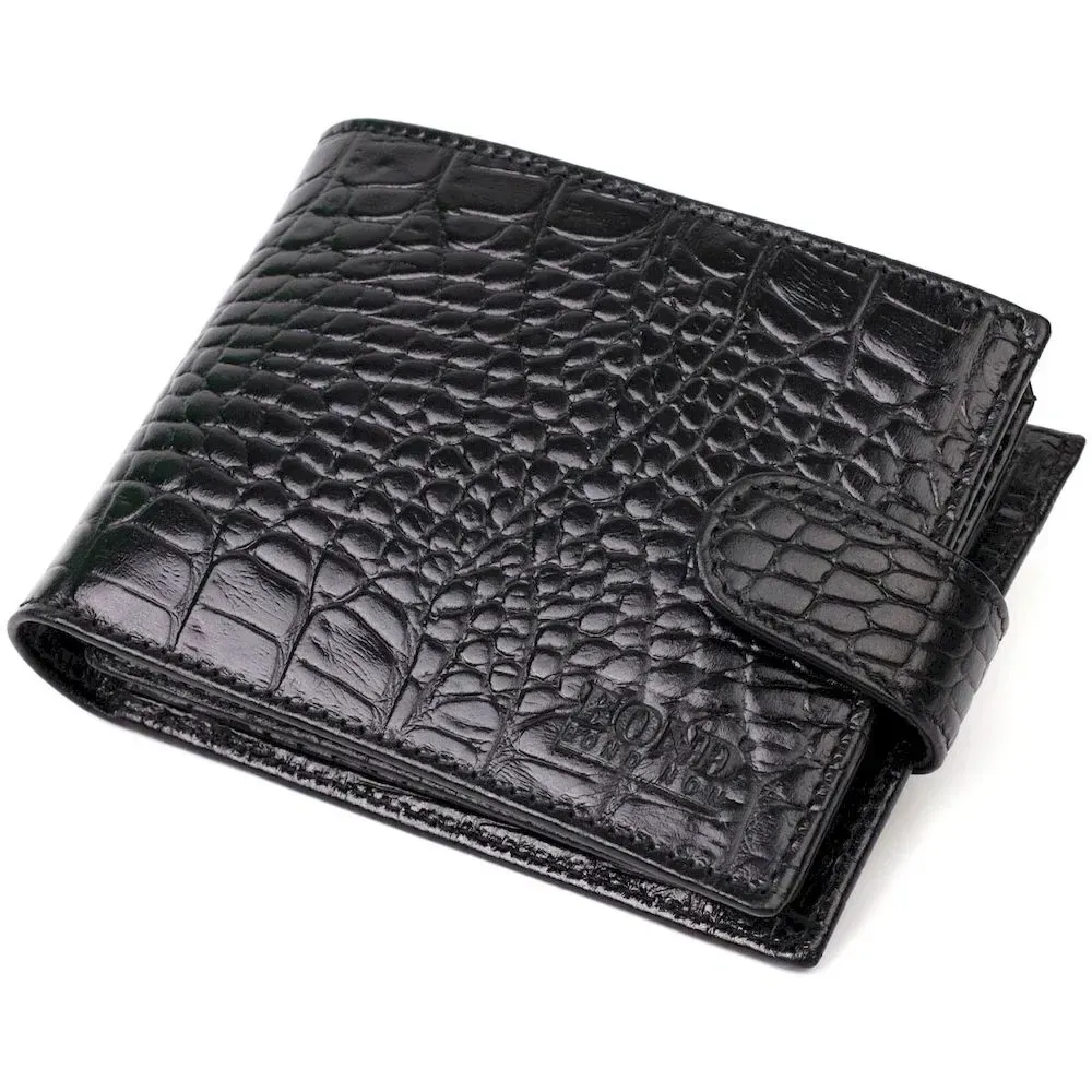 Місткий невеликий гаманець для чоловіків з натуральної шкіри з тисненням під крокодила BOND 21997 Чорний