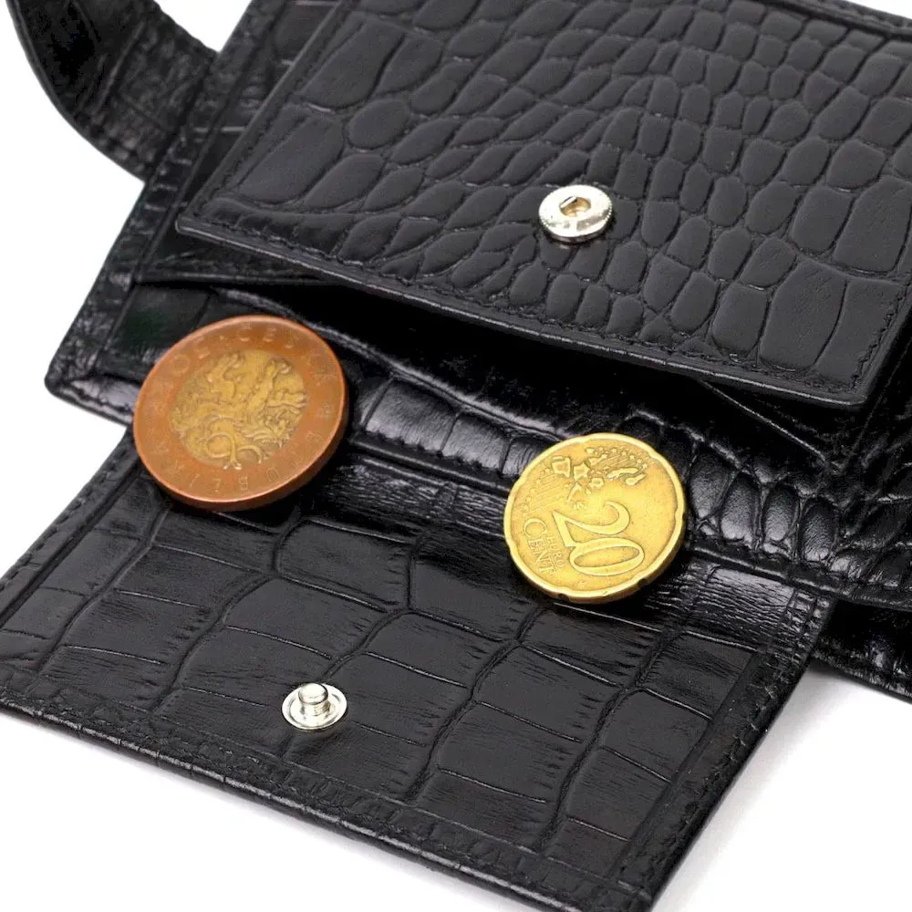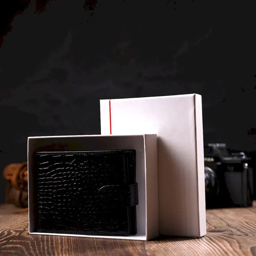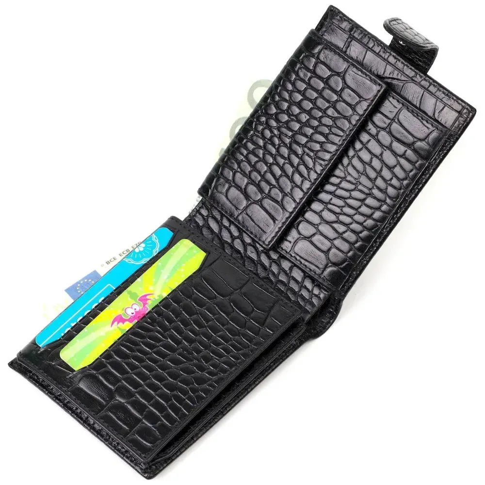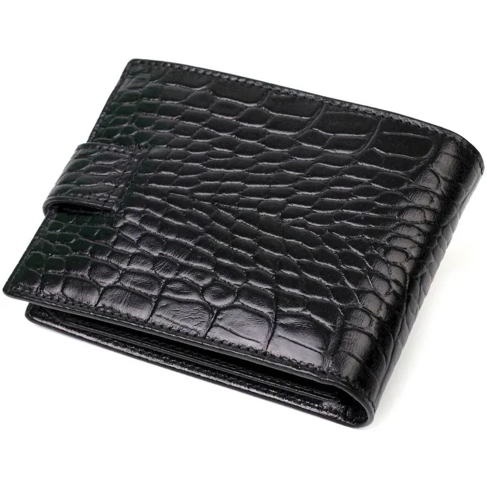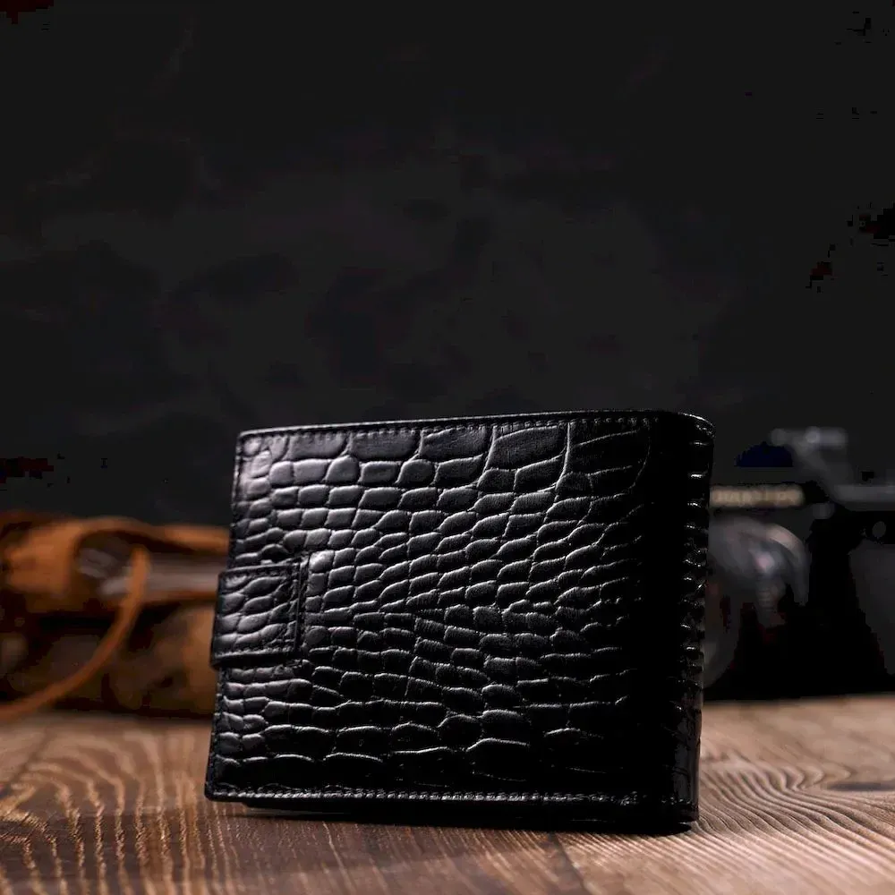 Місткий невеликий гаманець для чоловіків з натуральної шкіри з тисненням під крокодила BOND 21997 Чорний