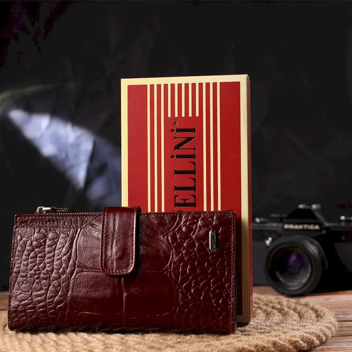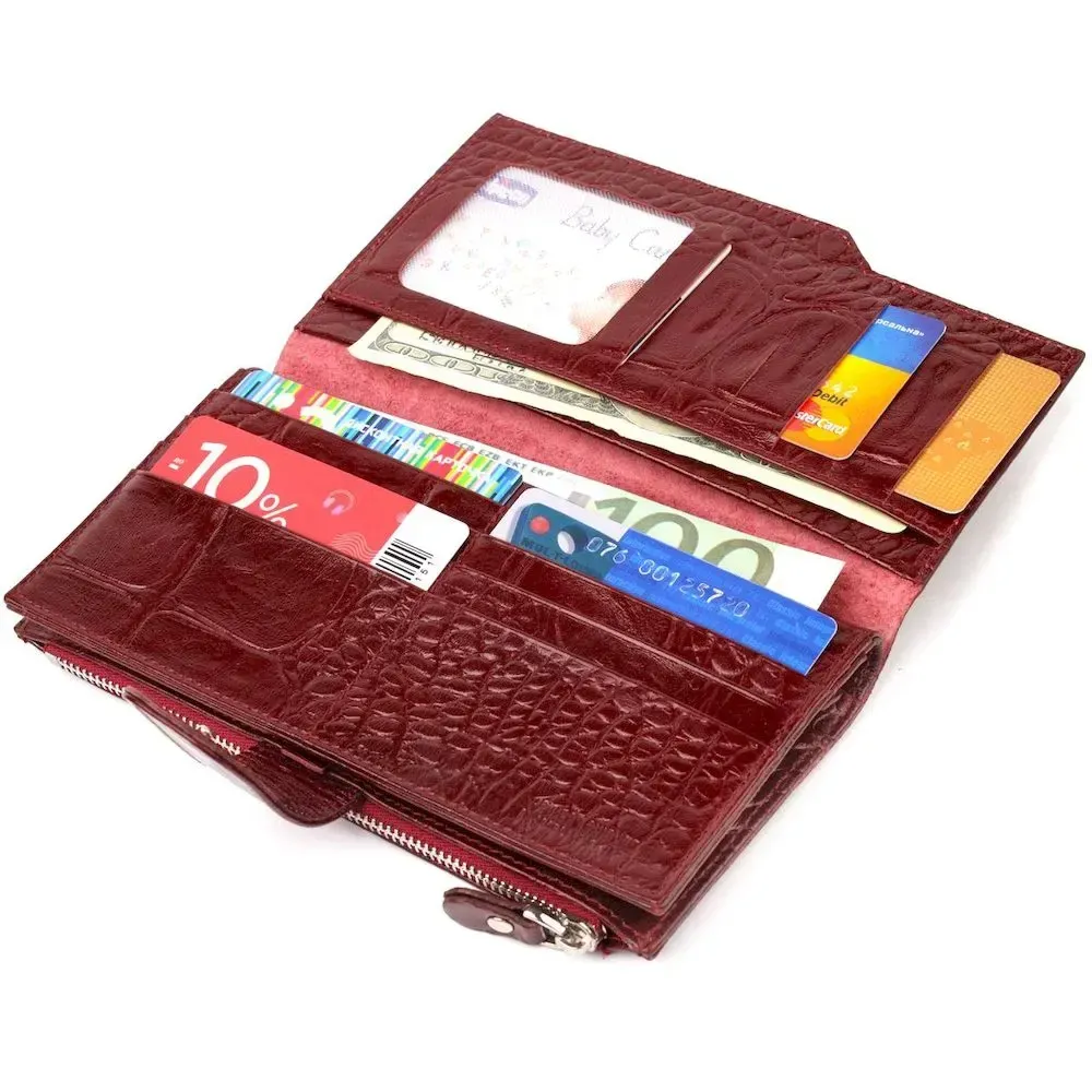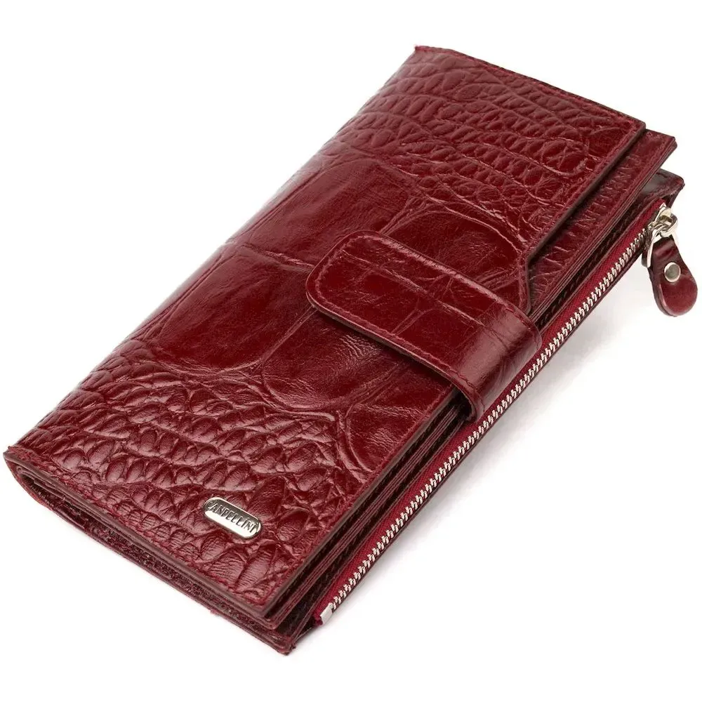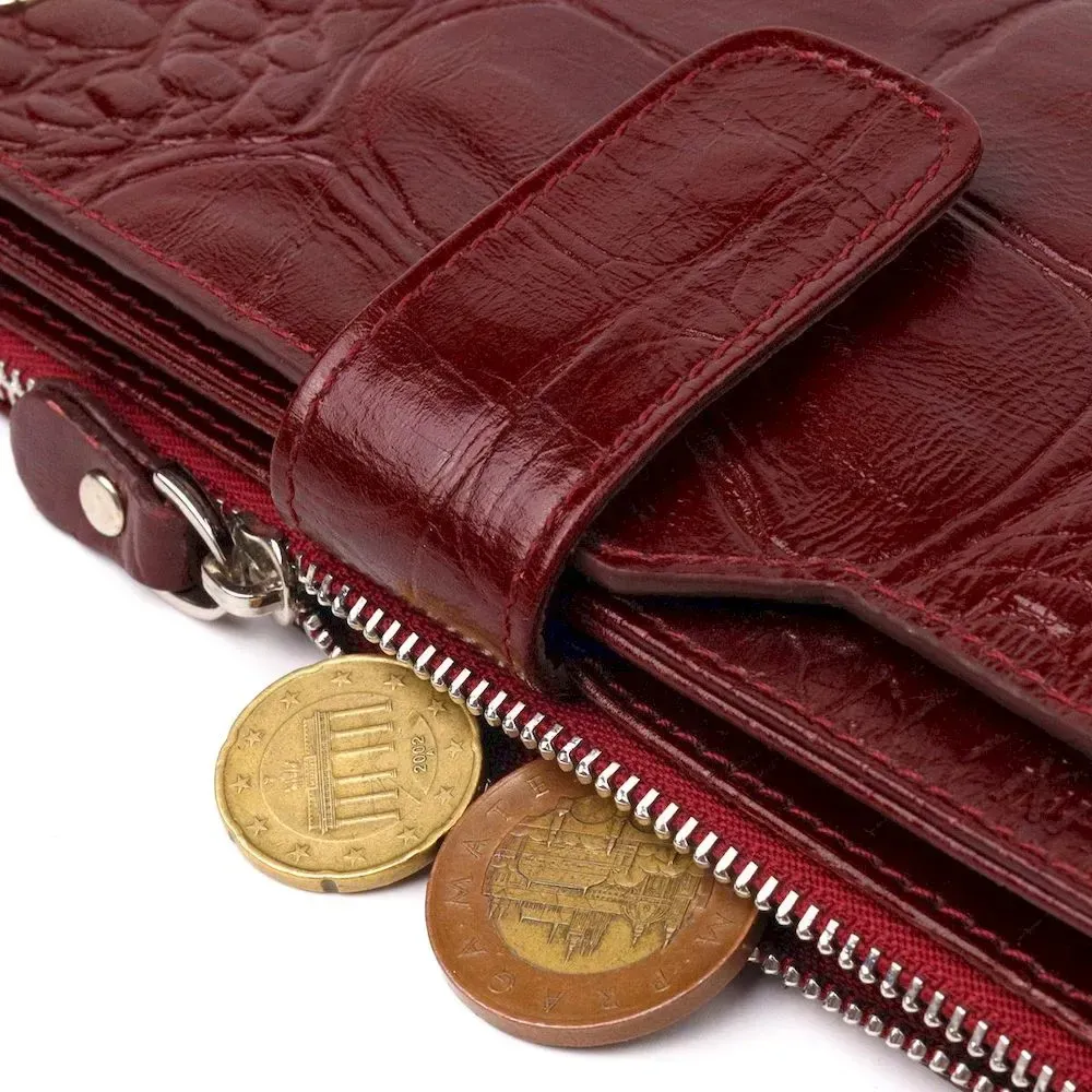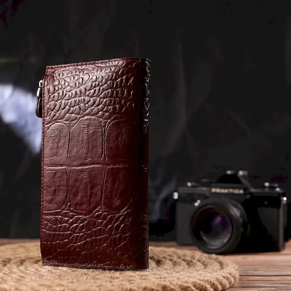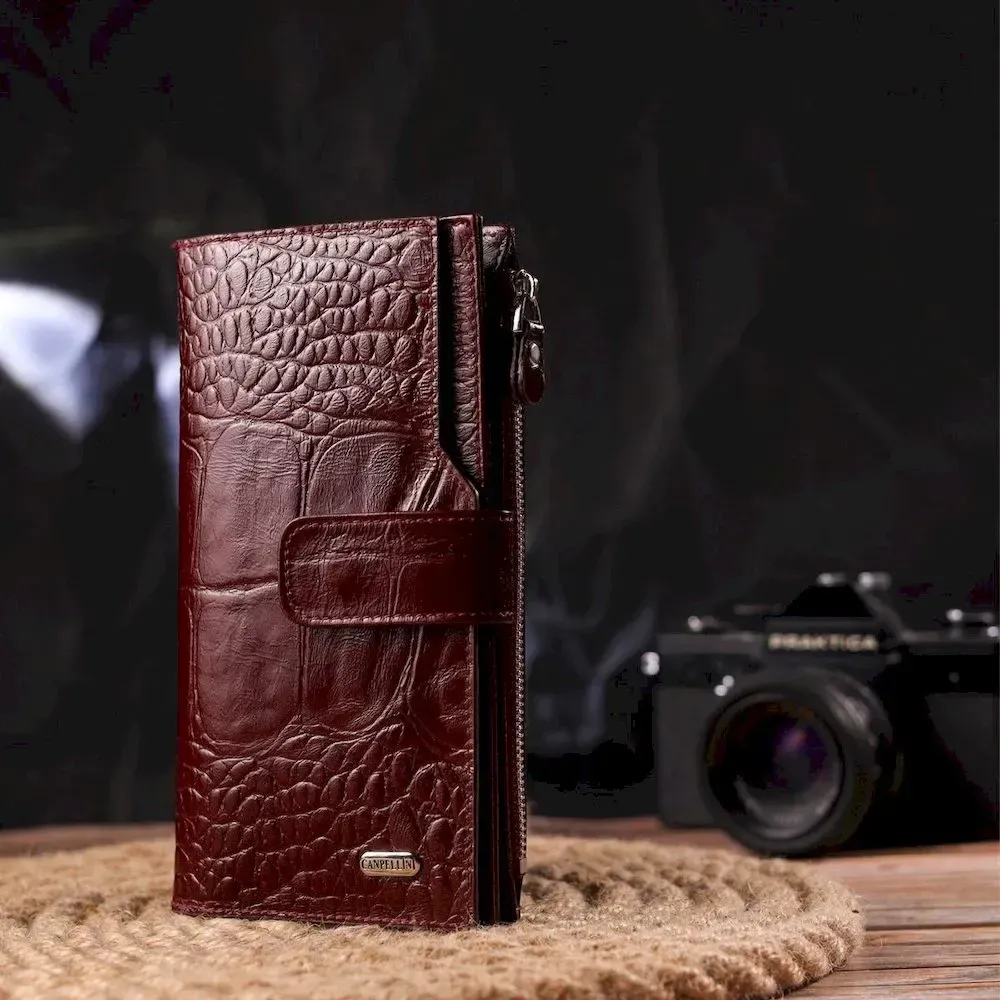 Місткий вертикальний гаманець з натуральної шкіри з тисненням під крокодила CANPELLINI 21644 Бордовий