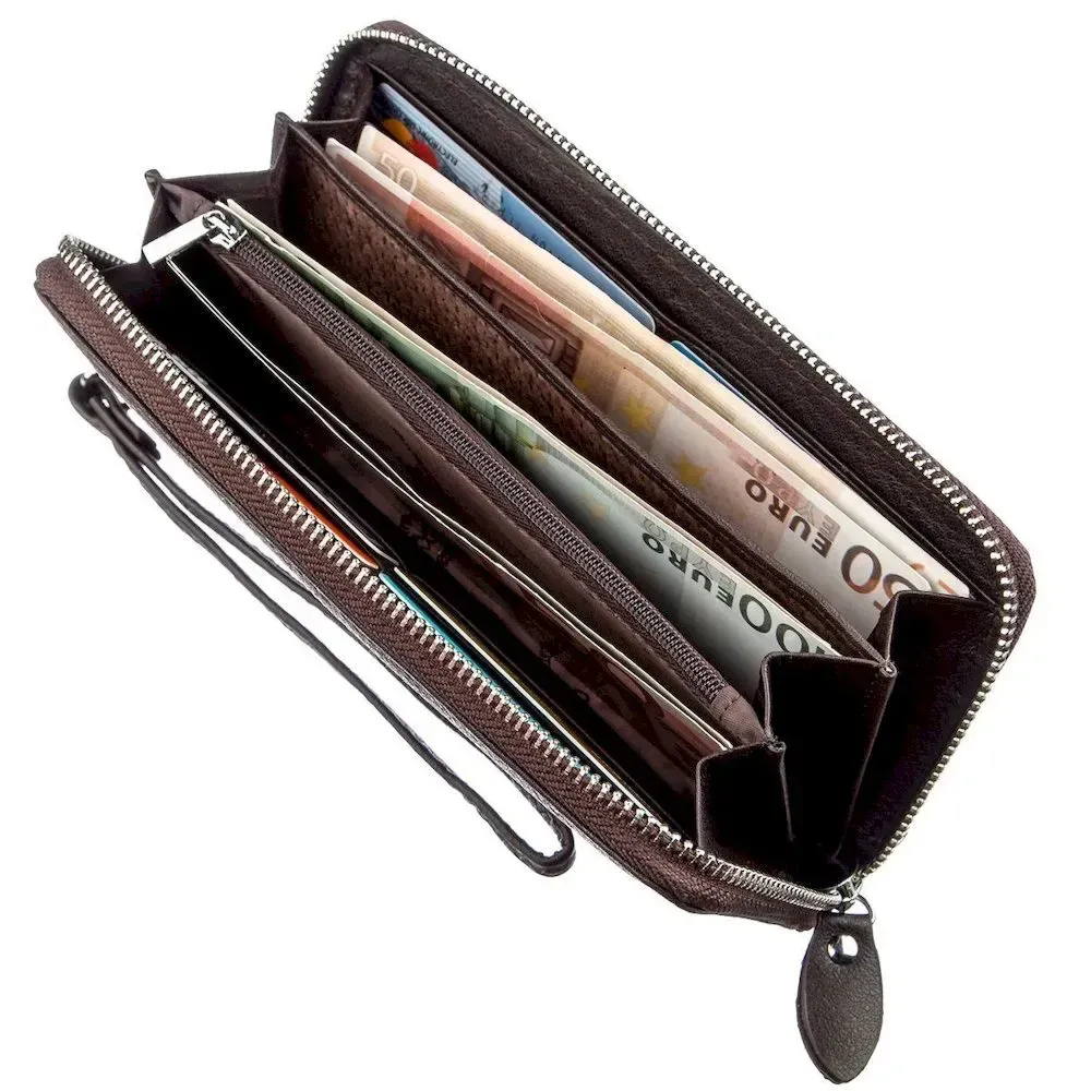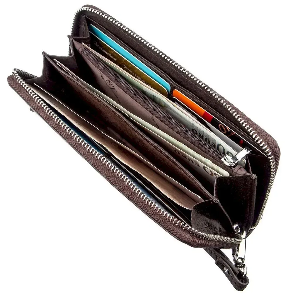 Чудовий жіночий клатч в Суворий і сучасний дизайн. Виготовлений з добротної натуральної шкіри чудової якості з відмінними властивостями. Має шикарний насичений коричневий колір та м'яку зернисту фактуру. Цей клатч ідеально підійде для ділових та сучасних жінок. Усередині знаходиться достатня кількість необхідних відділень та кишень. Закривається аксесуар на срібну металеву блискавку. Такий клатч може стати незабутнім подарунком для Вашої коханої та неповторної жінки. Продається аксесуар у білій картонній коробці з фірмовим логотипом.