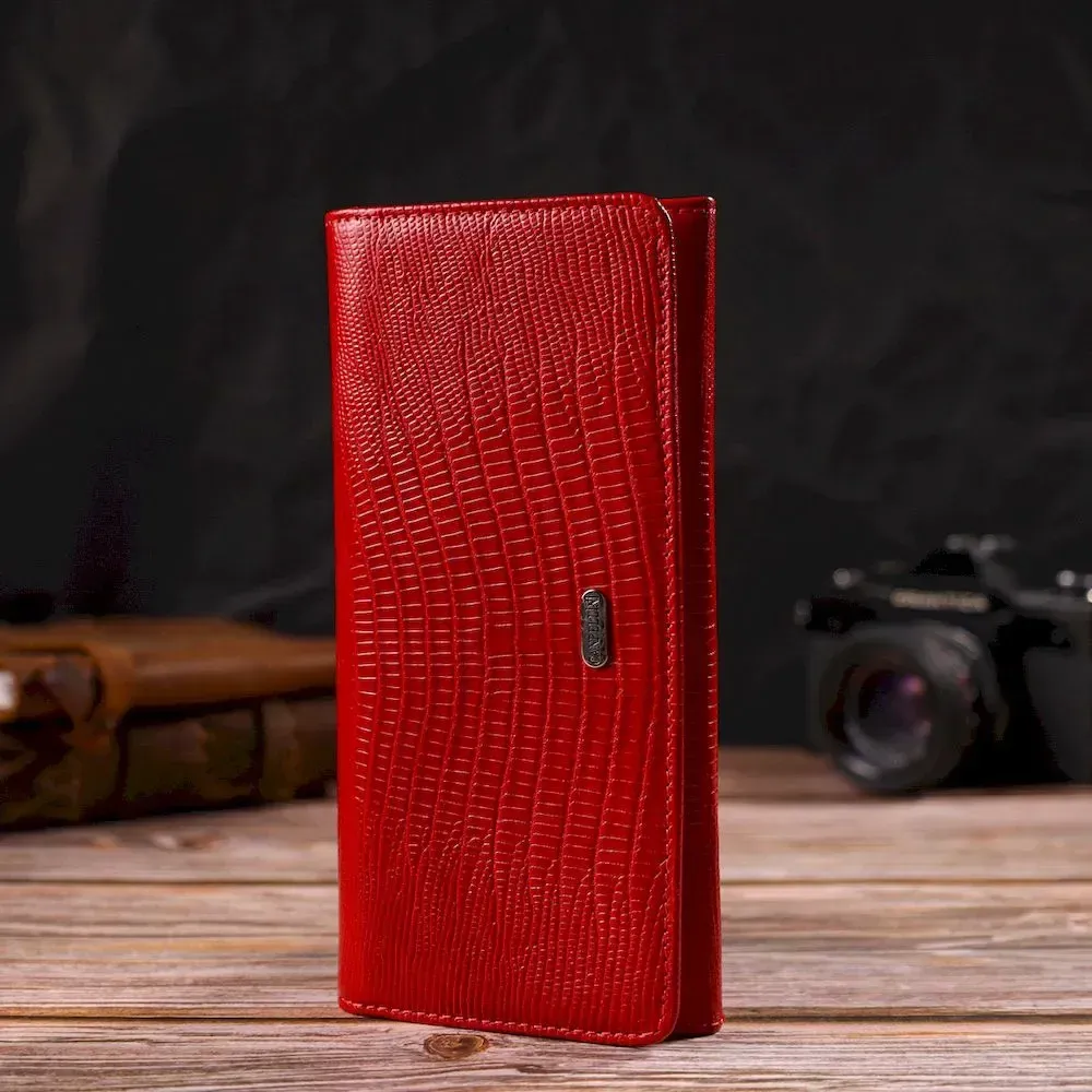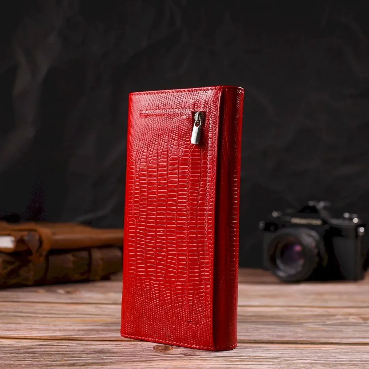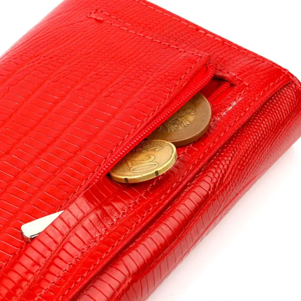 Місткий жіночий гаманець із фактурної натуральної шкіри з тисненням CANPELLINI 21709 Червоний