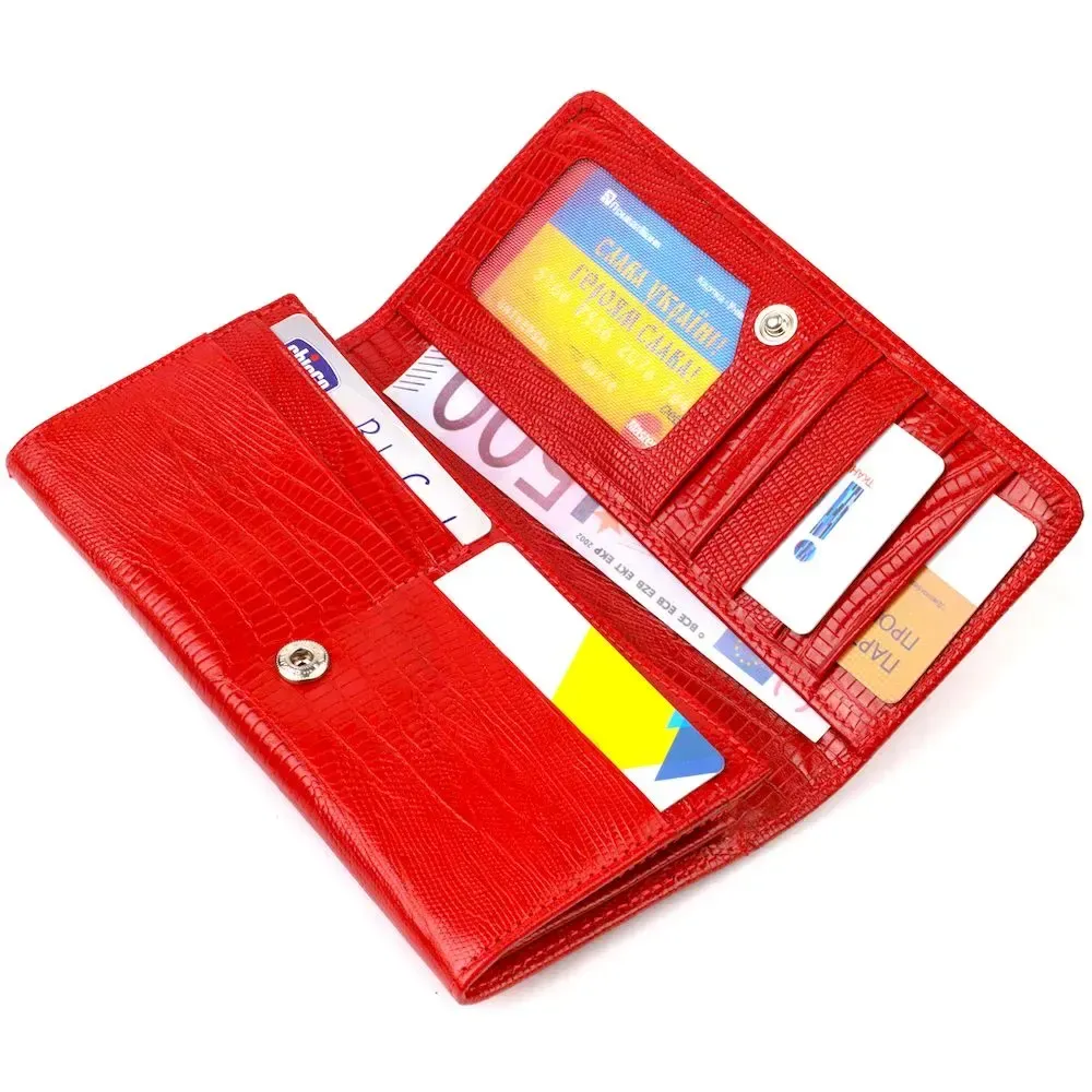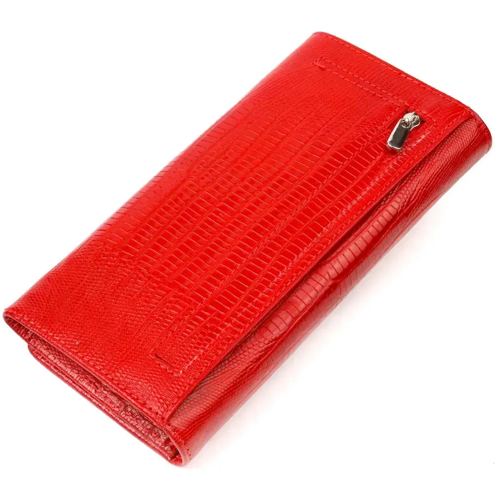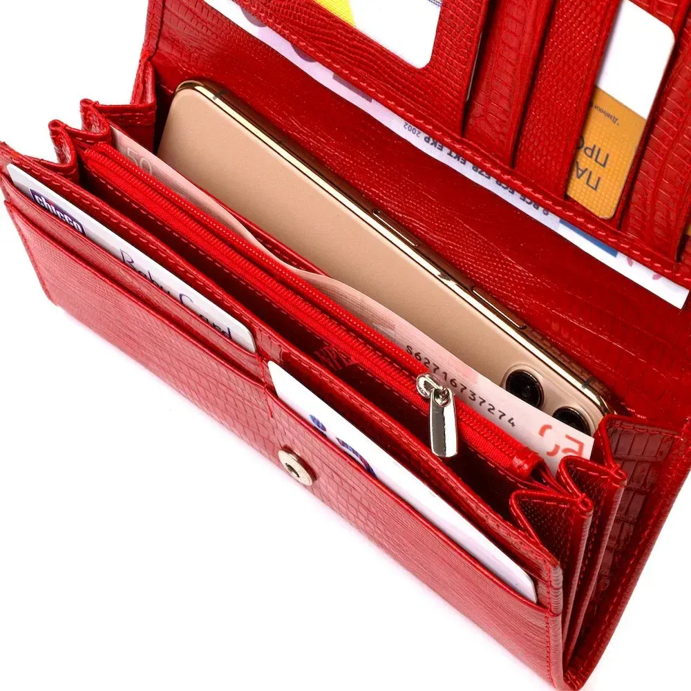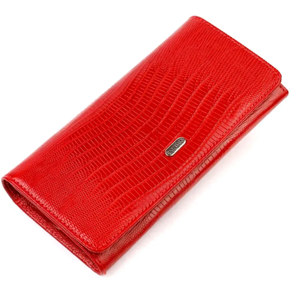 Місткий жіночий гаманець із фактурної натуральної шкіри з тисненням CANPELLINI 21709 Червоний