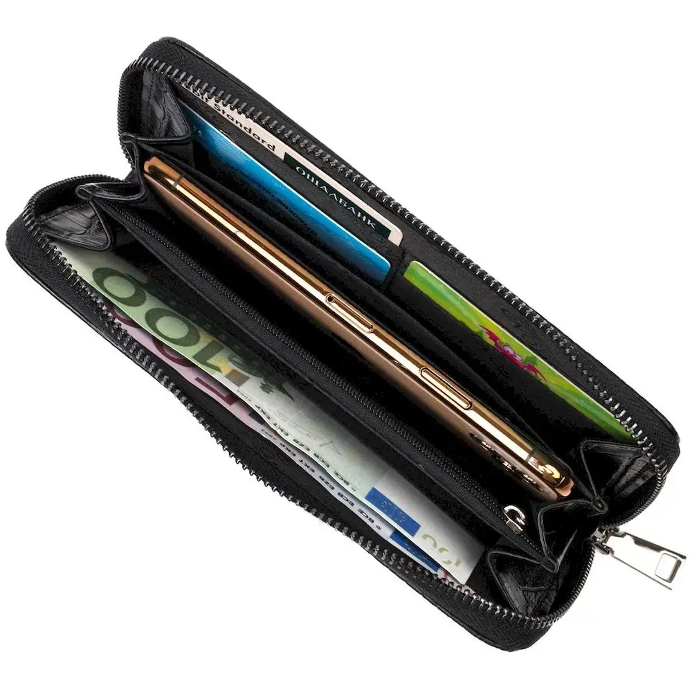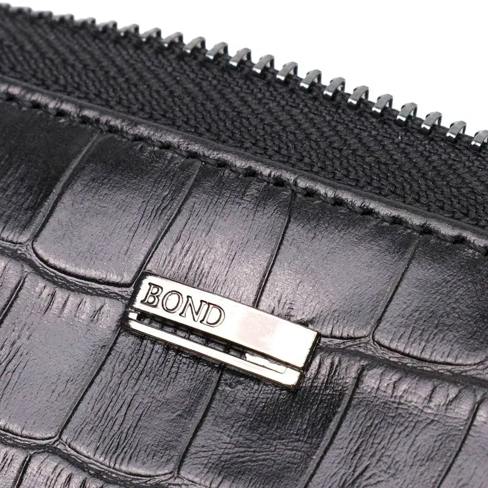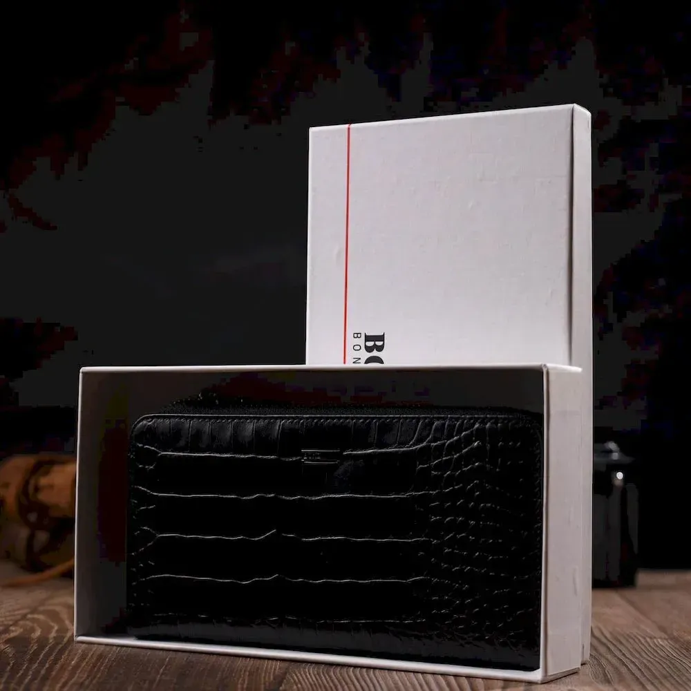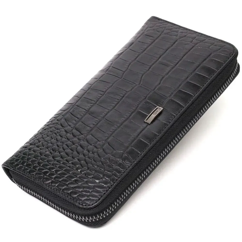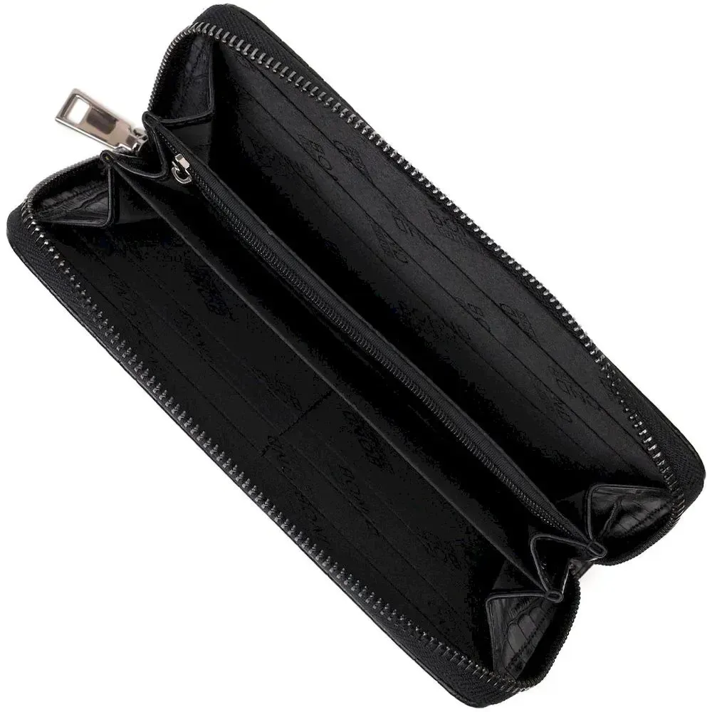 Місткий жіночий гаманець з натуральної шкіри з тисненням під крокодила BOND 21980 Чорний