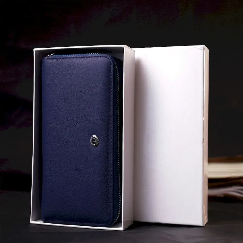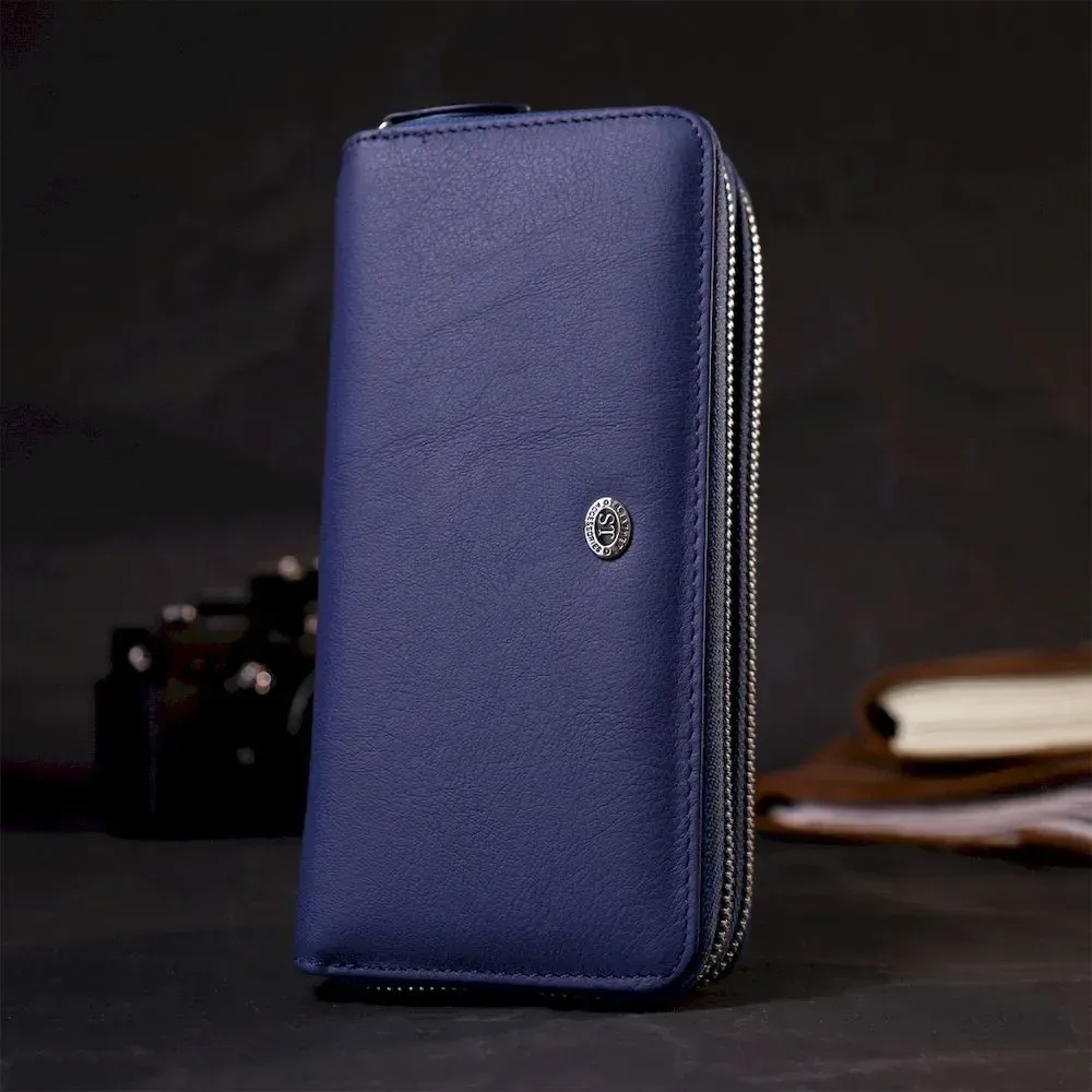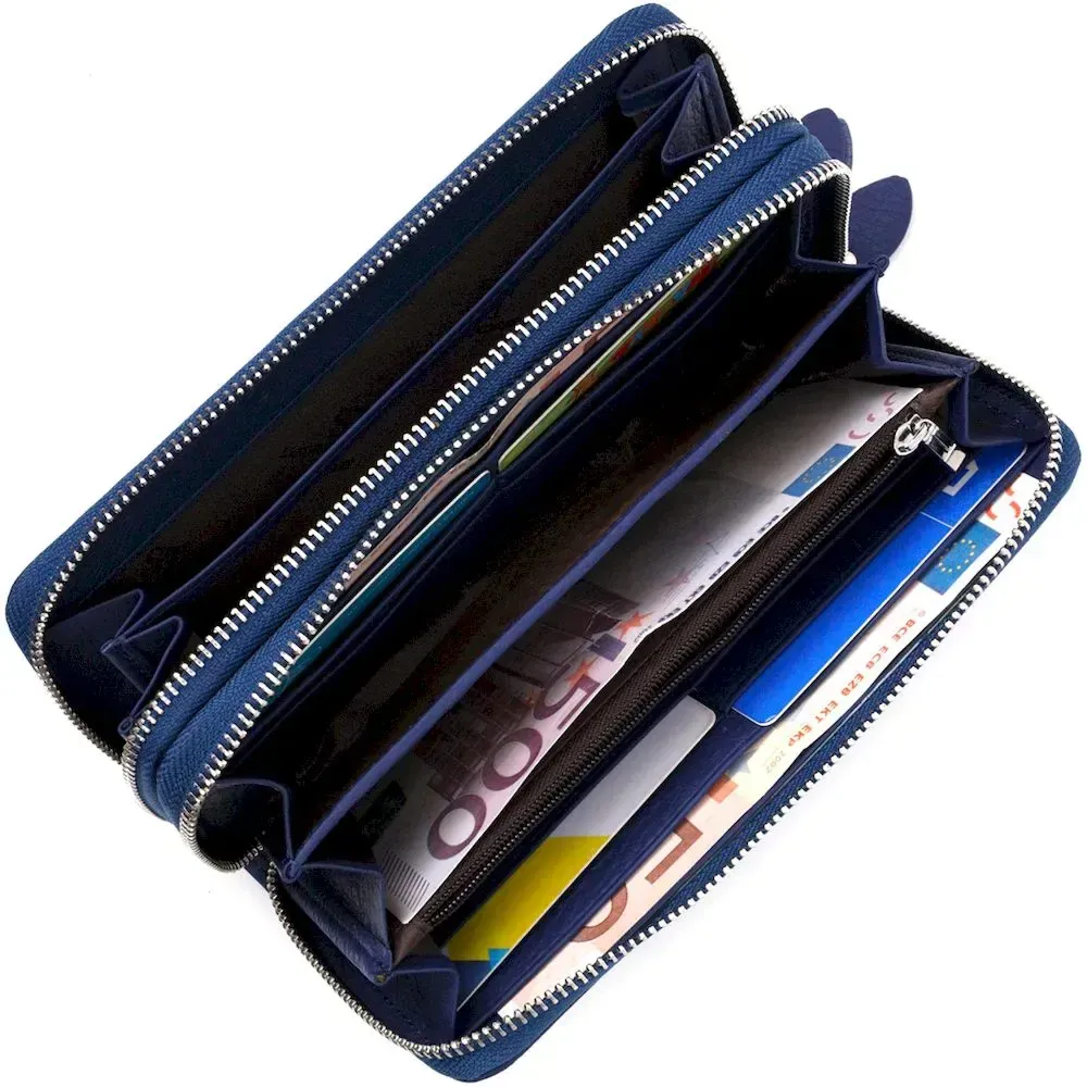 Місткий жіночий гаманець-клатч із двома відділеннями на блискавках ST Leather 19431 Синій