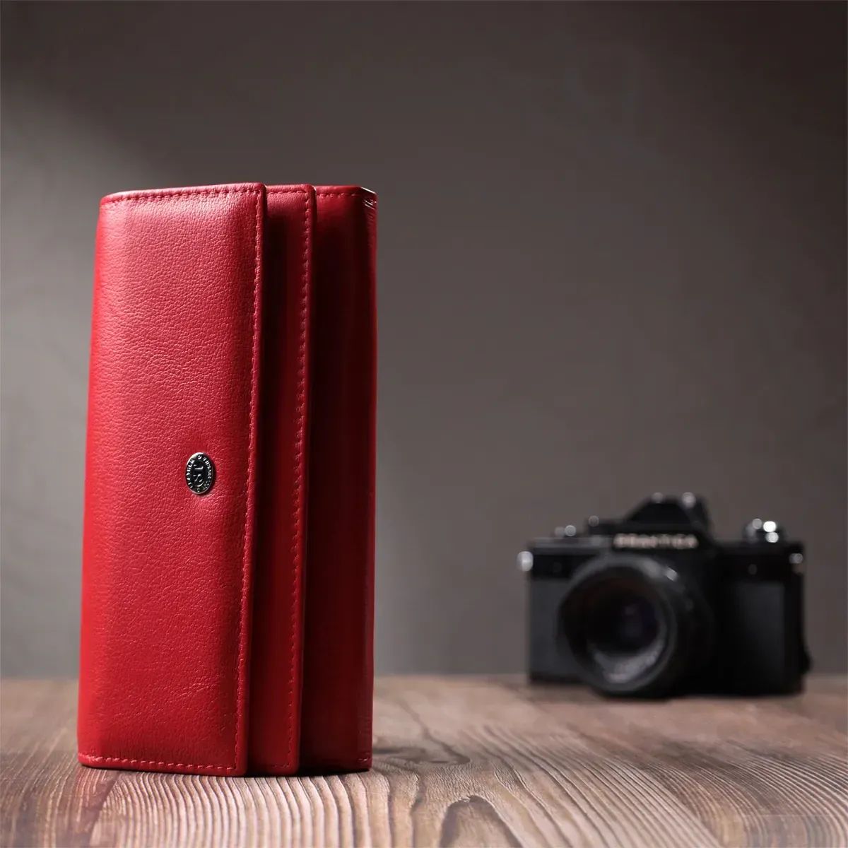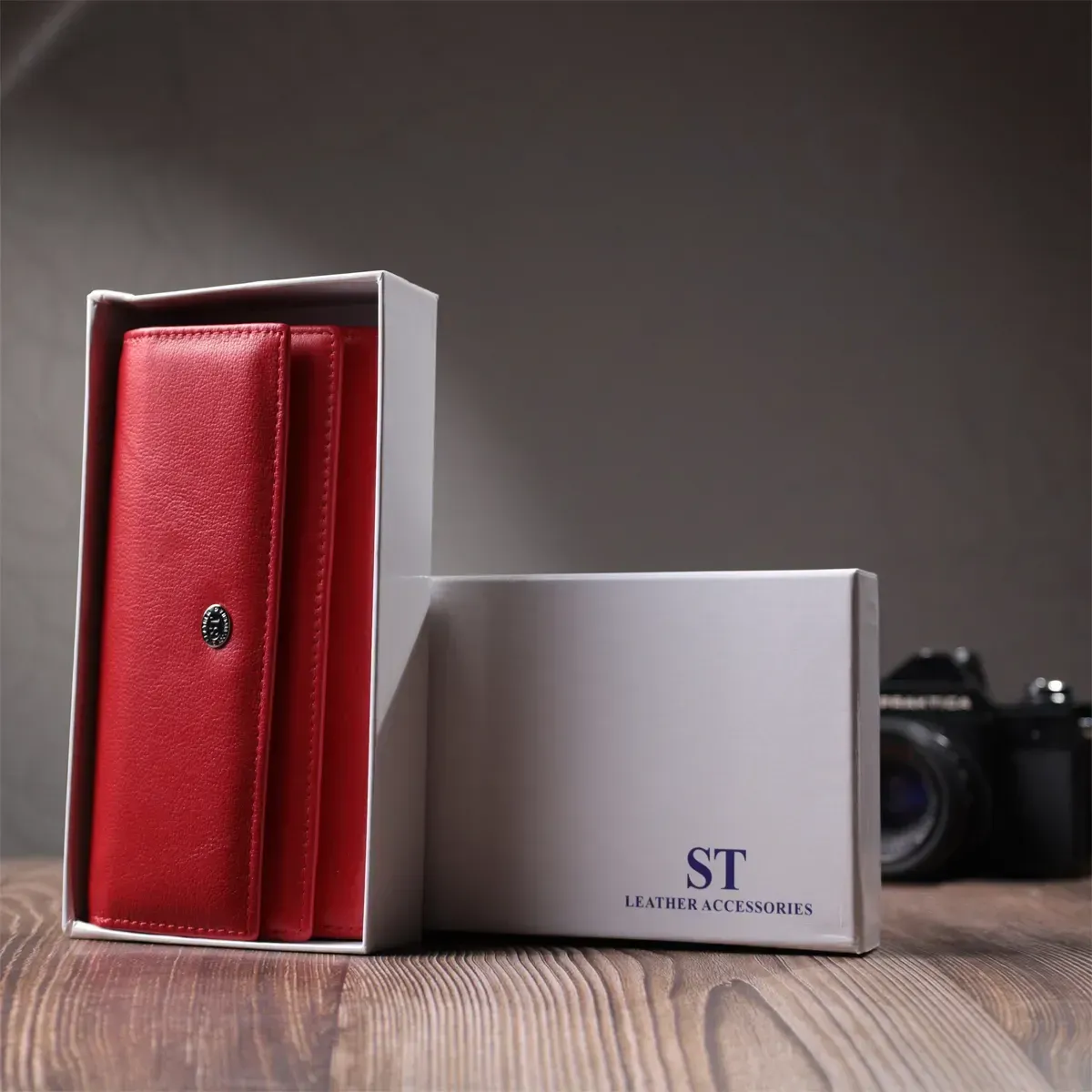Місткий жіночий гаманець із двома клапанами із натуральної шкіри ST Leather 22695 Червоний