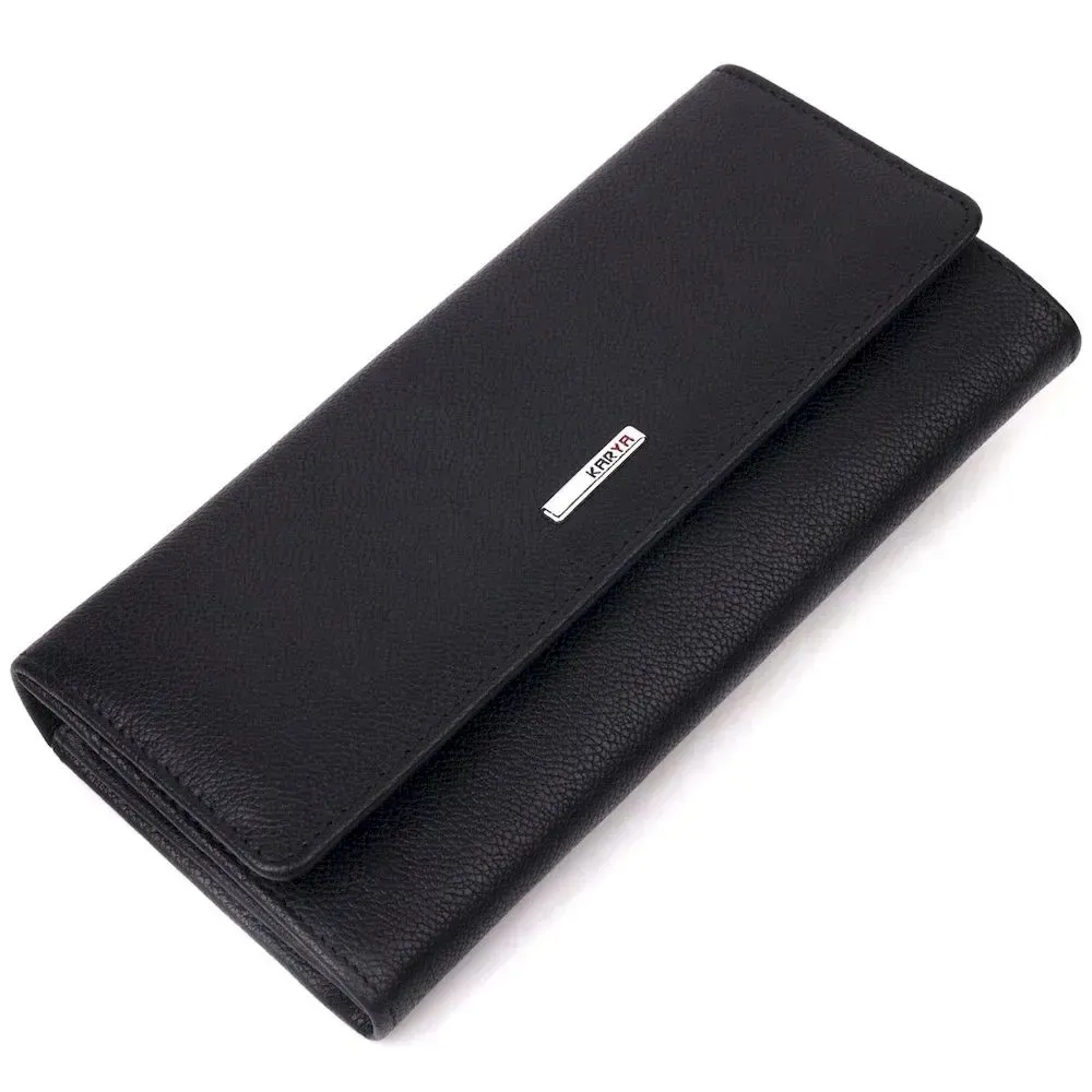 Місткий жіночий шкіряний гаманець у дві додавання KARYA 21336 Чорний