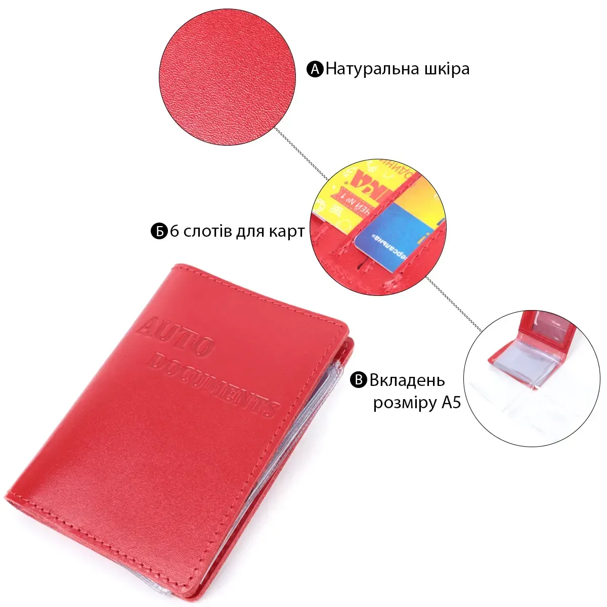 - два прозорі відділення для прав та техпаспорта;