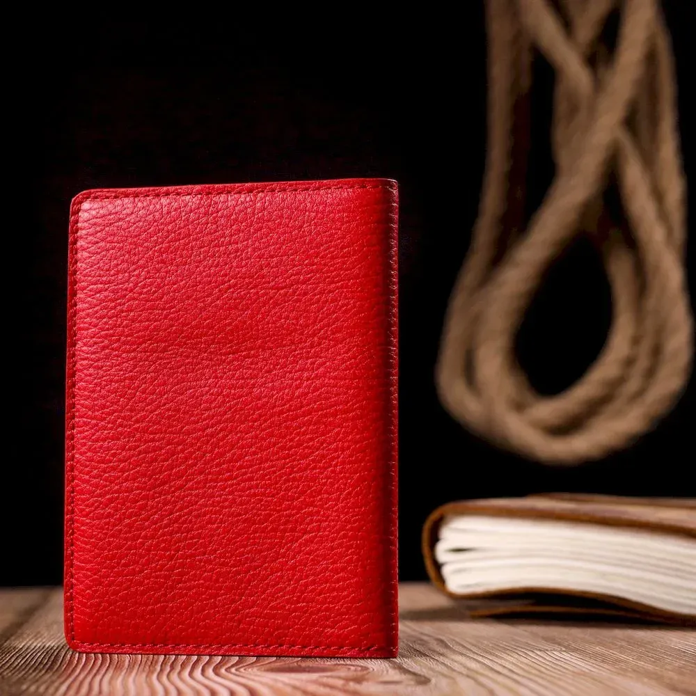 Яскрава жіноча обкладинка на паспорт, червоного кольору із високоякісної зернистої шкіри. Сучасний висококласний аксесуар, який стане ідеальним подарунком для близької людини з приводу. Обкладинка упакована у фірмову коробочку.