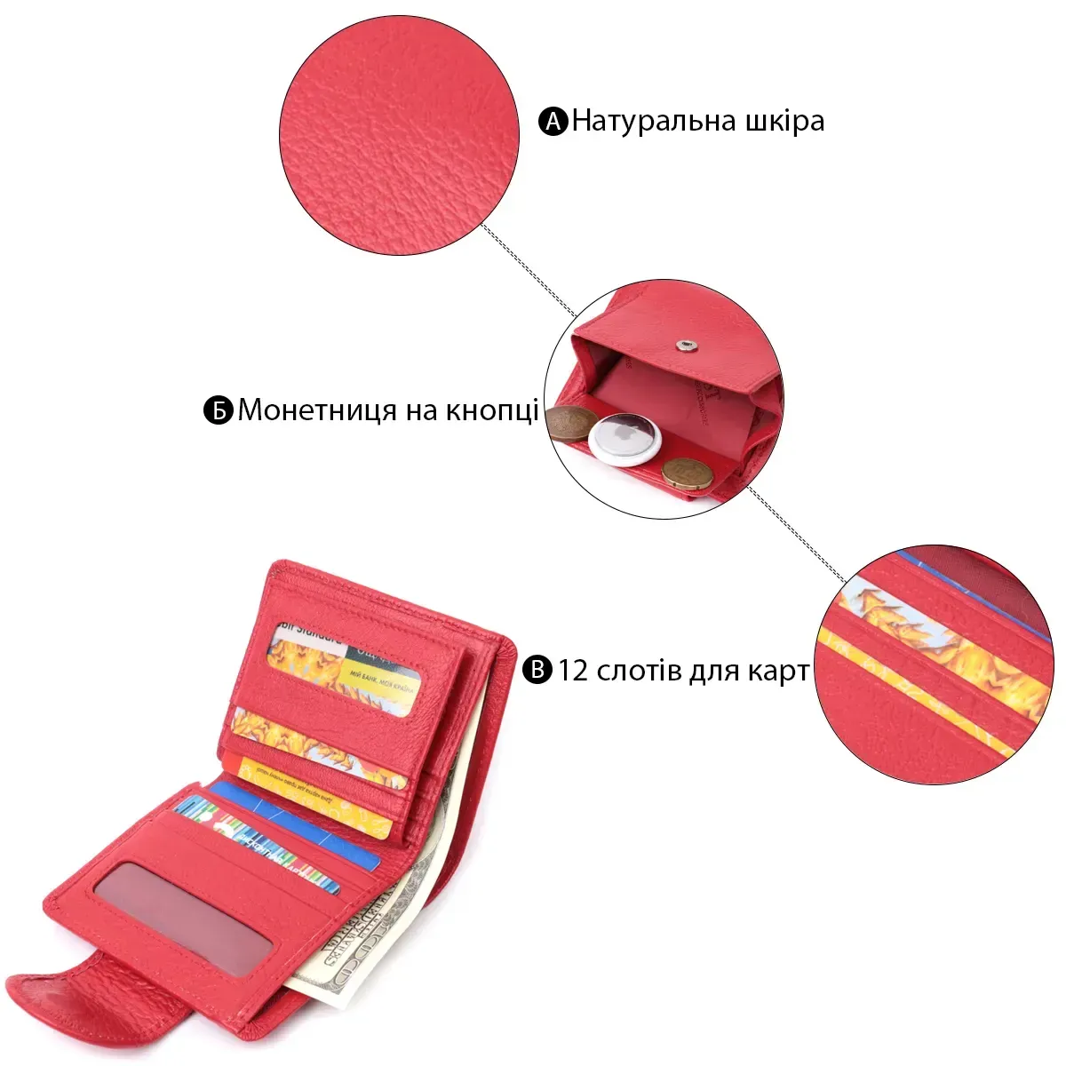 Яскравий гаманець для жінок із кишенею для монет із натуральної шкіри ST Leather 22726 Червоний