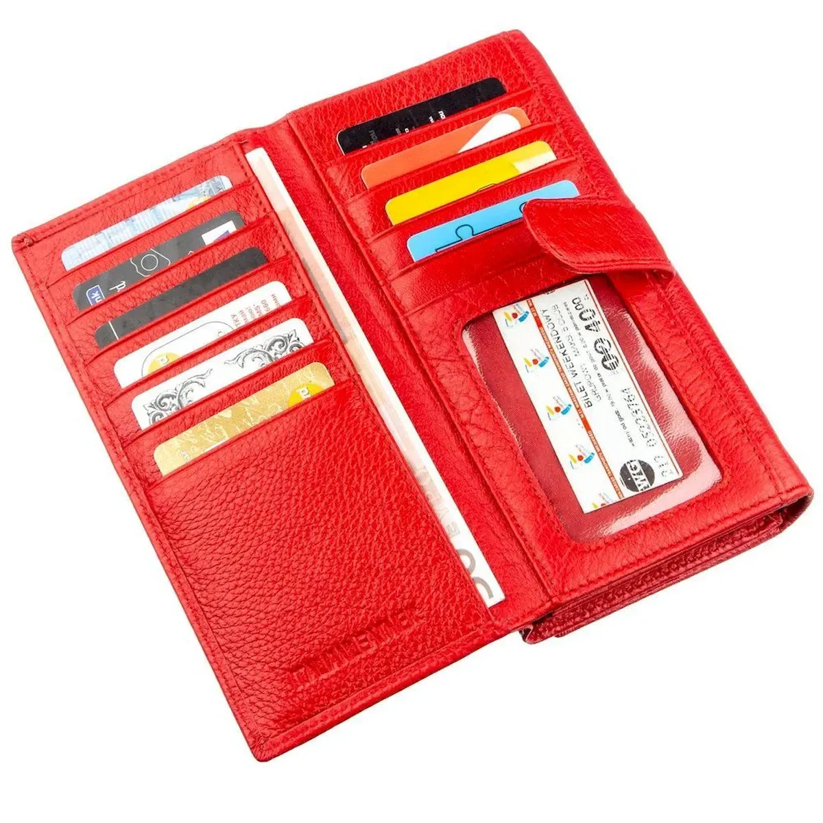 Чудовий яскравий жіночий гаманець з натуральної шкіри з відмінними характеристиками. Колір – яскраво-червоний із матовим відтінком. Підійде жінкам, які завжди хочуть бути в центрі уваги. Гаманець відрізняється своєю функціональністю та практичністю, має багато необхідних відділень та кишень, у які з легкістю помістяться купюри, монети, фото, картки та візитки. Слід зазначити, що монетниця закривається на зручну металеву клямку. На зовнішній стороні розташована візитниця на одинадцять кишень. Продається гаманець у щільній картонній білій коробці з логотипом виробника.