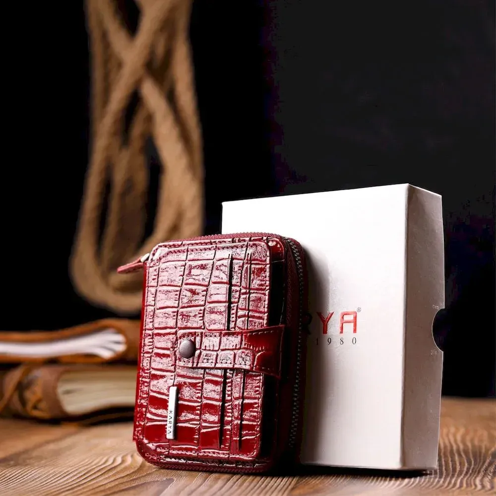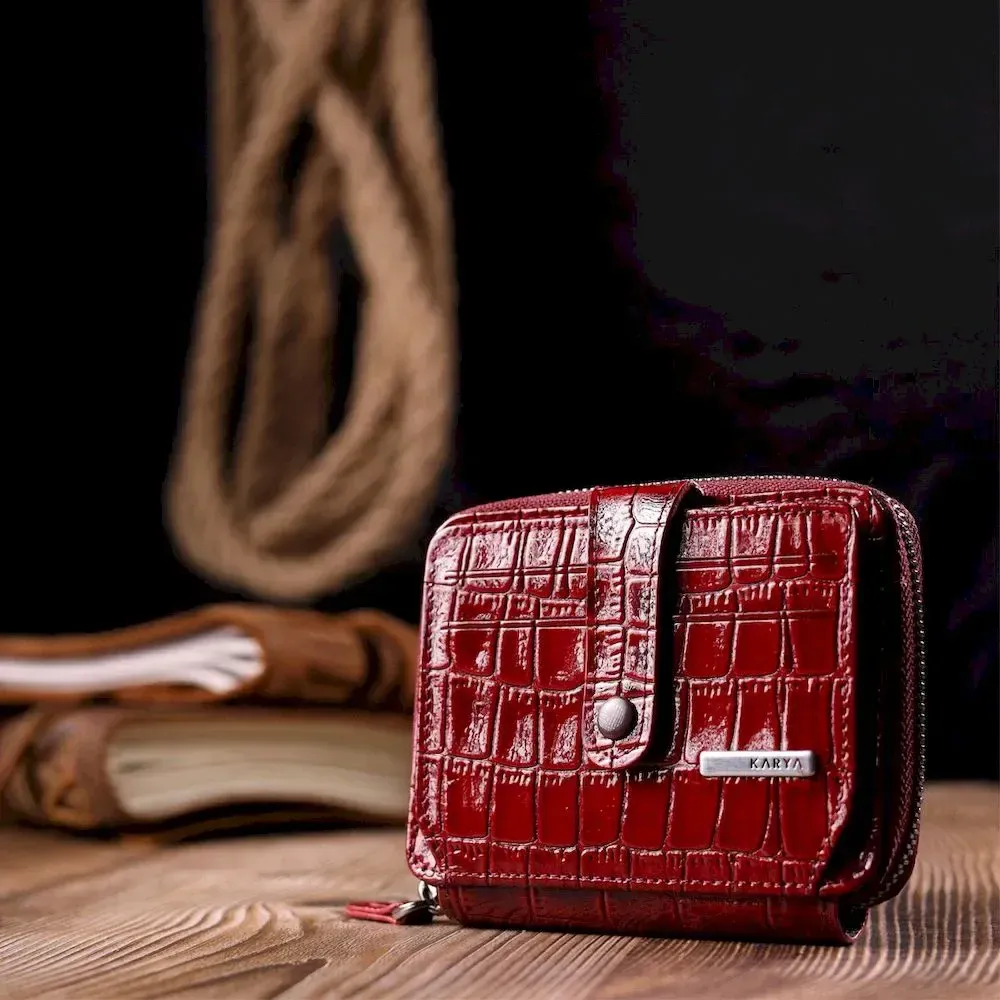 Яскравий гаманець із натуральної фактурної шкіри під крокодила KARYA 20970 Бордовий