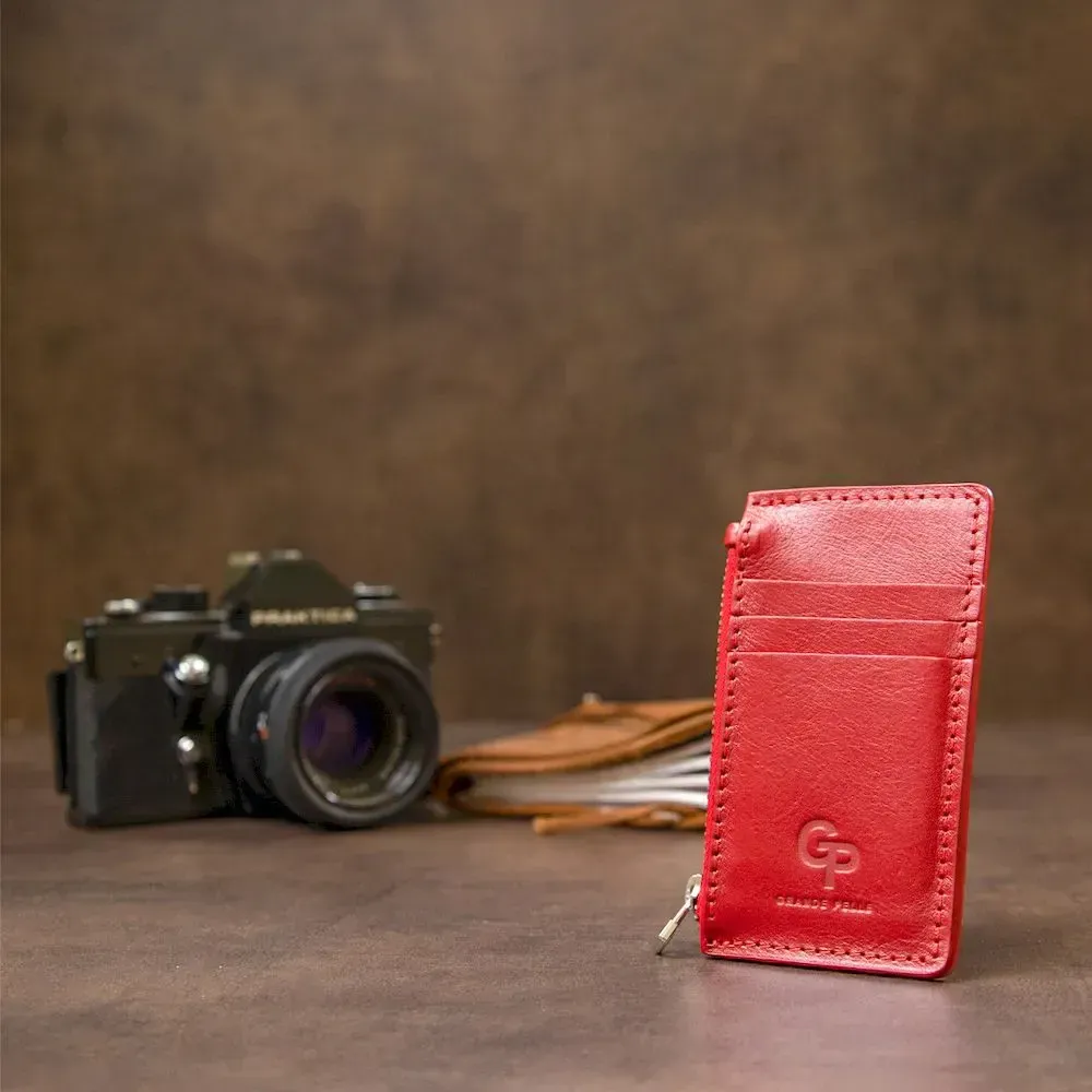 Яскравий шкіряний картхолдер GRANDE PELLE 11497 Червоний