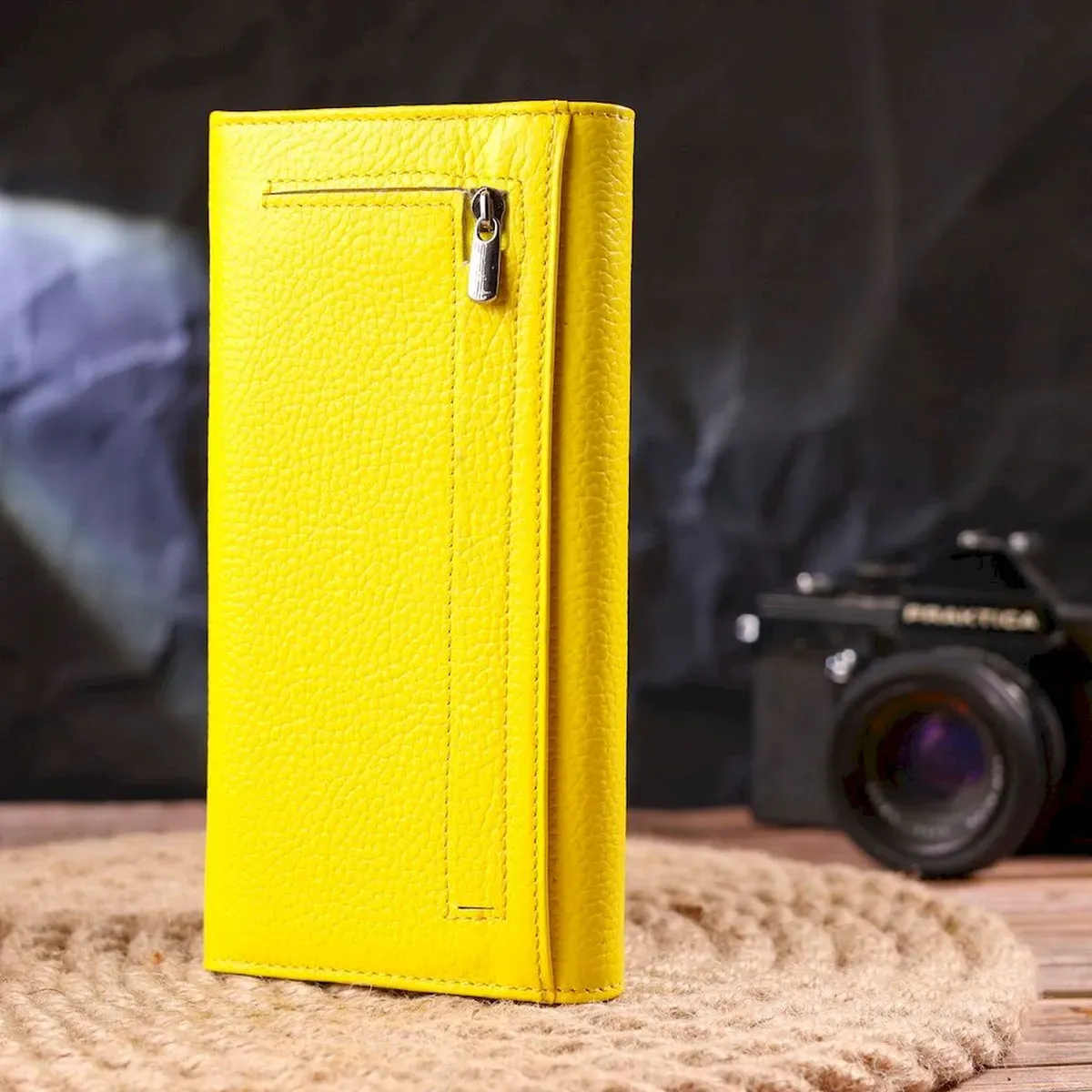 Яскравий молодіжний гаманець із натуральної шкіри флотар CANPELLINI 21612 Лимонний