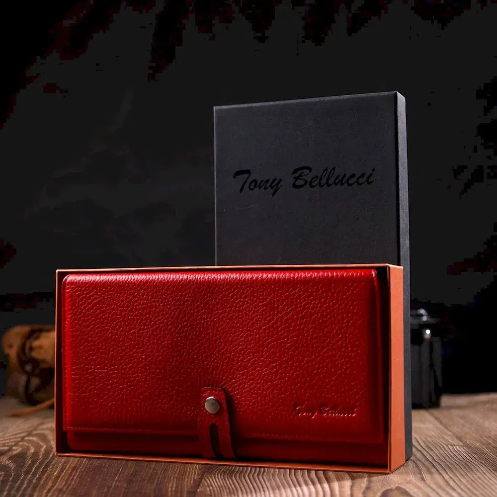 Яскравий жіночий клатч з двома блоками для кредитних карток з натуральної шкіри Tony Bellucci 21985 Червоний