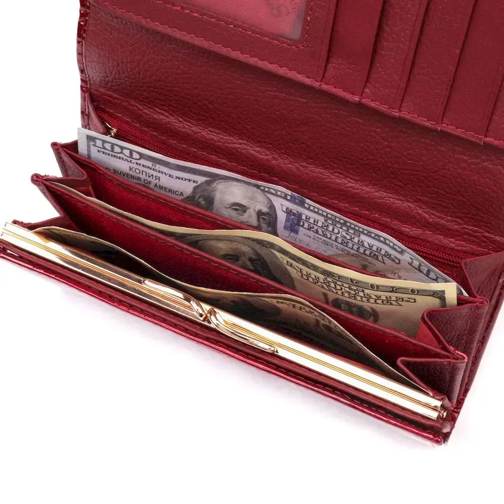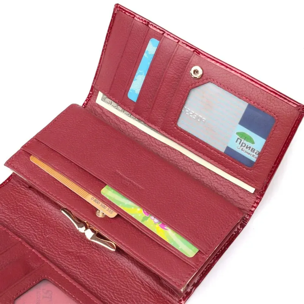 Яскравий жіночий гаманець із лакованої шкіри з візитницею ST Leather 19405 Червоний