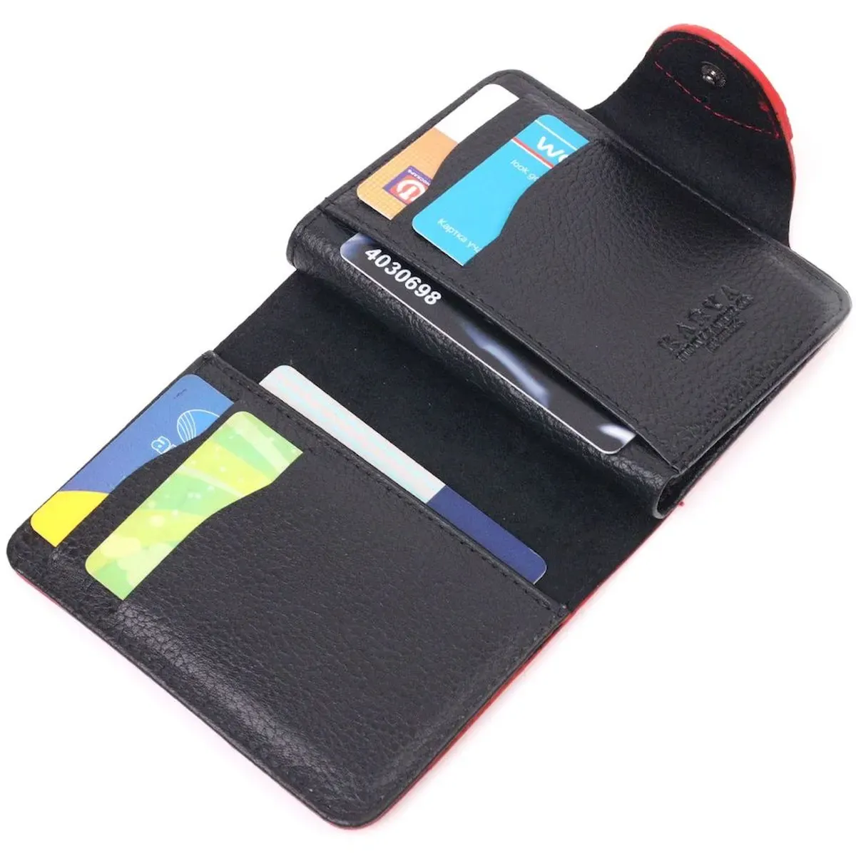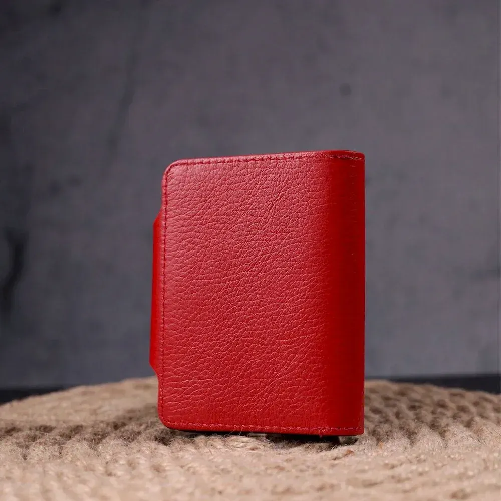 Оригінальний жіночий гаманець з натуральної шкіри в червоному кольорі. Складається аксесуар навпіл, з фіксацією на хлястик та кнопку. Якісна фурнітура доповнює та прикрашає виріб. Такий гаманець з натуральної шкіри - це ідеальний варіант на кожен день для тих, хто цінує якість, зручність та комфорт, а також чудово доповнюватиме Ваш повсякденний образ.