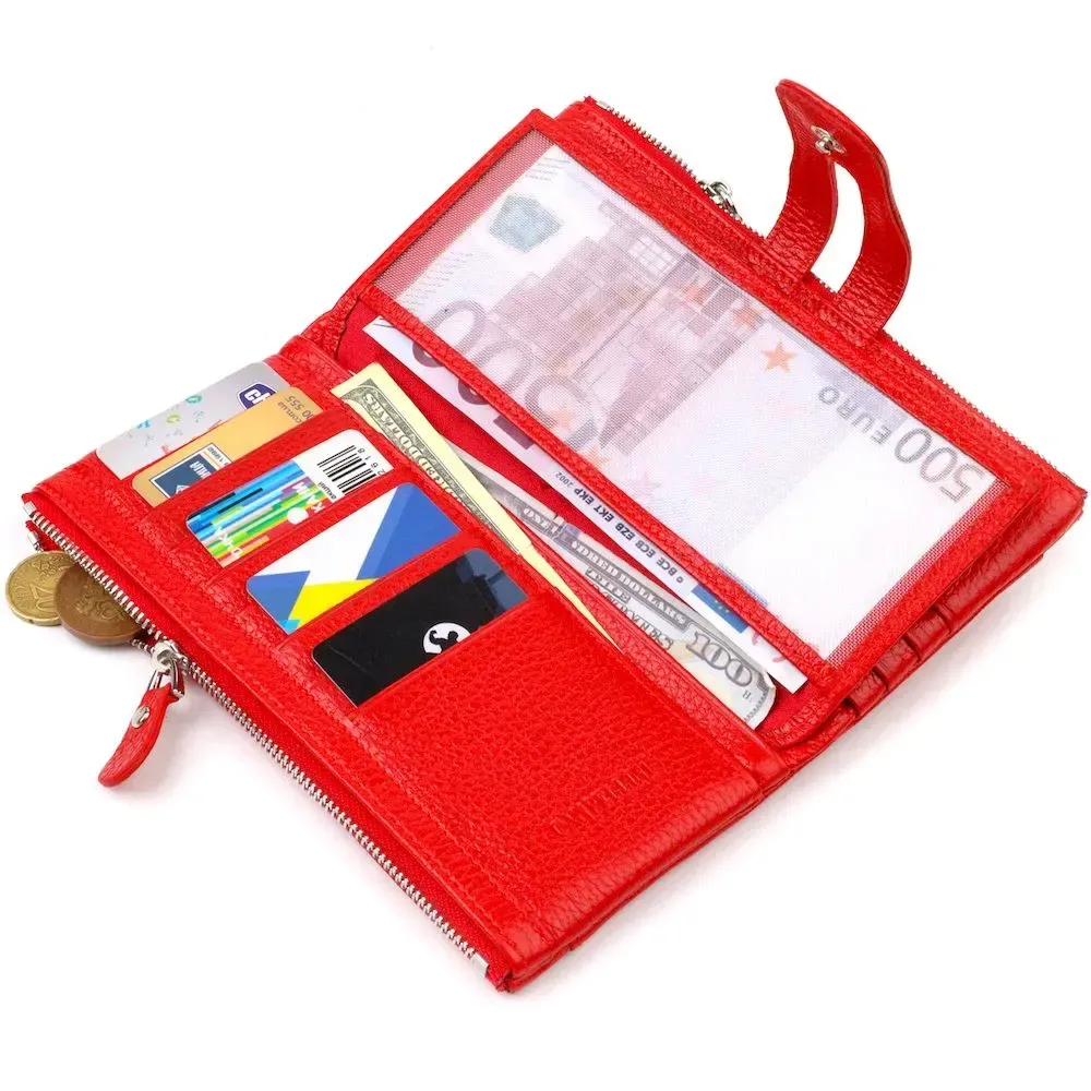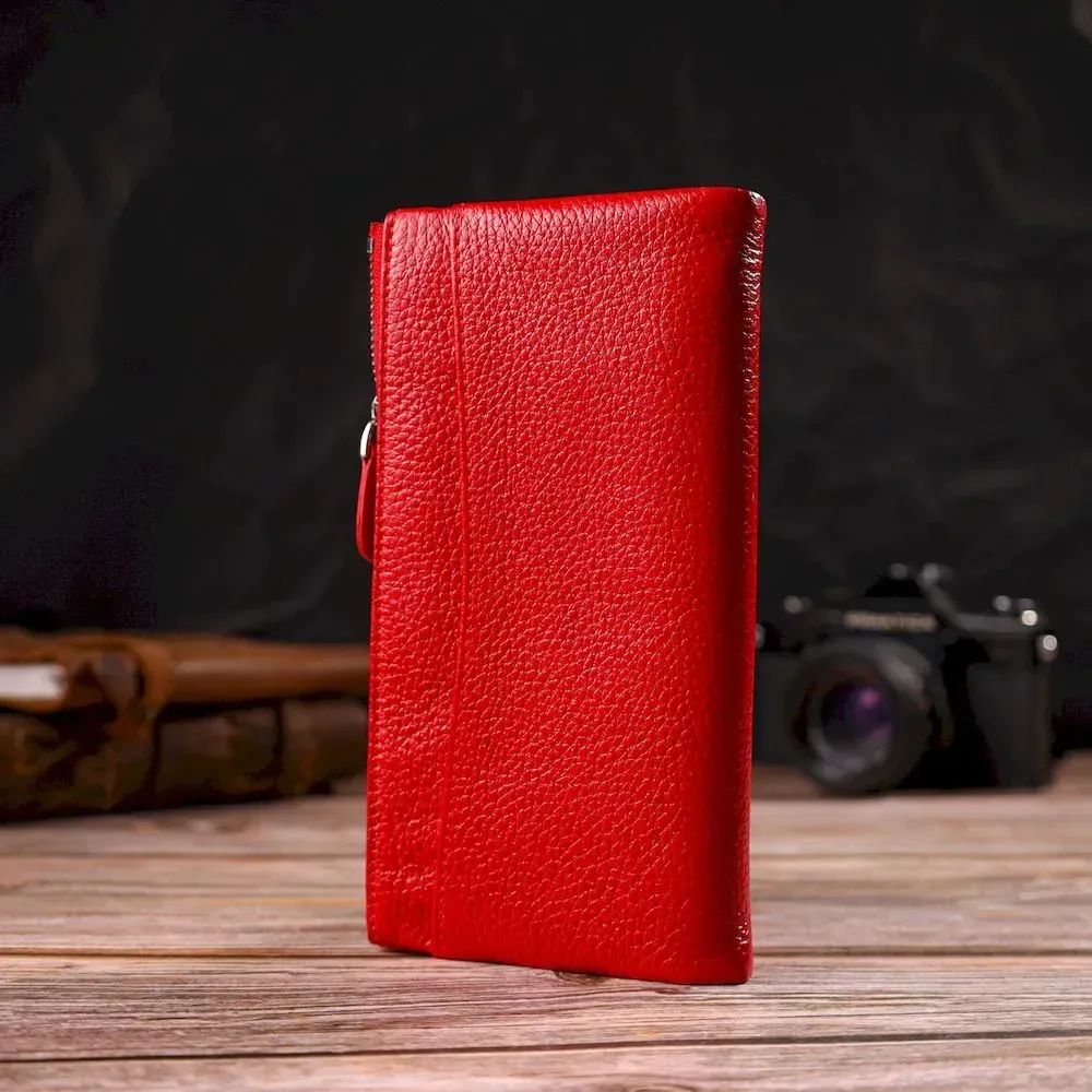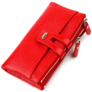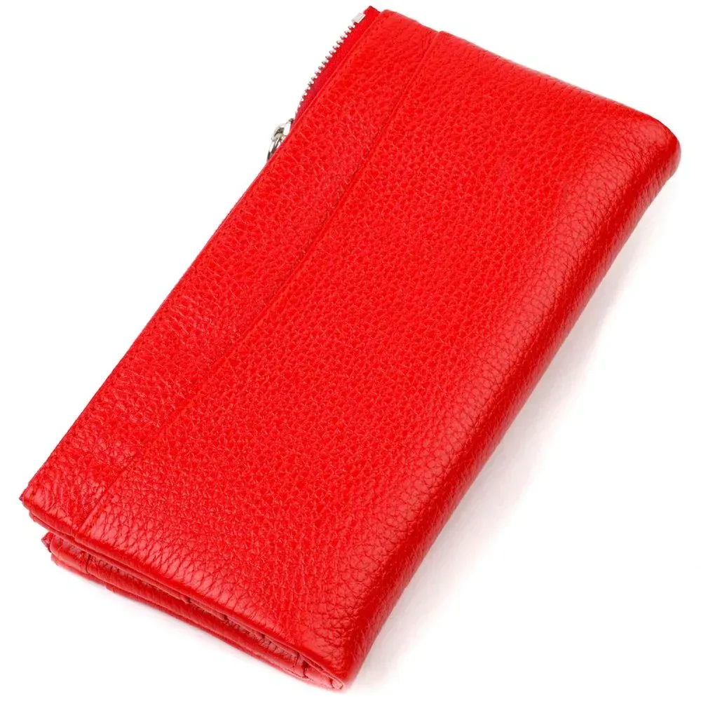 Яскравий жіночий гаманець із зручним функціоналом із натуральної шкіри CANPELLINI 21895 Червоний