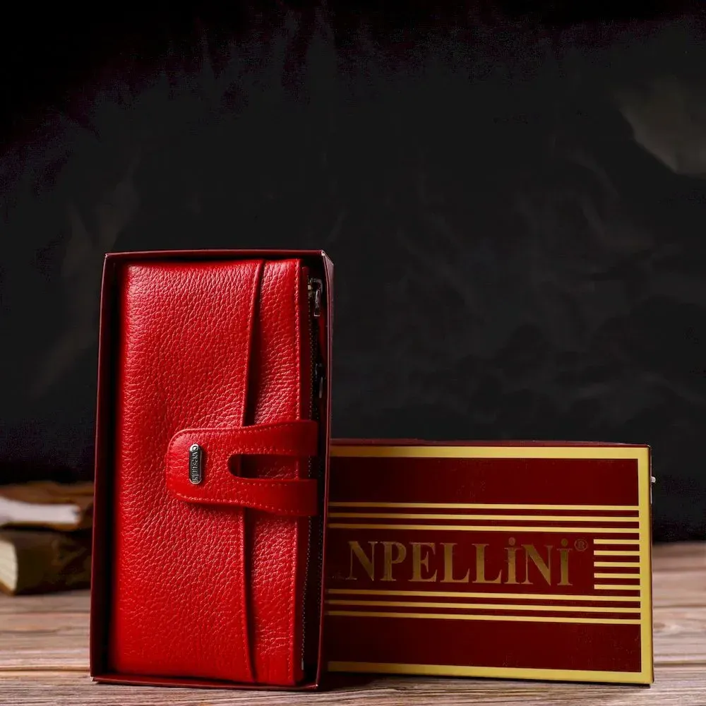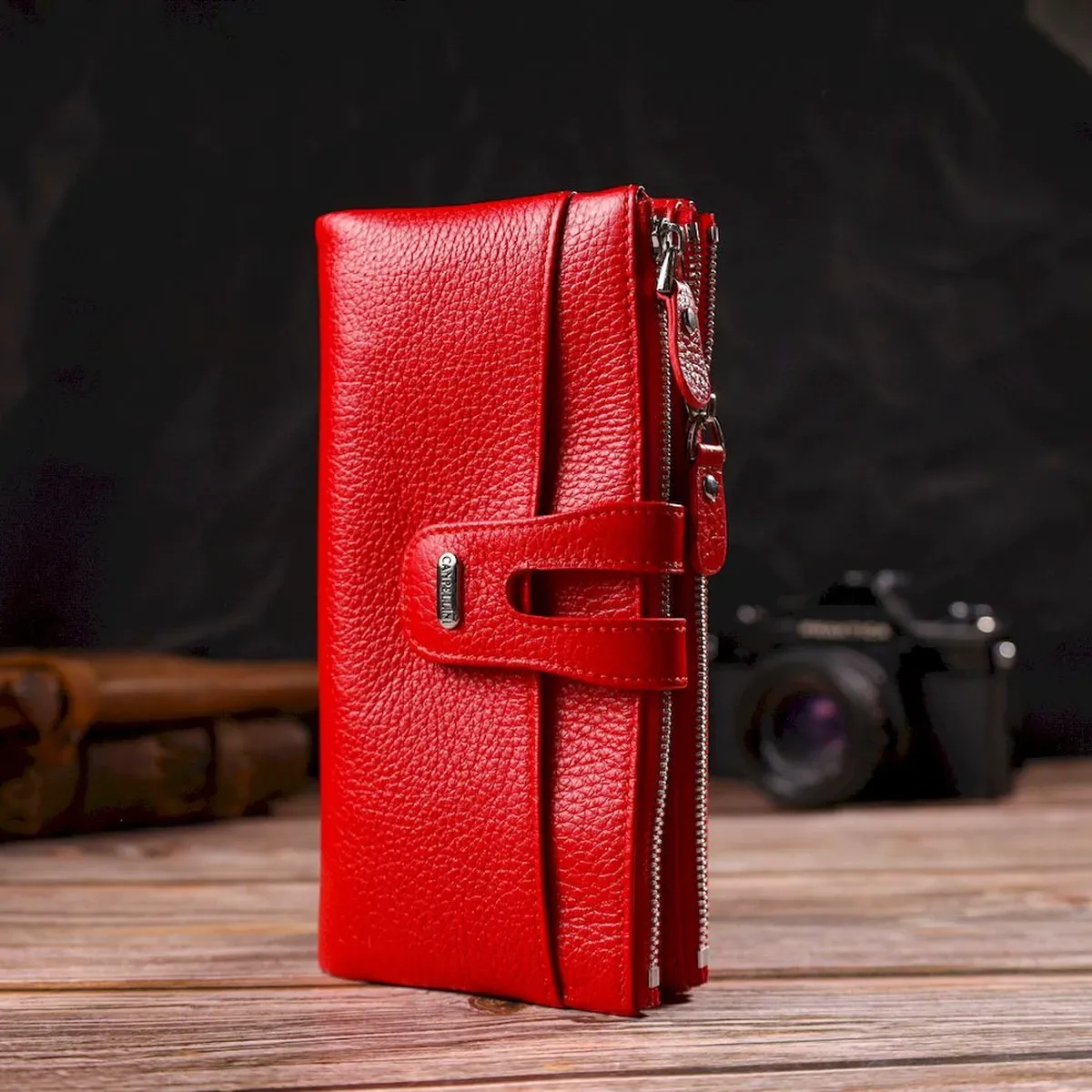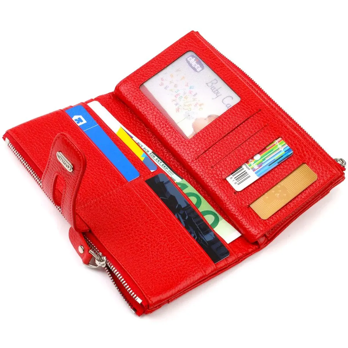 Яскравий жіночий гаманець із зручним функціоналом із натуральної шкіри CANPELLINI 21895 Червоний