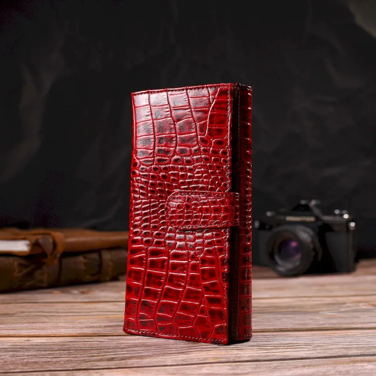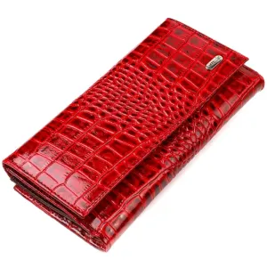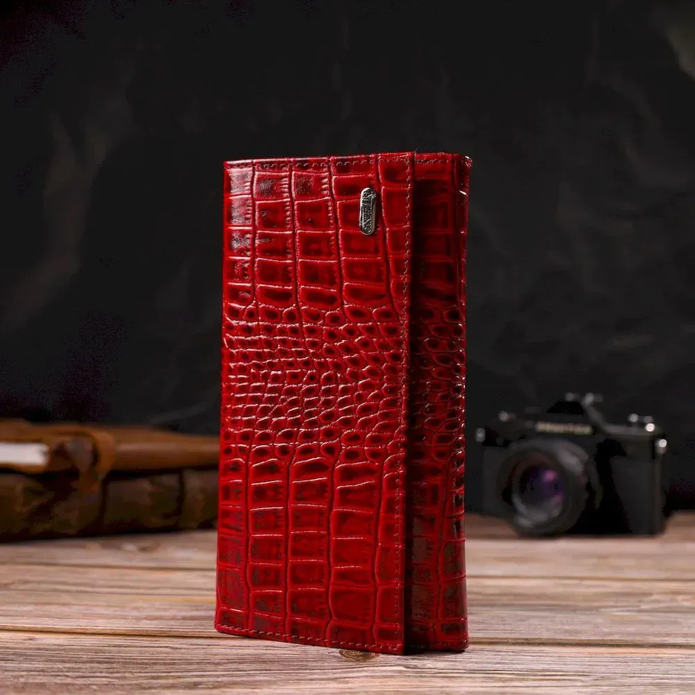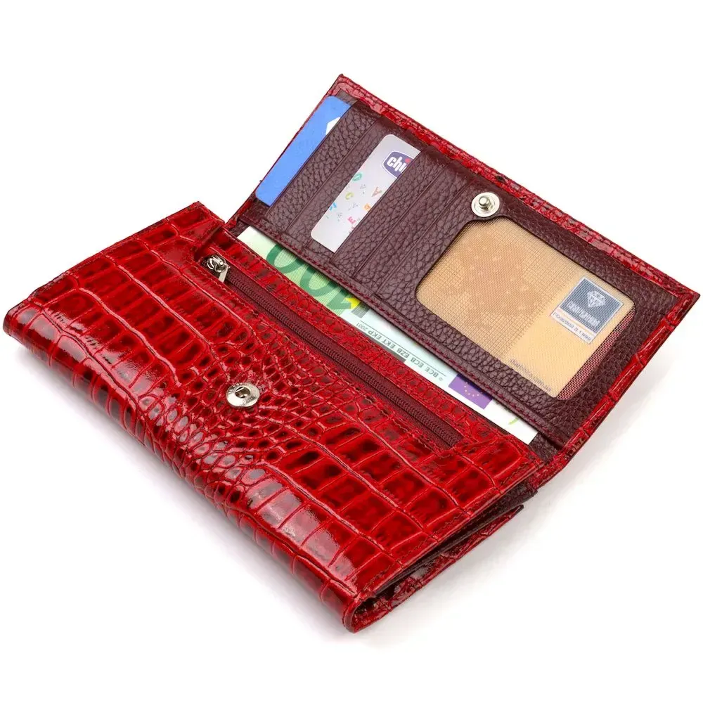 Яскраве жіноче портмоне з натуральної шкіри з тисненням під крокодила CANPELLINI 21852 Червоний