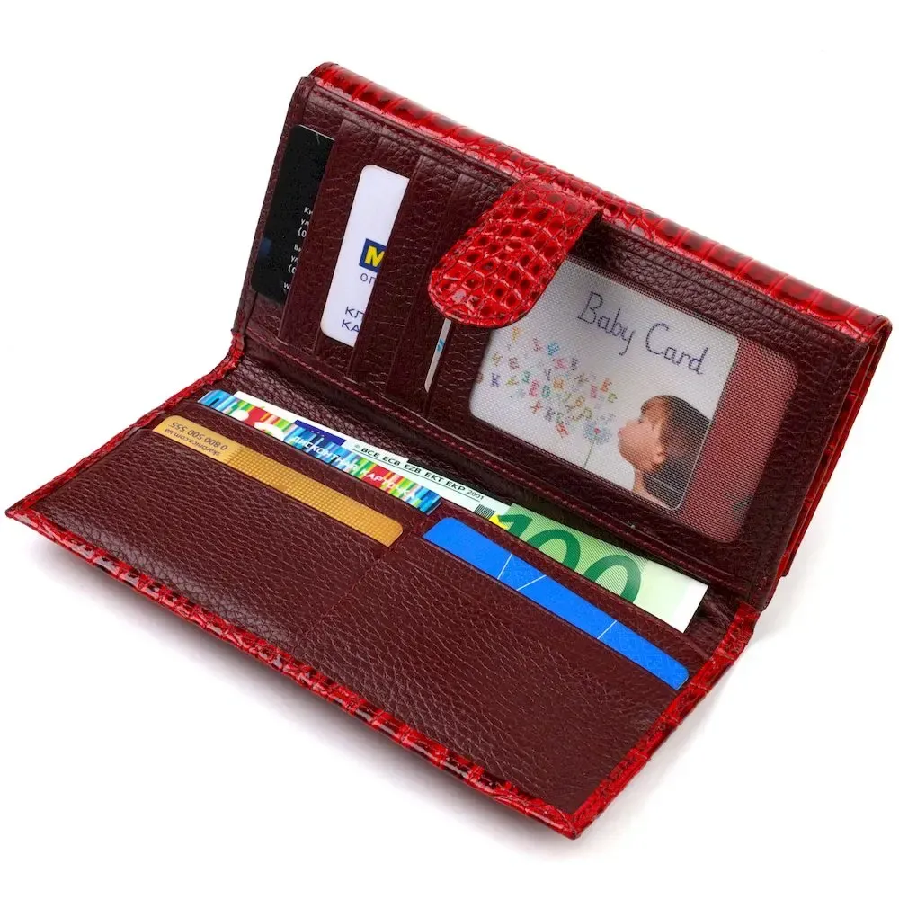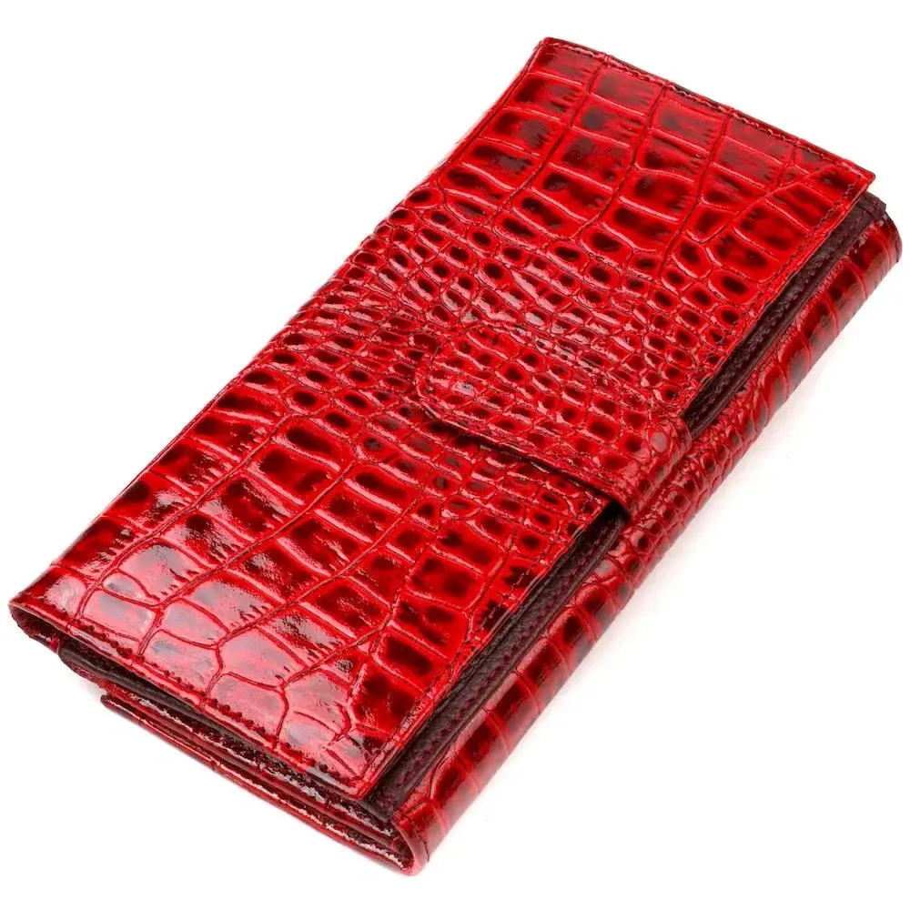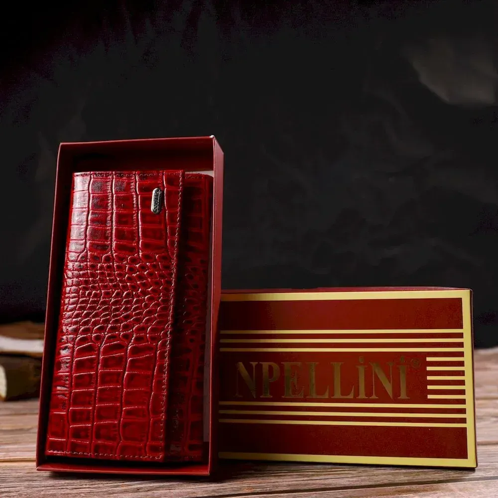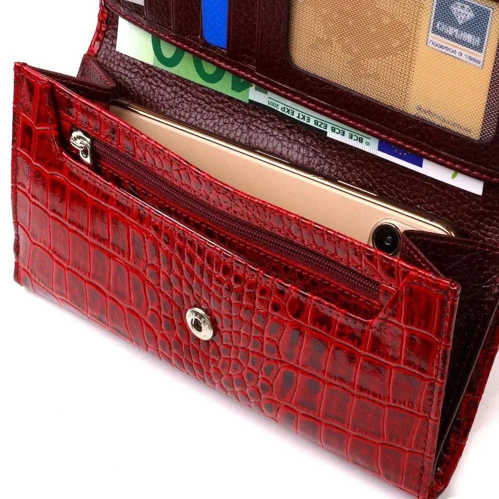 Яскраве жіноче портмоне з натуральної шкіри з тисненням під крокодила CANPELLINI 21852 Червоний