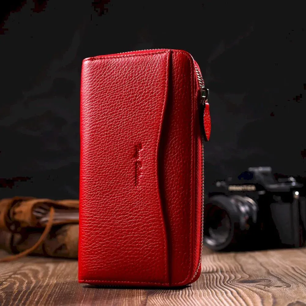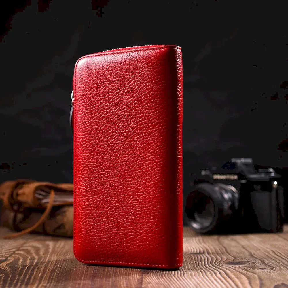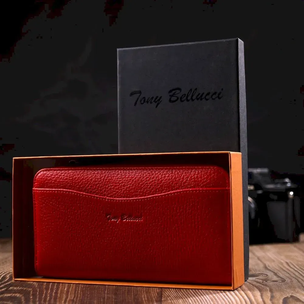 Яскраве жіноче портмоне на блискавці з натуральної шкіри Tony Bellucci 21972 Червоний