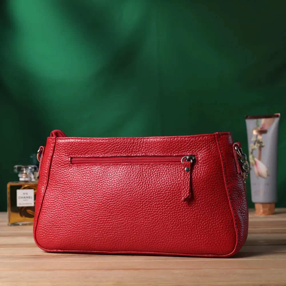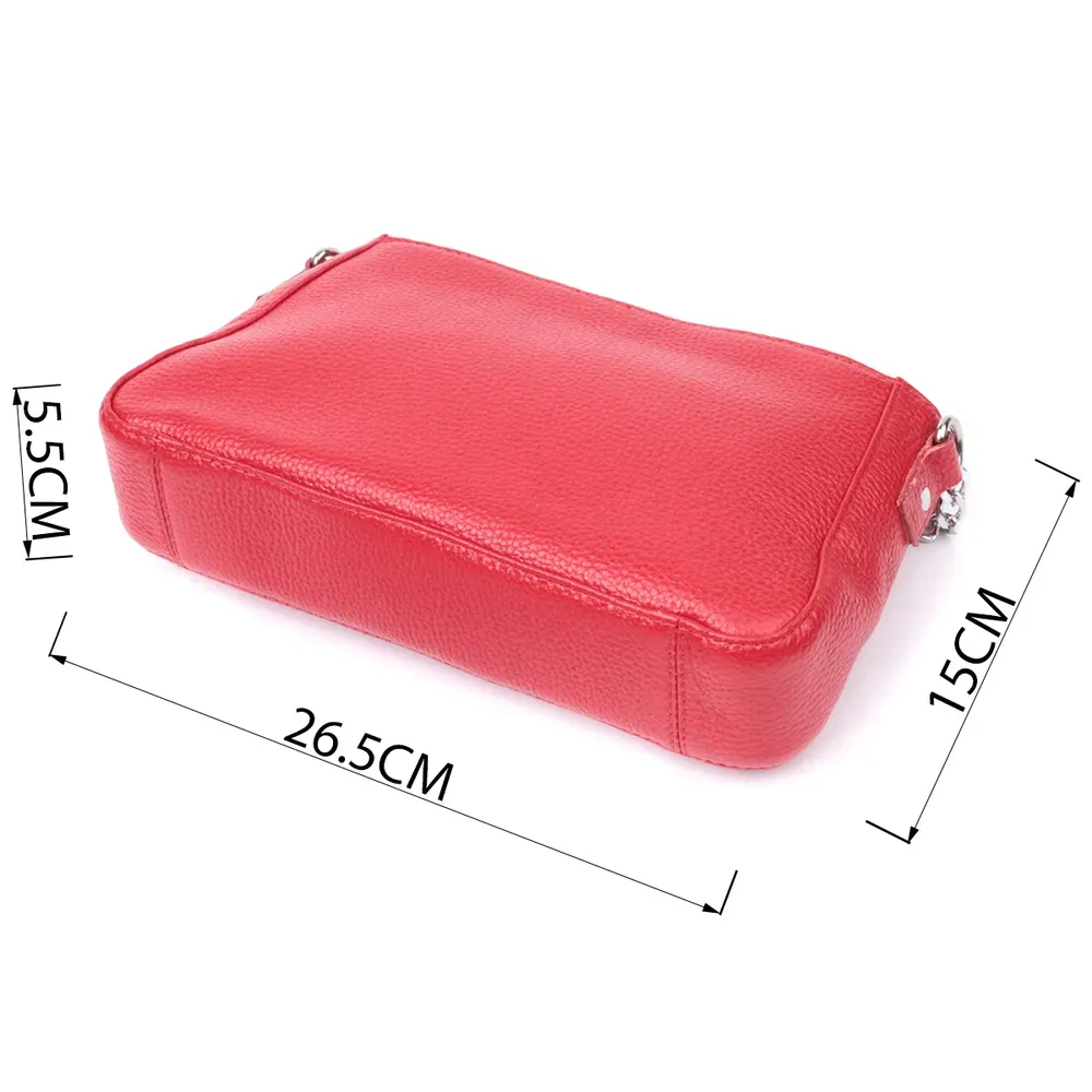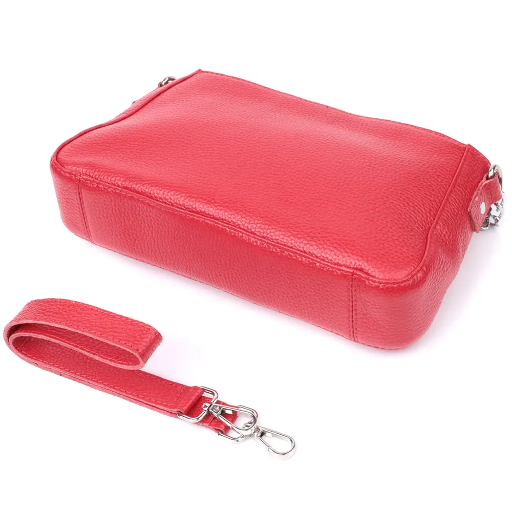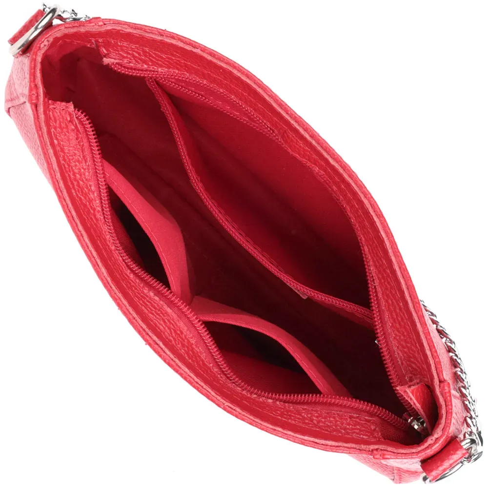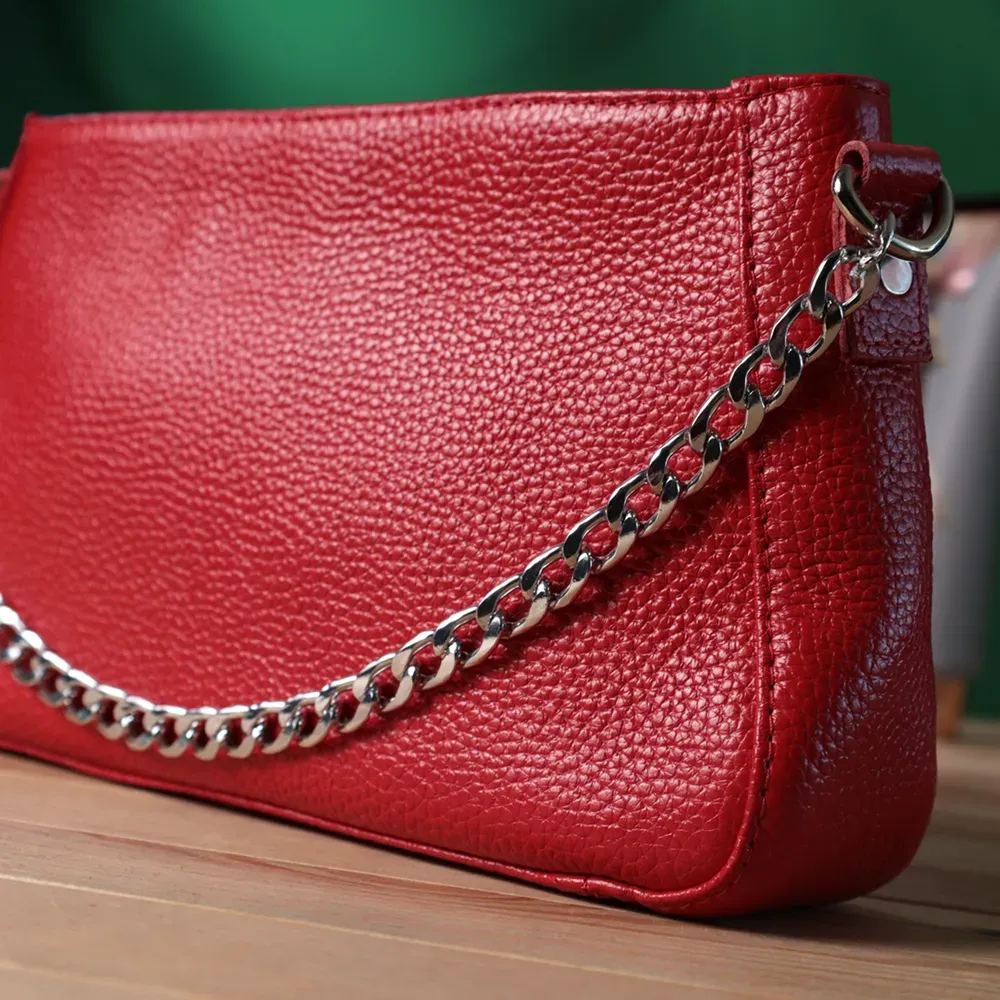 Яскрава сумка багет з ланцюжком і знімним ремінцем з натуральної шкіри Shvigel 22836 Червона