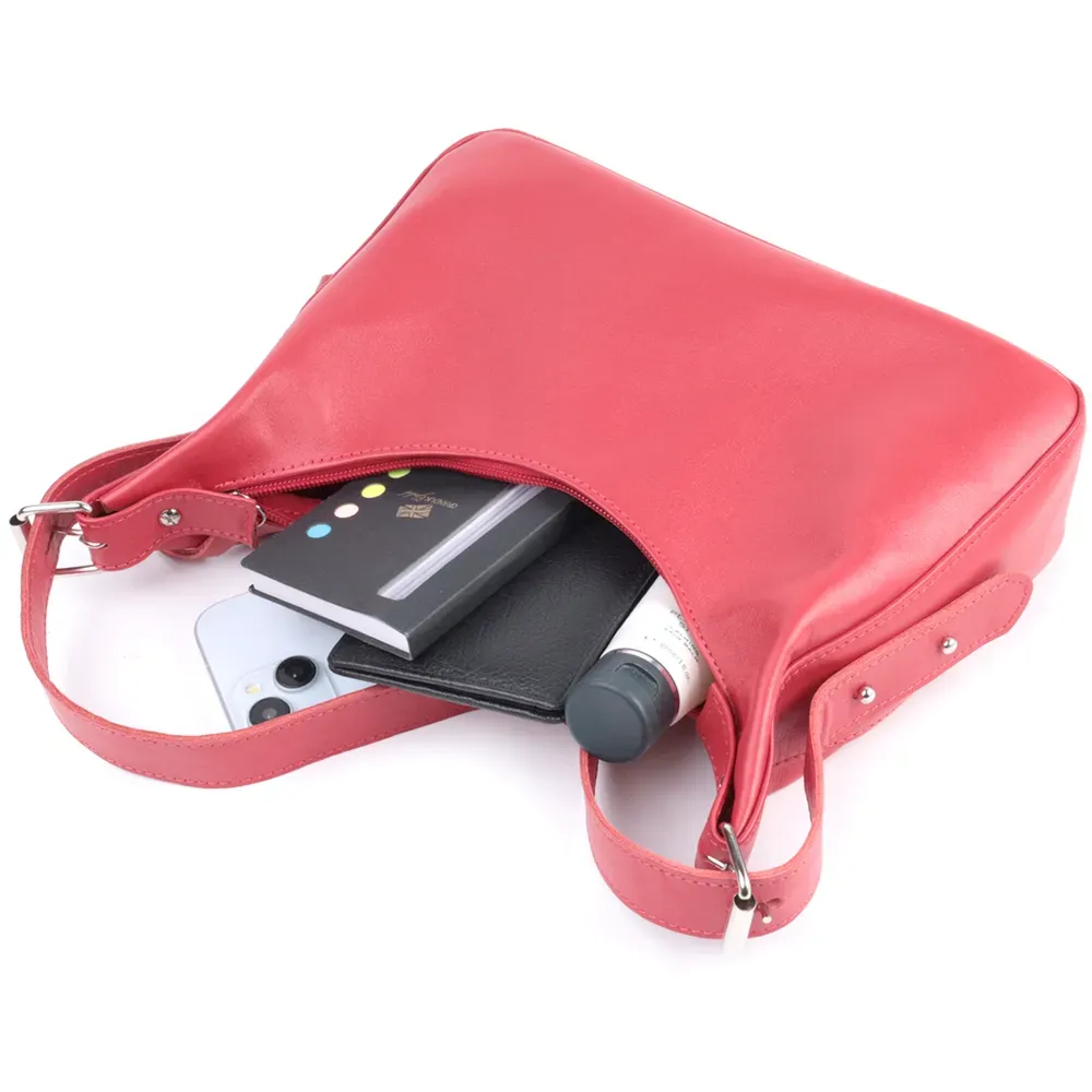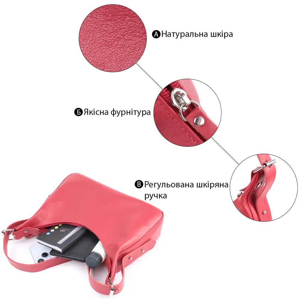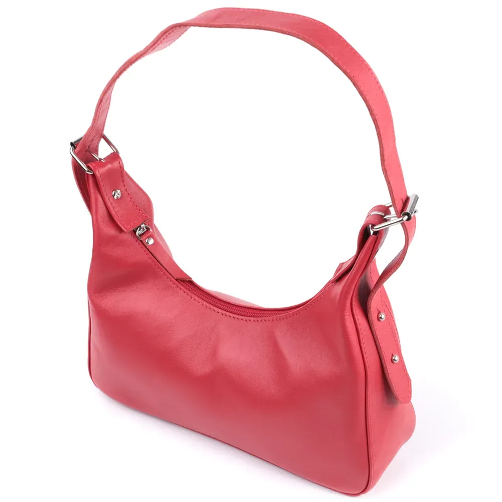 Яскрава сумка багет з регульованим ременем з гладкої натуральної шкіри Shvigel 22832 Червона