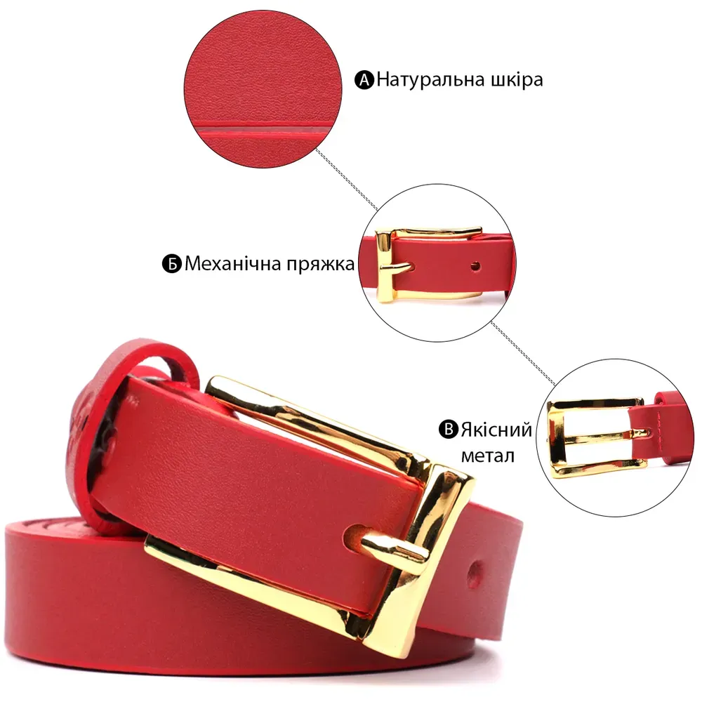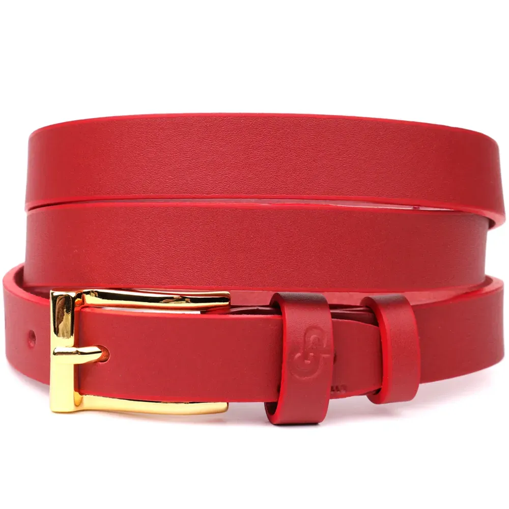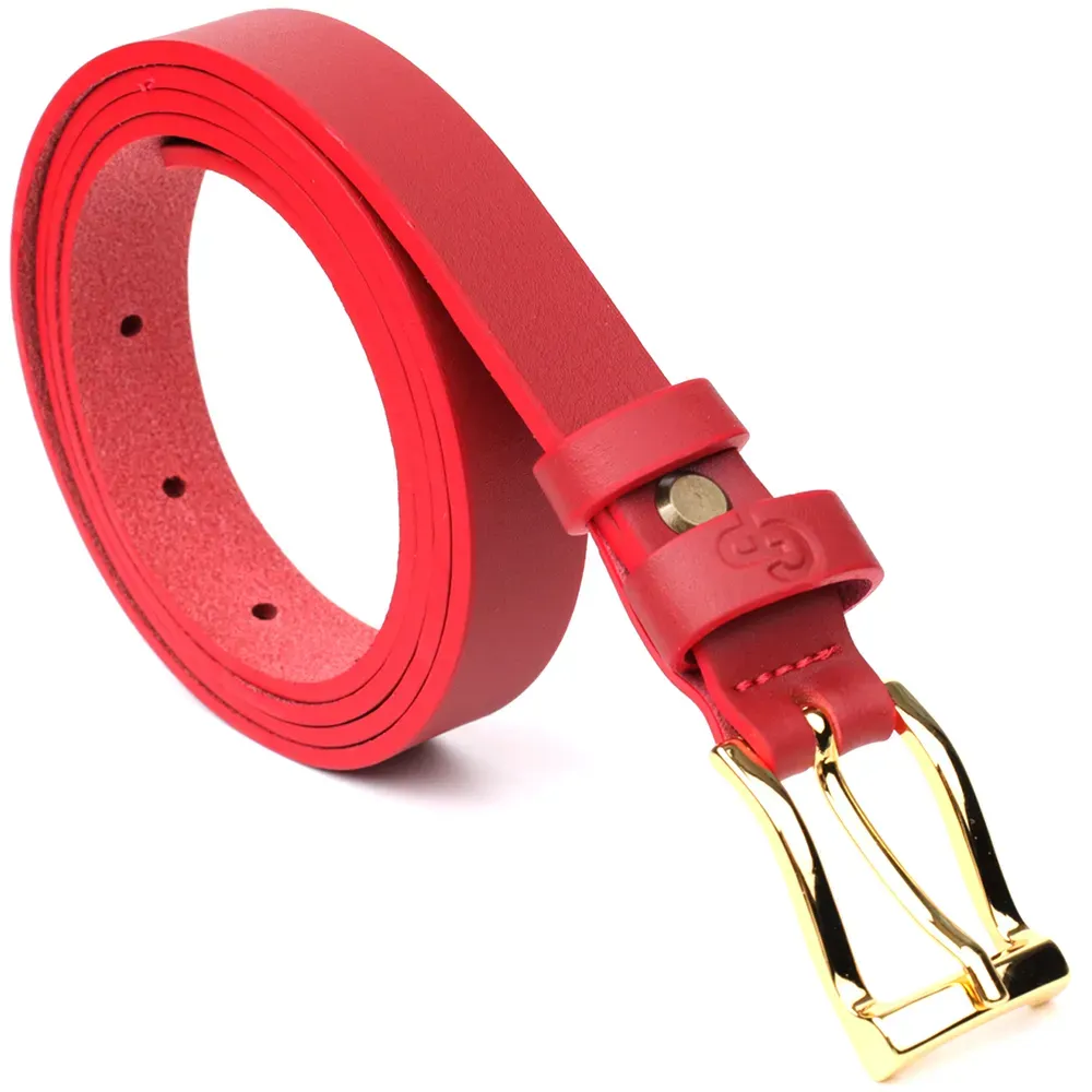 Яскравий тонкий шкіряний ремінь для жінок GRANDE PELLE 22951 Червоний