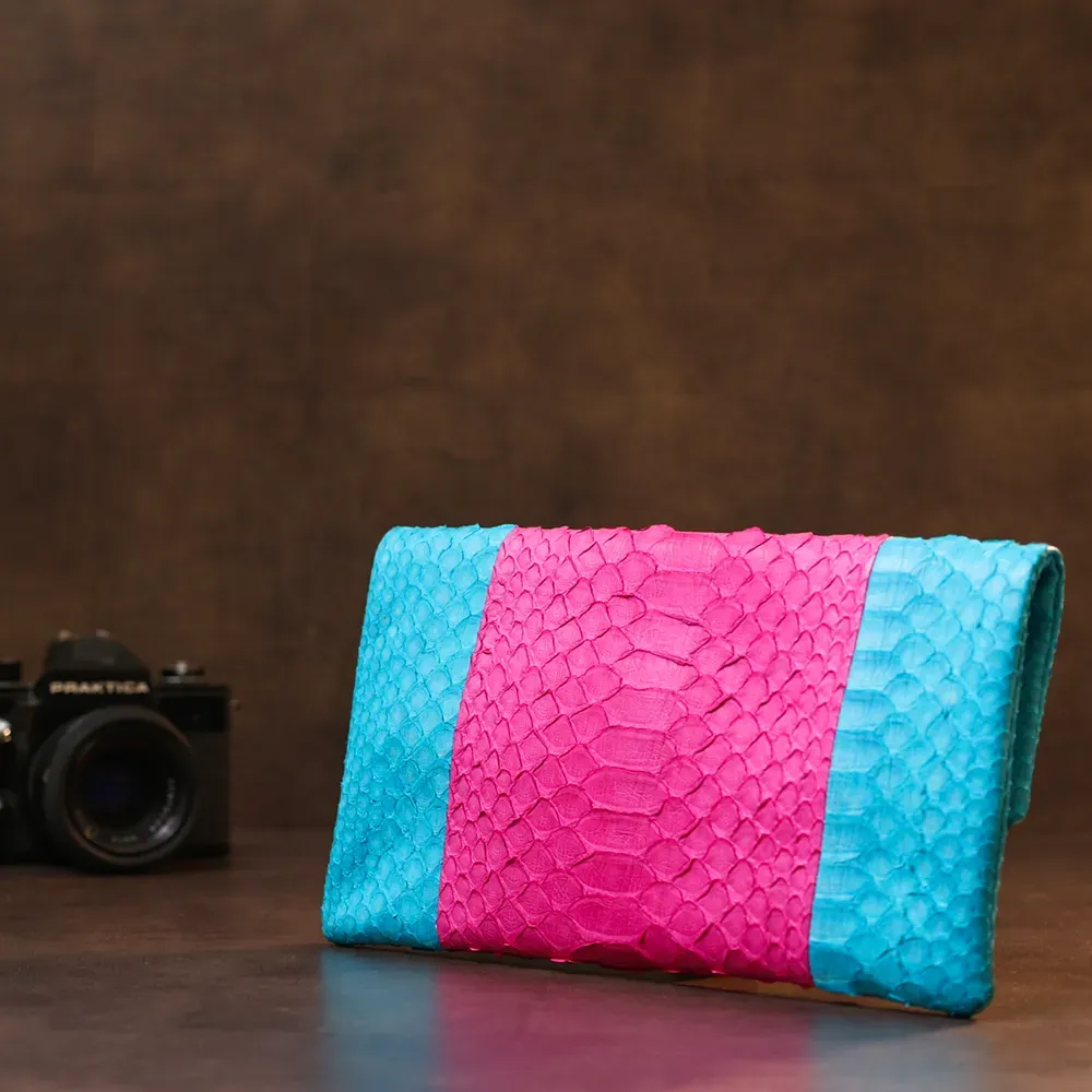 Яскравий жіночий клатч Snake Leather 14993 Рожевий