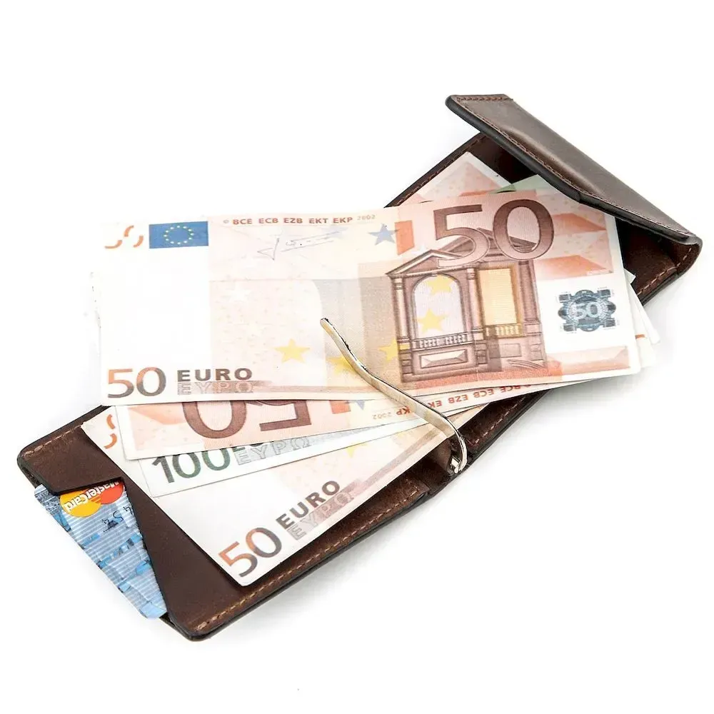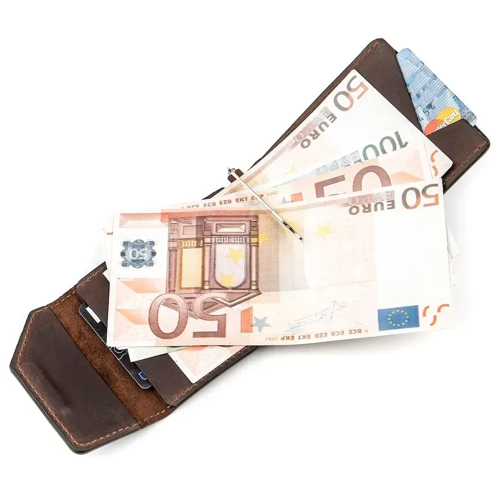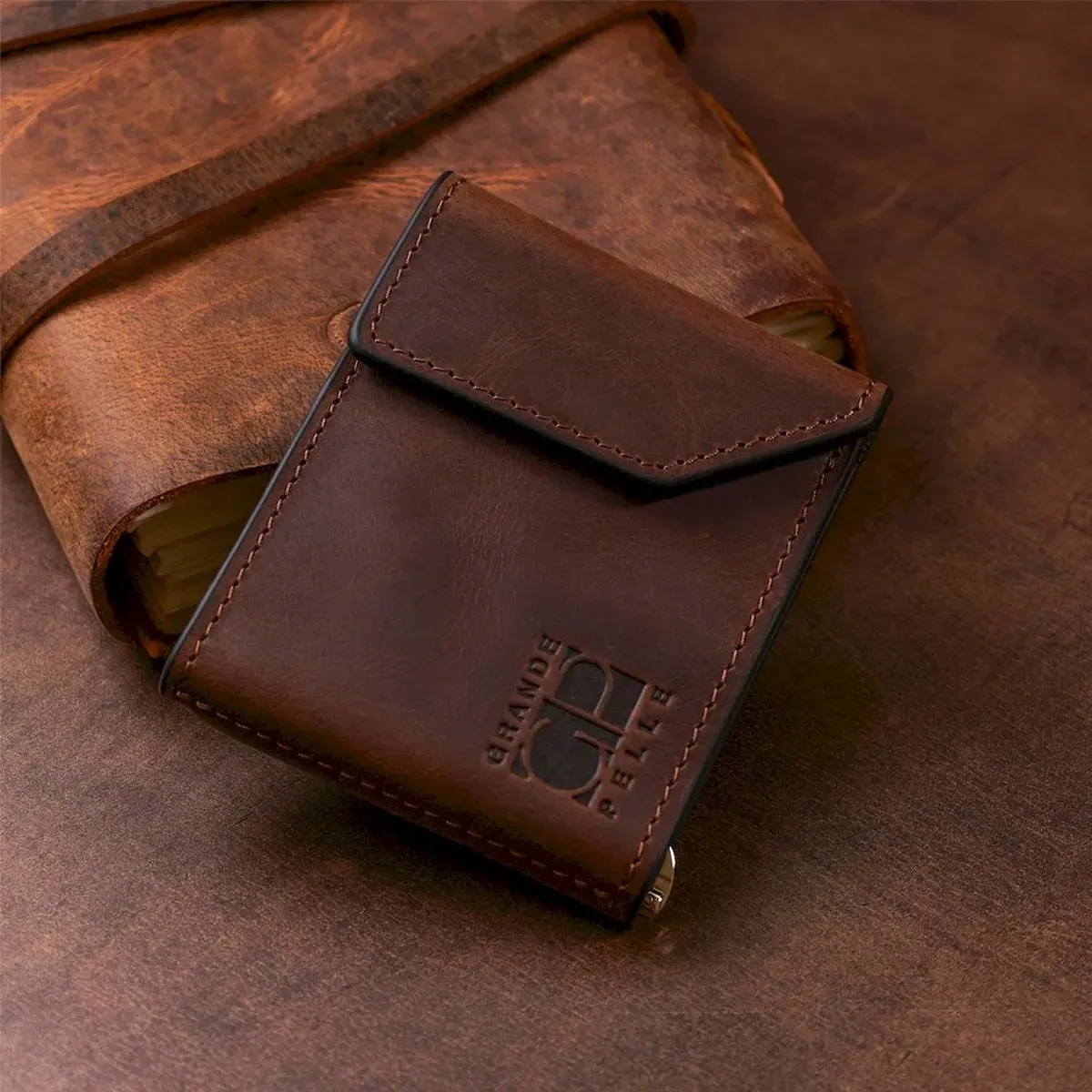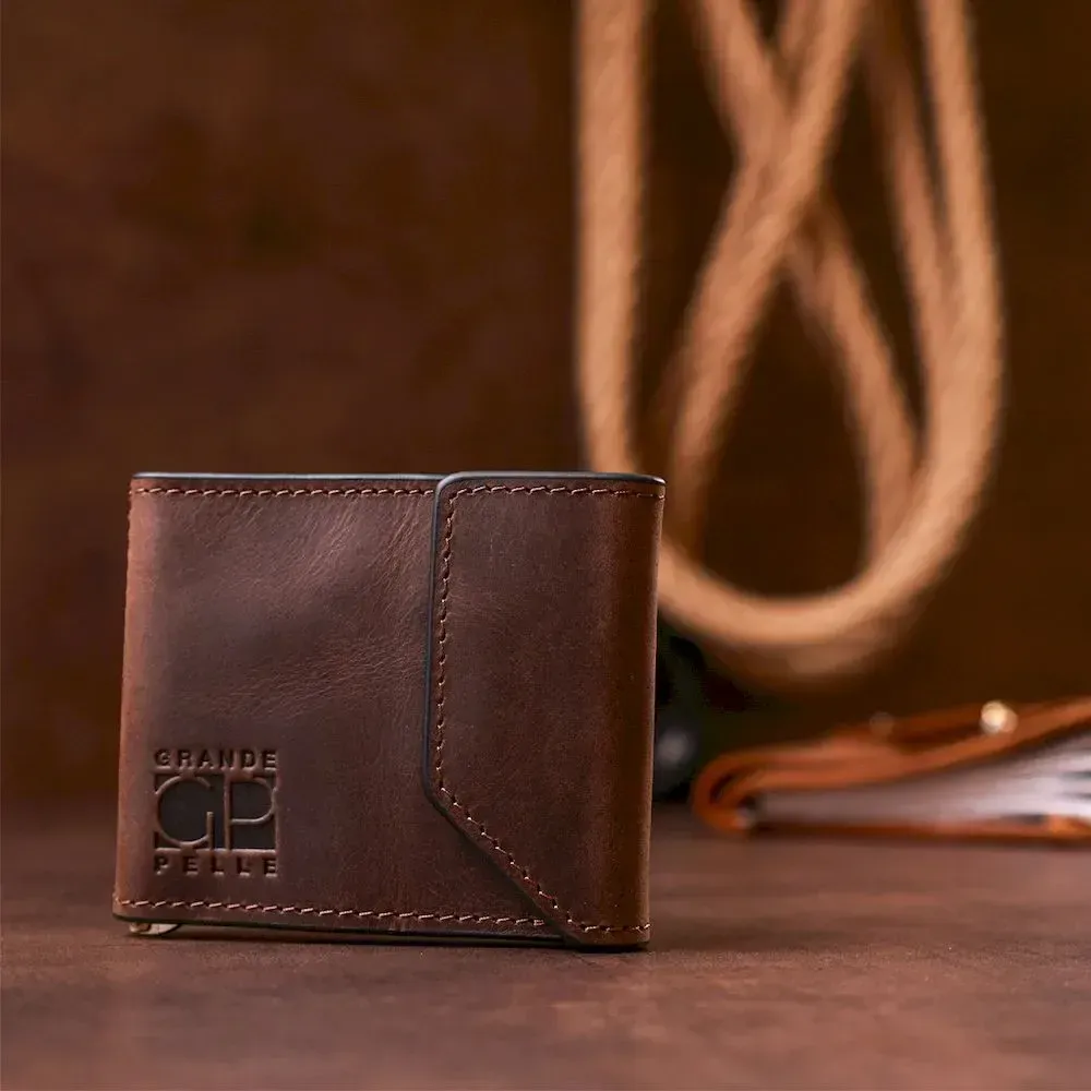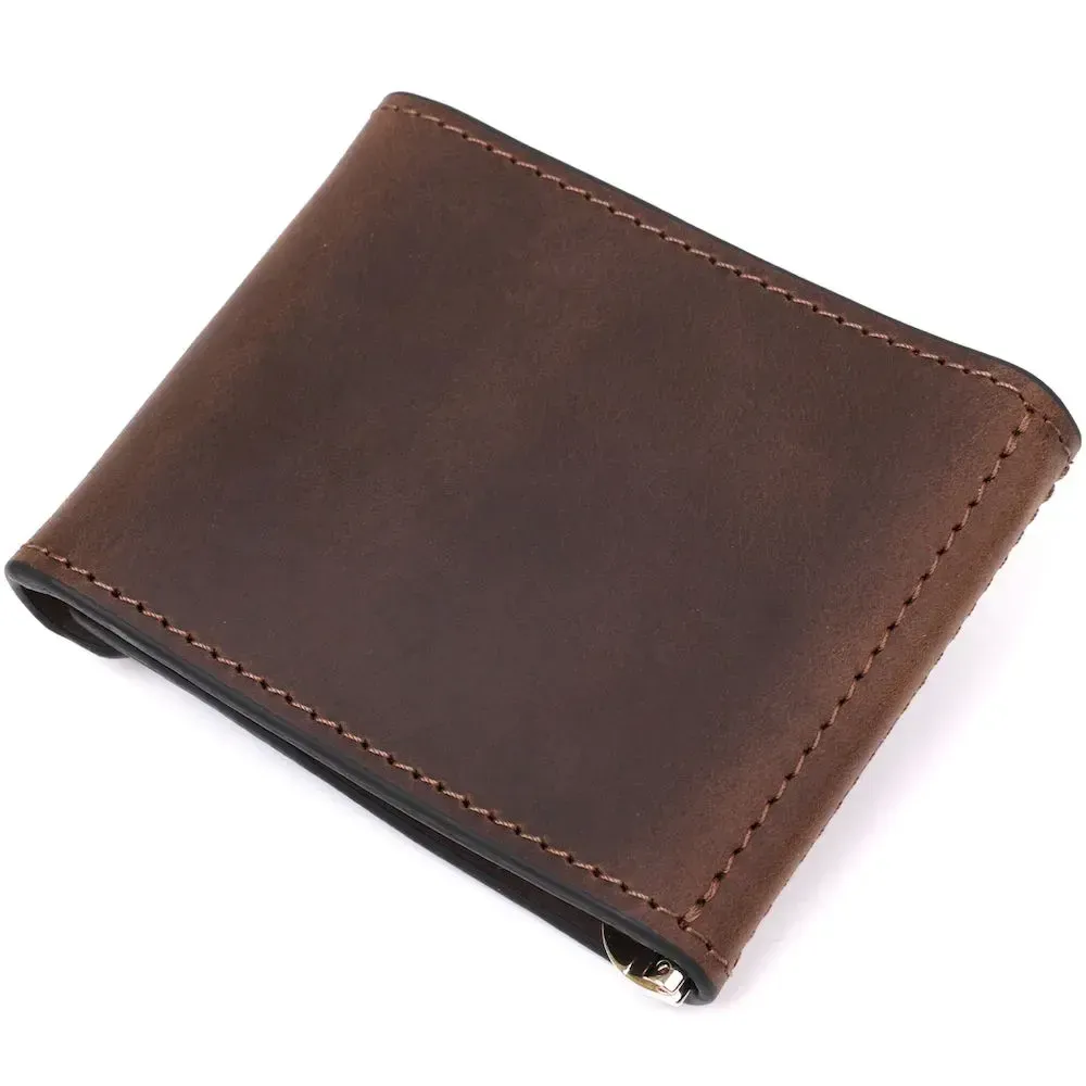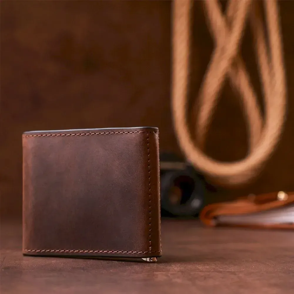 Затискач для грошей вінтажний GRANDE PELLE 11148 Коричневий