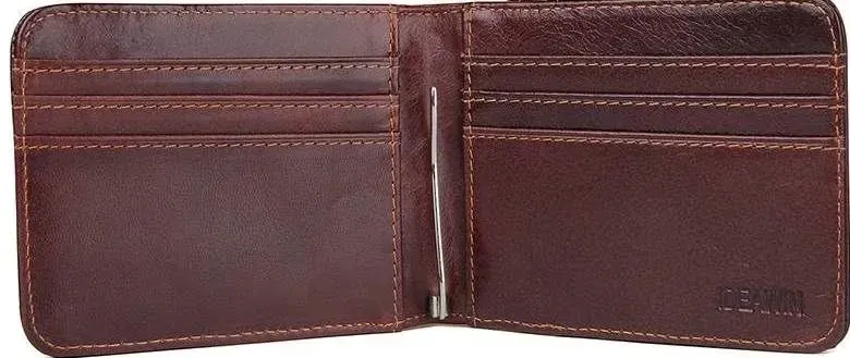 Дуже зручний затиск для банкнот коричневого кольору. Аксесуар виконаний з високоякісної гладкої шкіри. Колір фурнітури: срібло. Виріб акуратно прошито надміцною ниткою і упаковано в білий чохол.