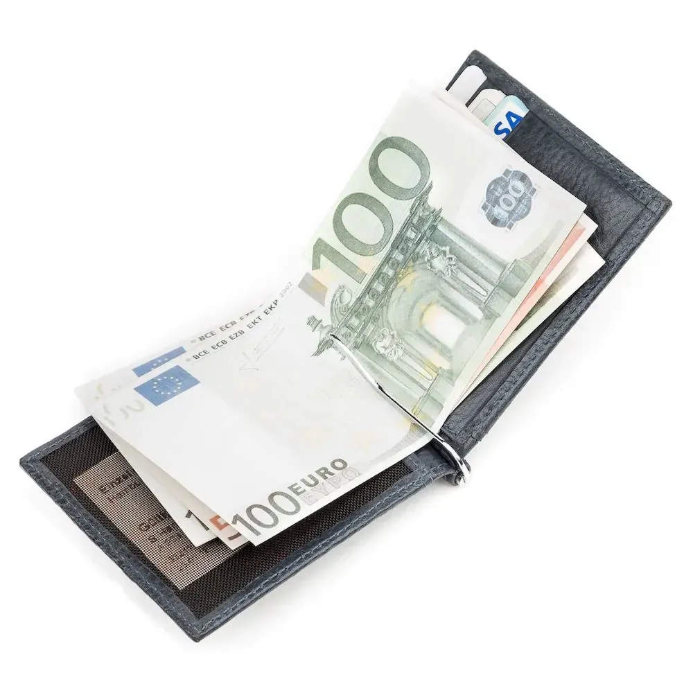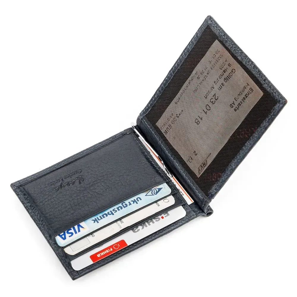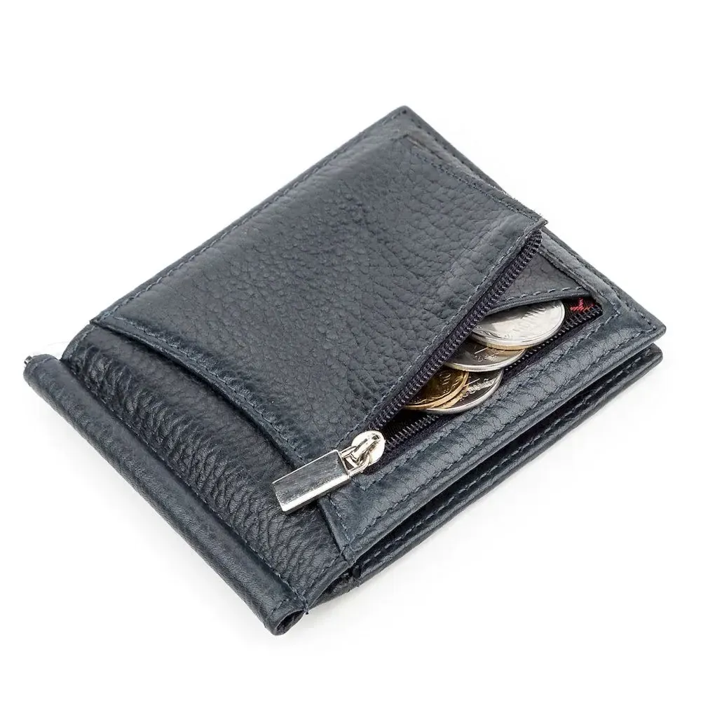 Компактний чоловічий затискач, з натуральної фактурної шкіри.